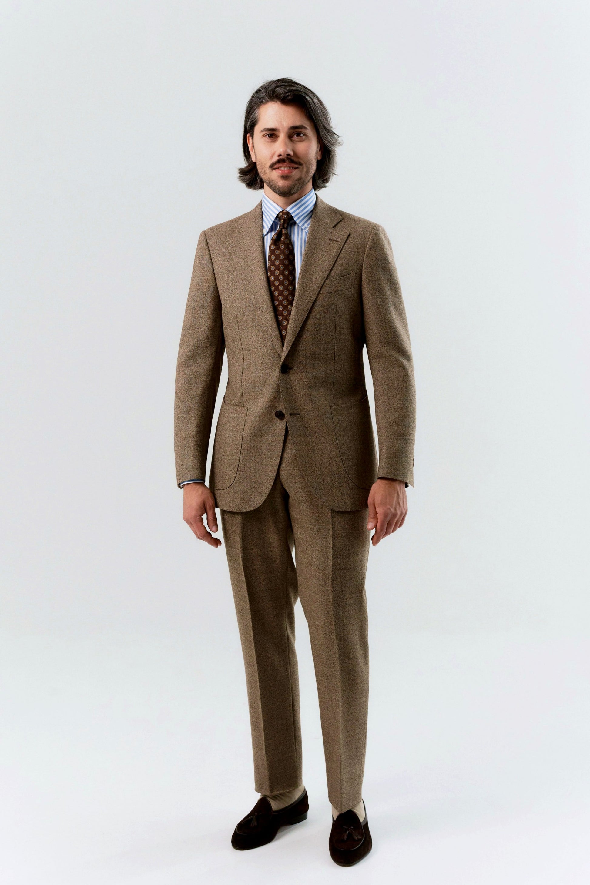 Homepage Man Men's suits Men's suits from the Evergreen line Beige-brown London Shrunk suit