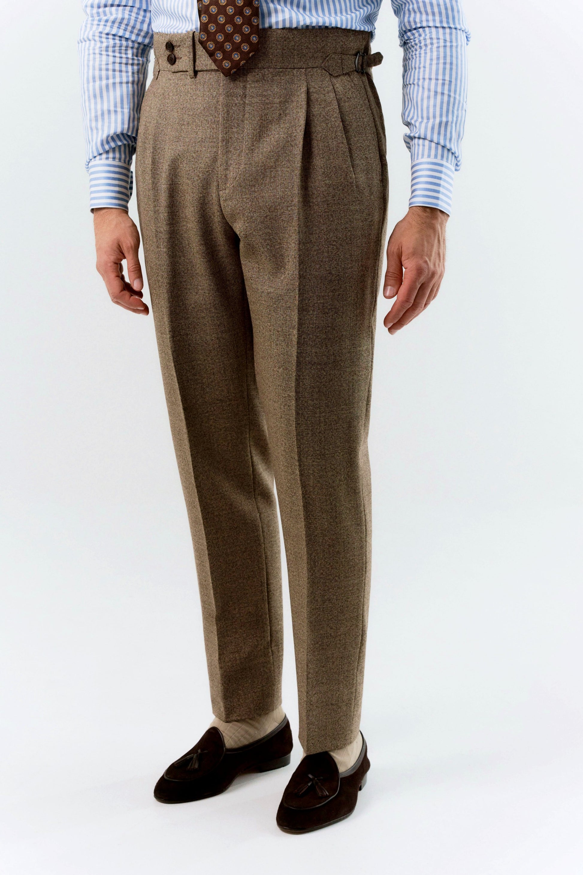 TROUSERS : side adjusters, cuffs, high waist, double pleats