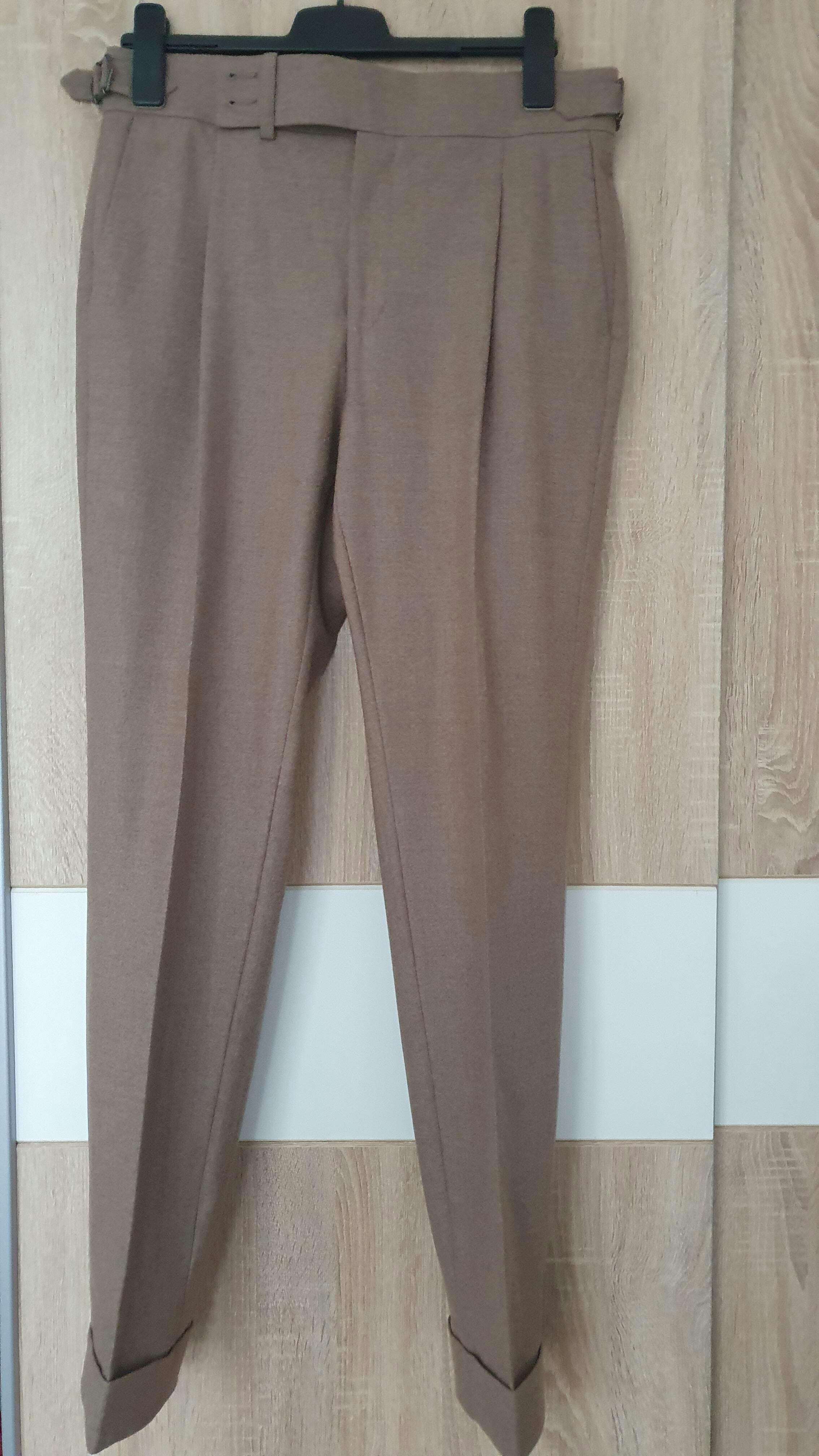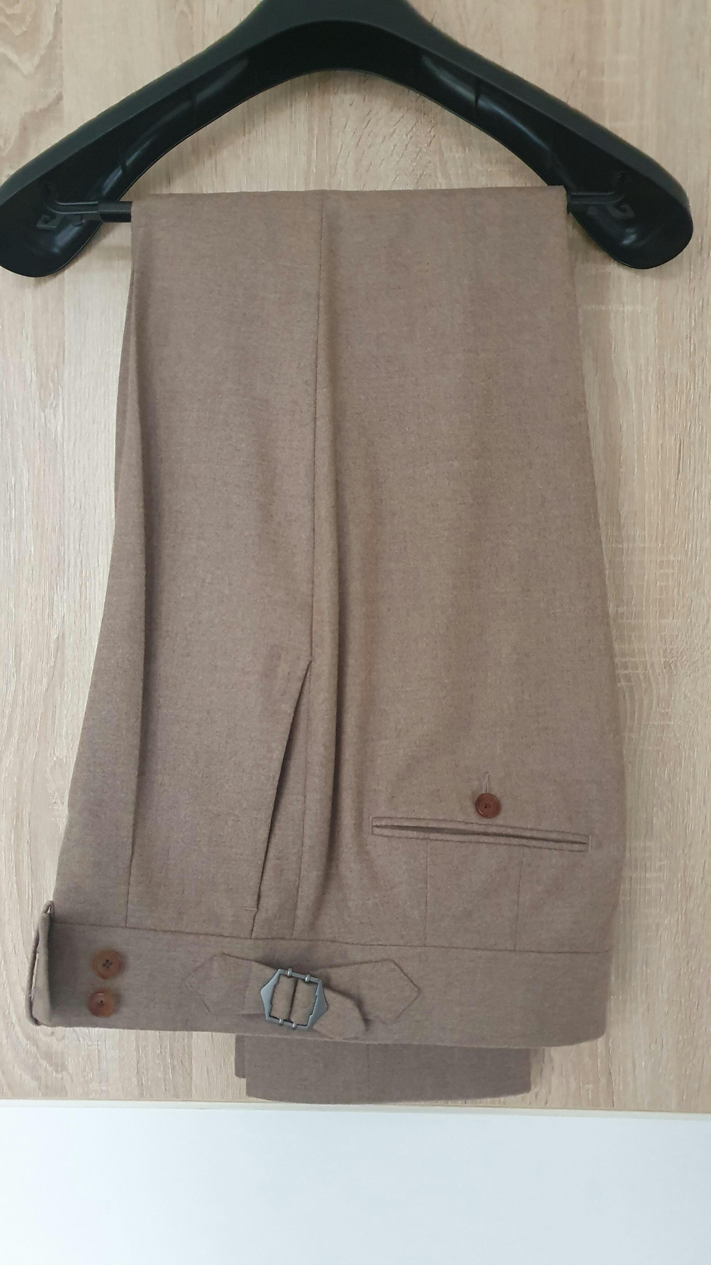 DETAILS: side adjusters, suspenders buttons, cuffs, single pleat