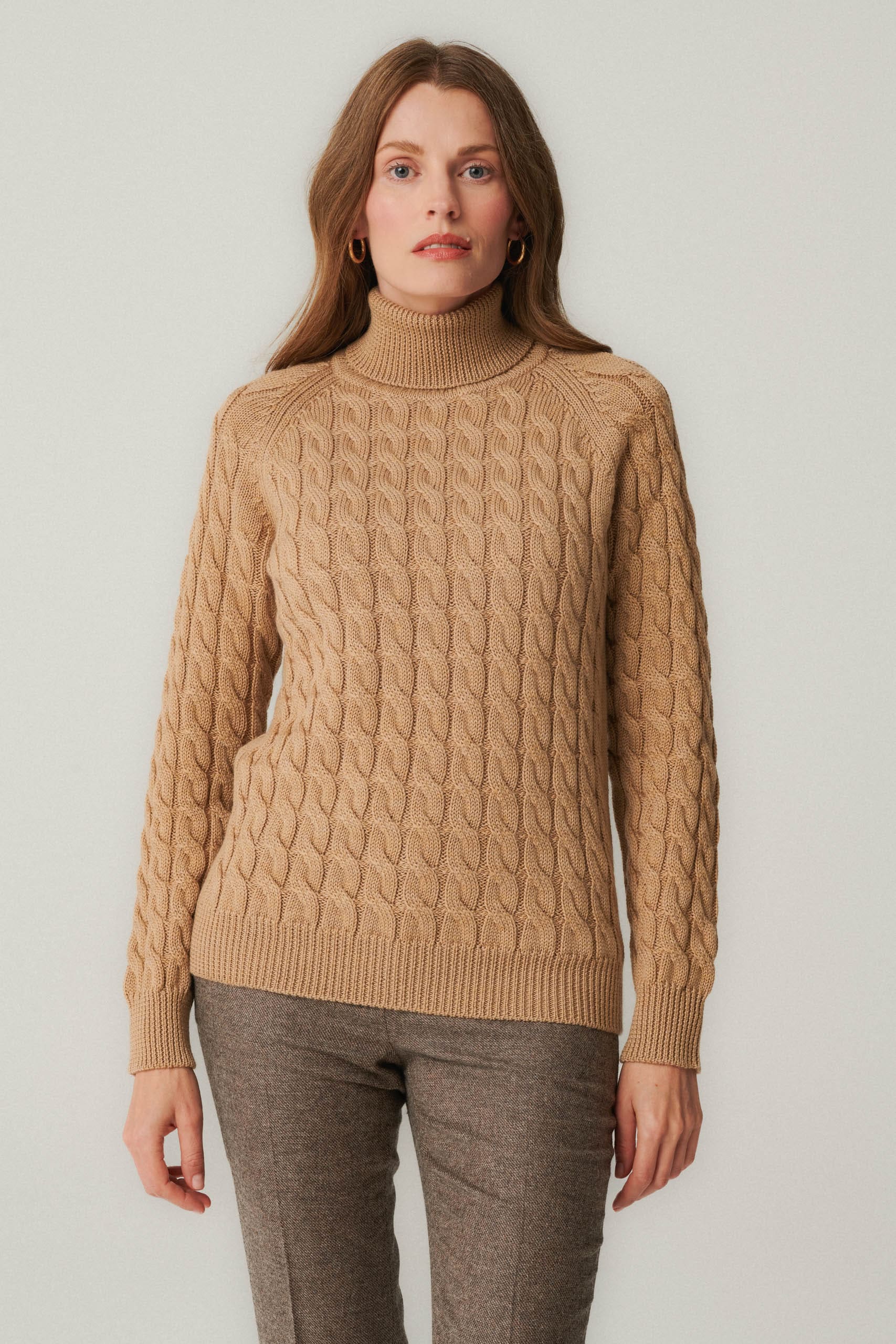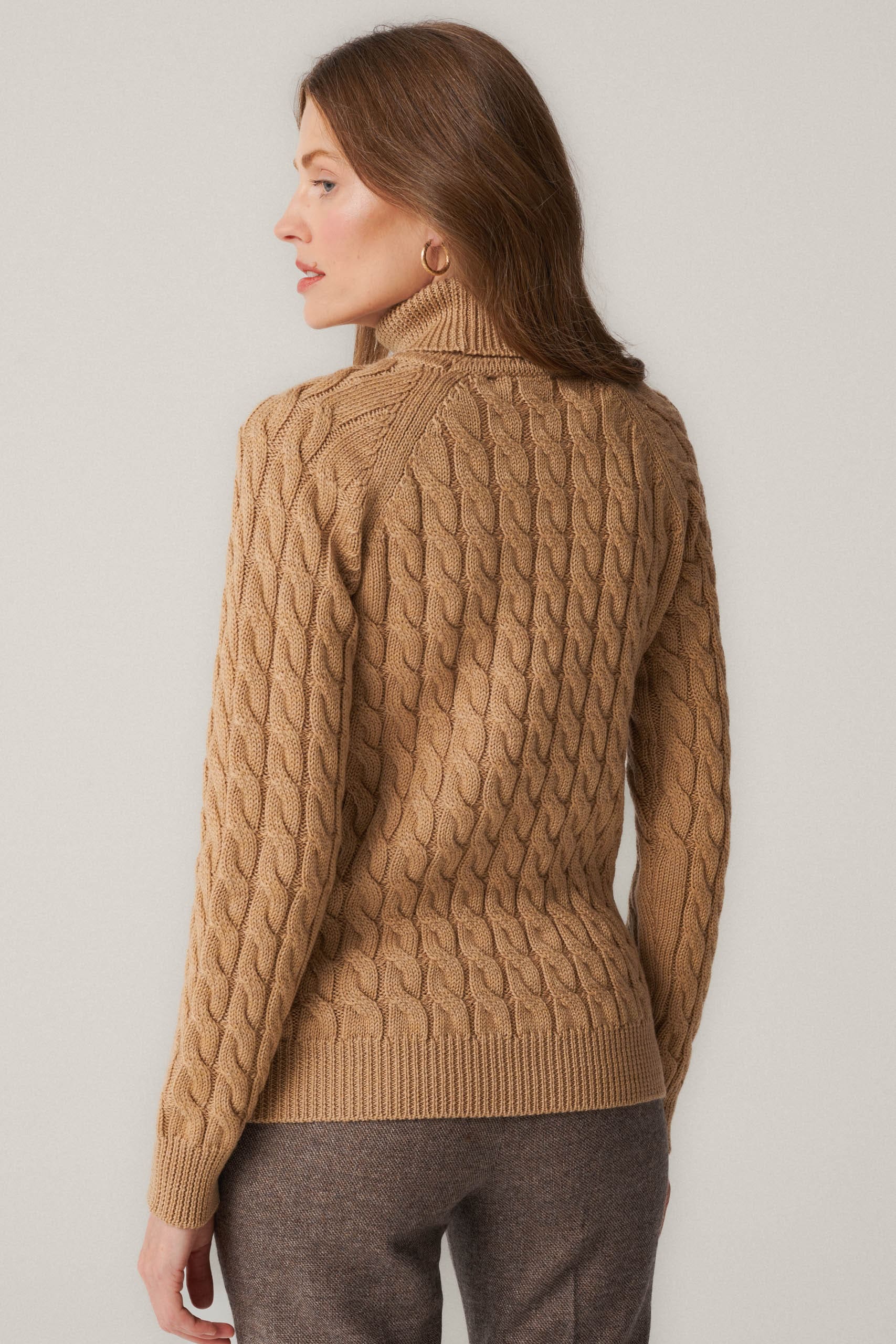 Beige wool cable knit turtleneck