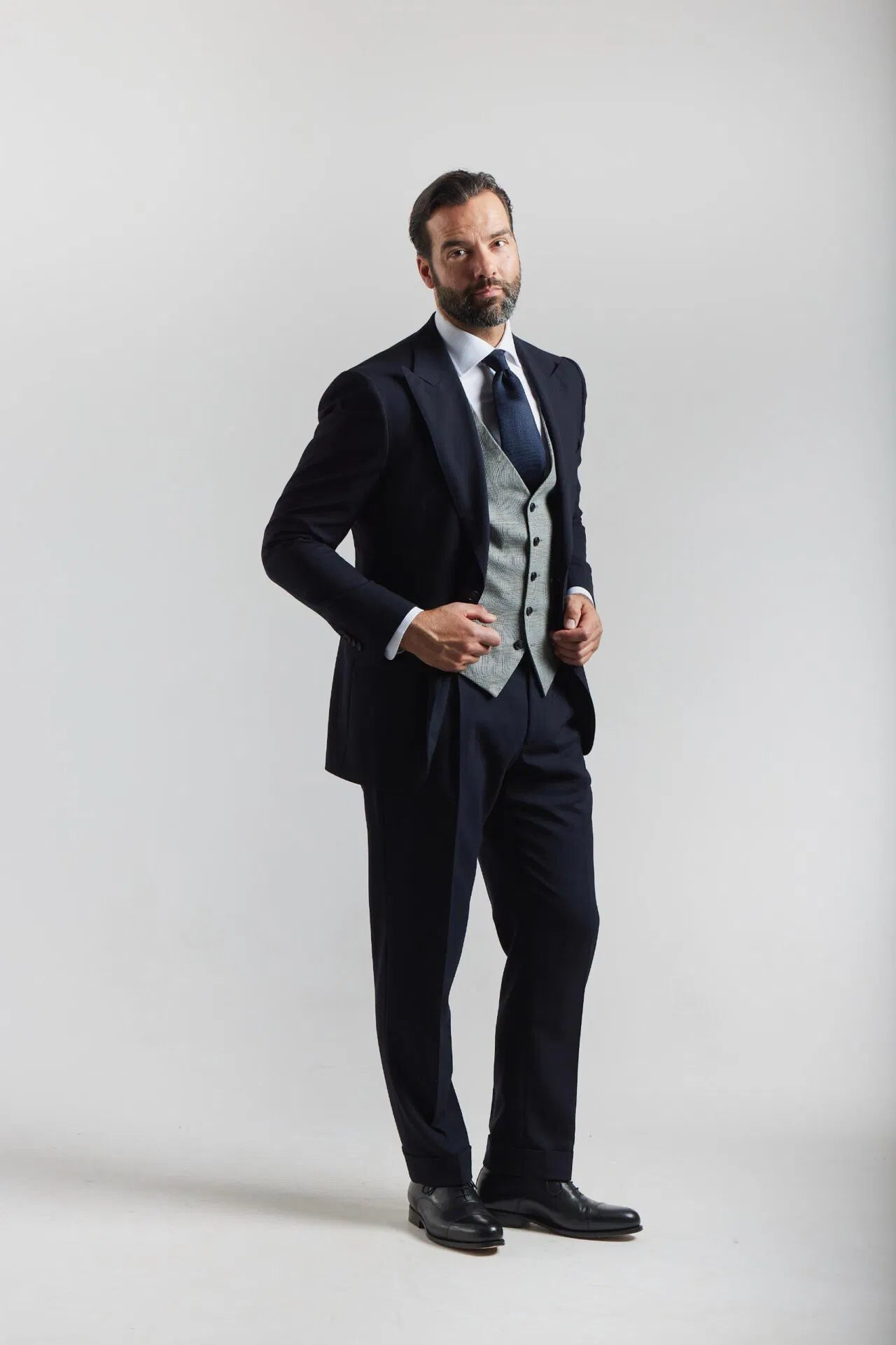 A dark navy suit is undoubtedly a classic worthy of attention. It has maintained its high ranking for years. This one is unique, though not at first glance. This becomes evident in the details and the 4-ply fabric, which makes it probably the best dark navy suit on the Polish (and not only) market!