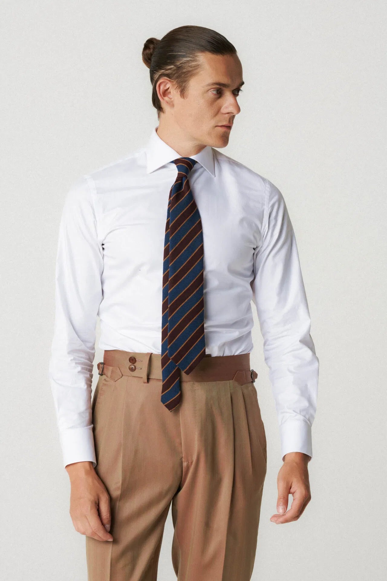 TROUSERS: side adjusters, cuffs, double pleats