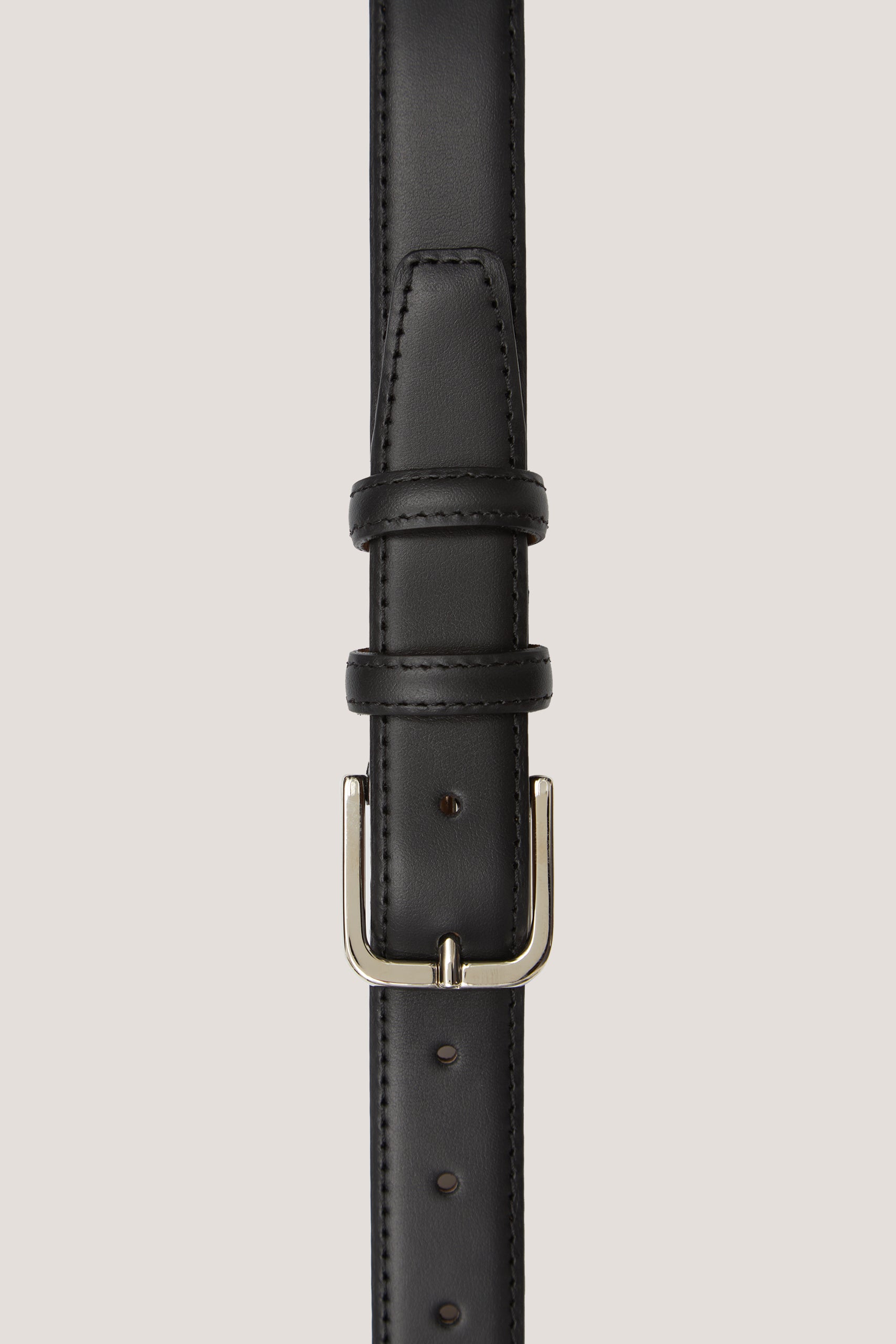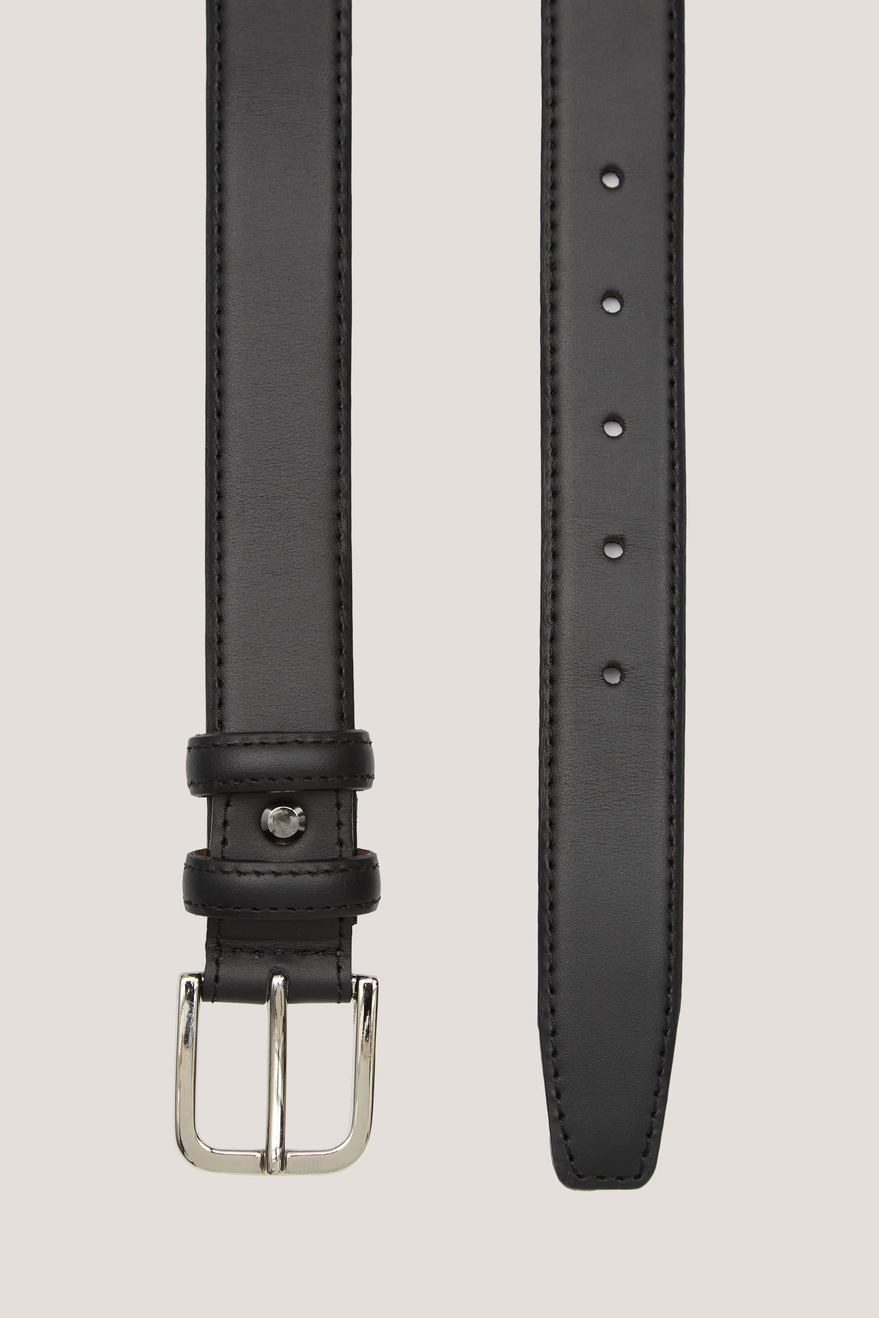 A classic black suit belt, 3cm wide, crafted of leather. Its classic structure gives the belt a versatile character. It's perfect for formal outfits.