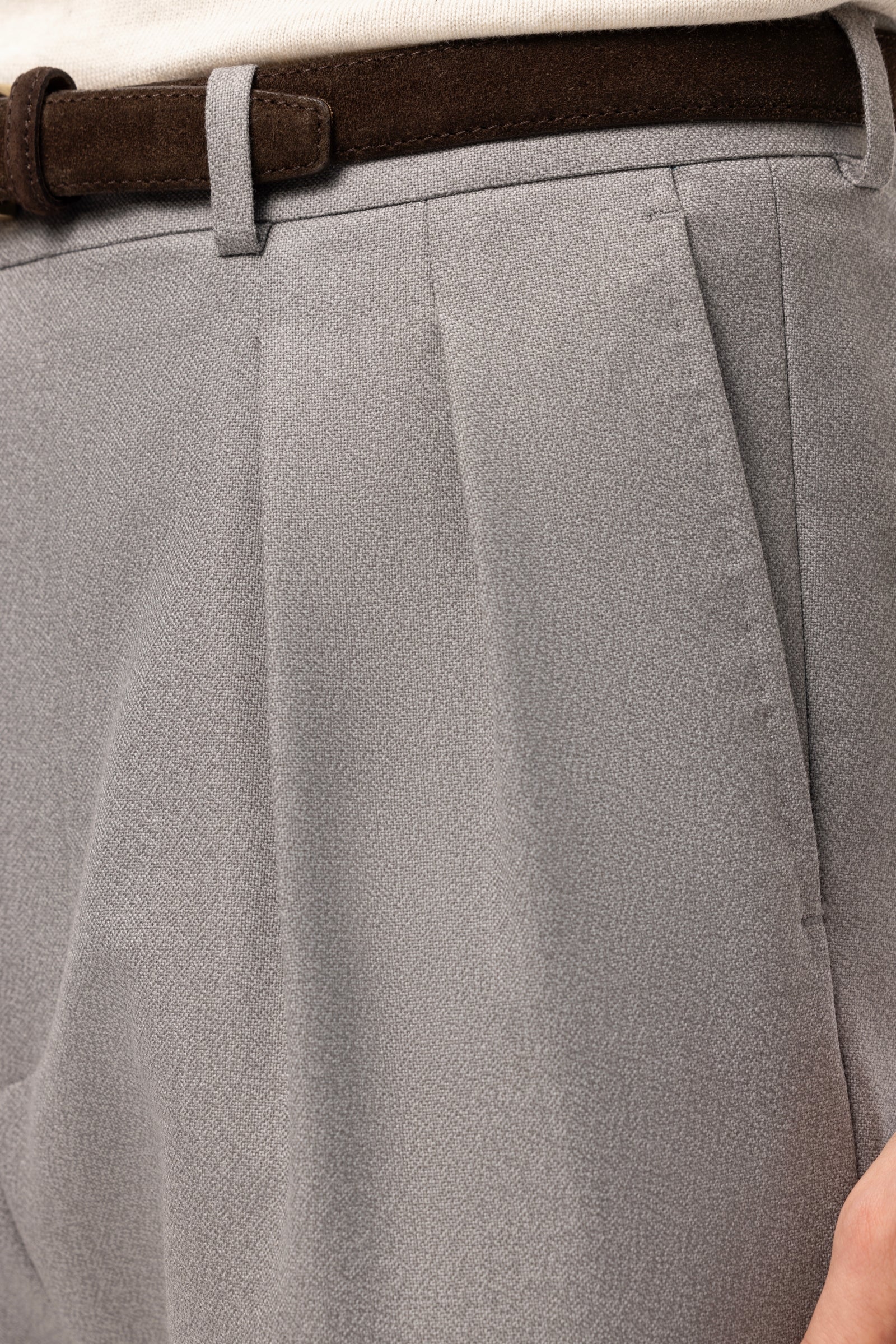 DETAILS: double pleats, side adjusters, cuffs