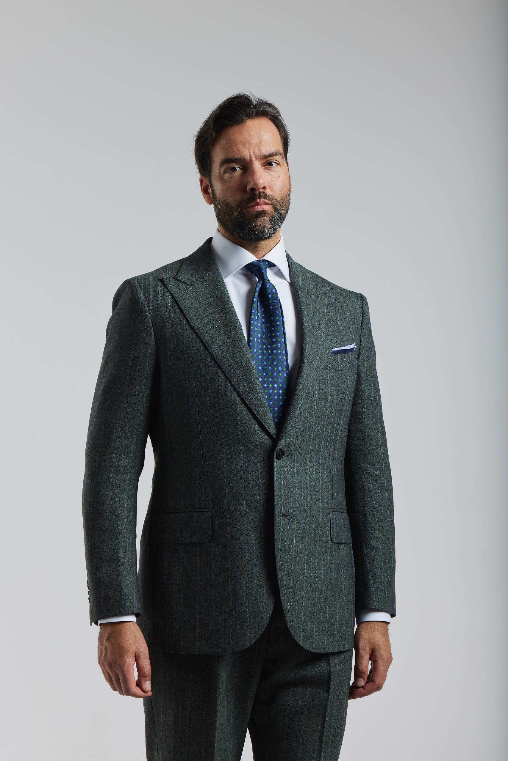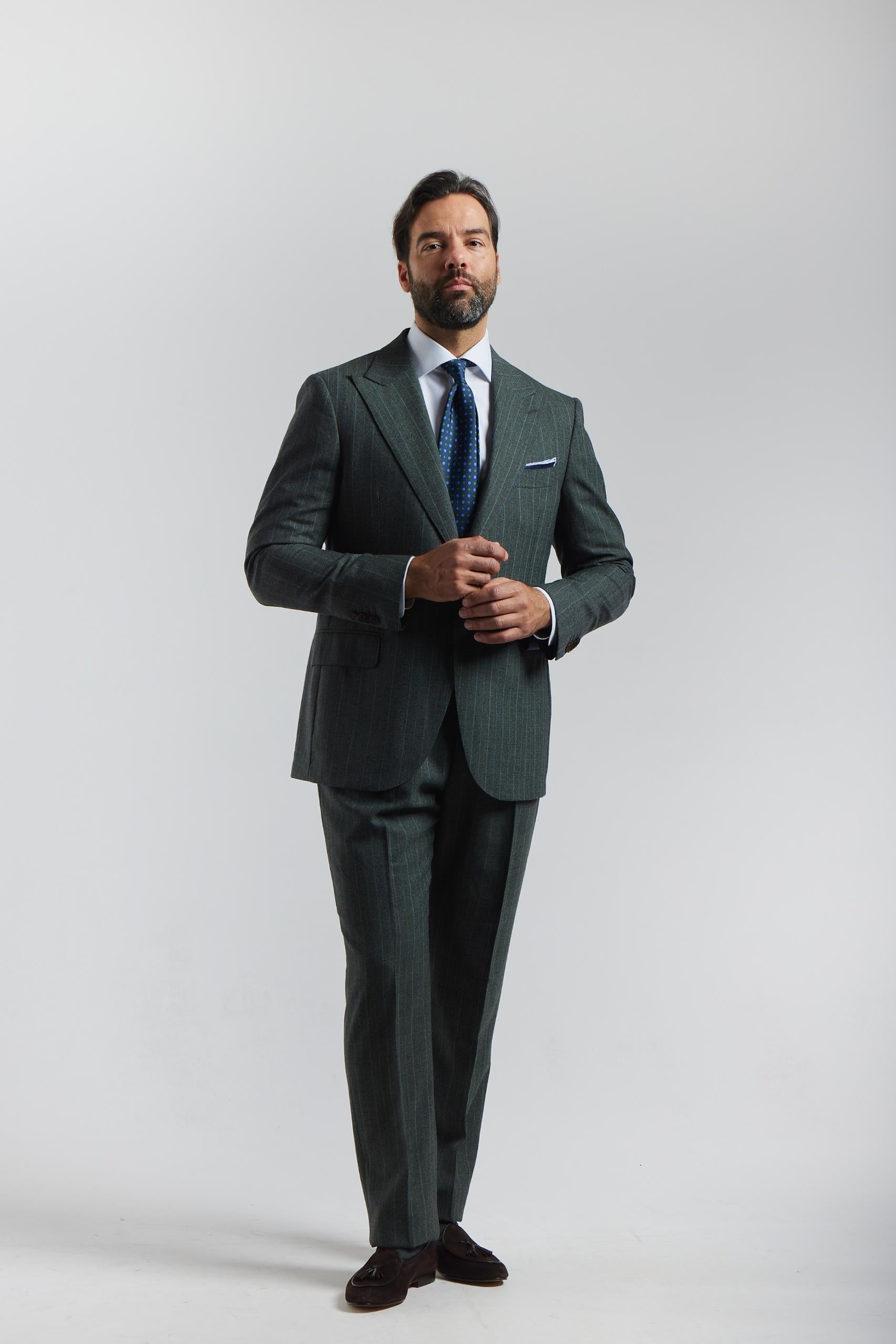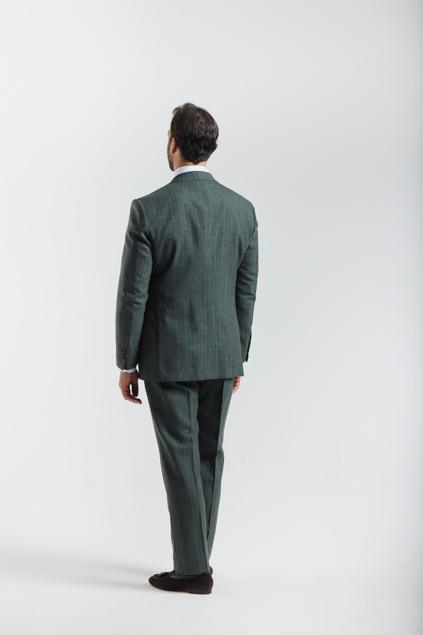 Homepage Man Men's suits Men's suits from the Evergreen line Gray and green London Shrunk wool striped suit