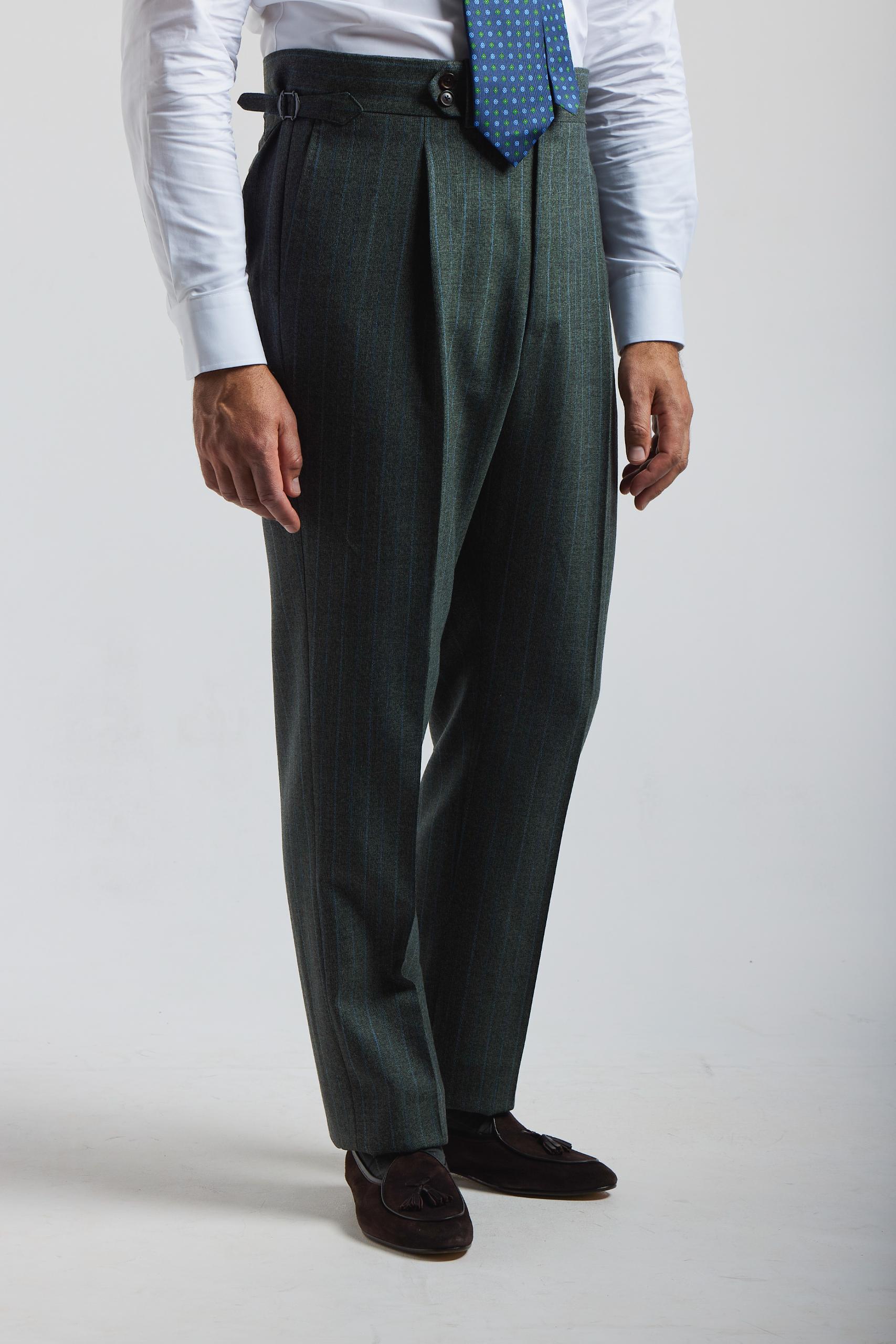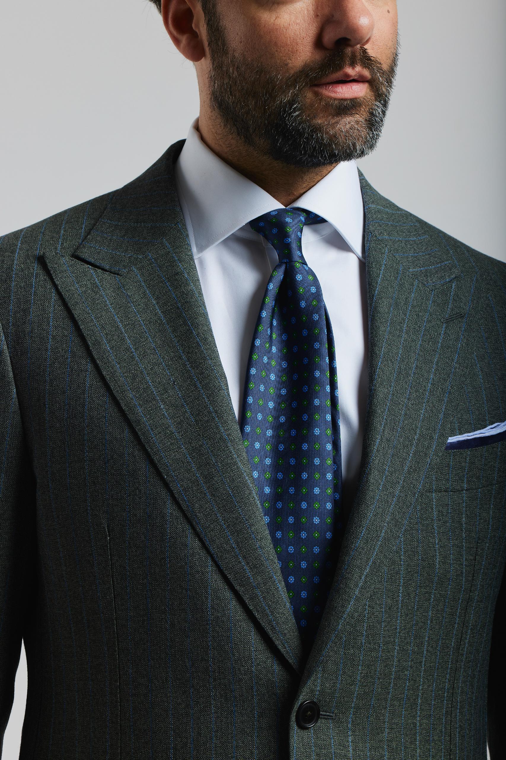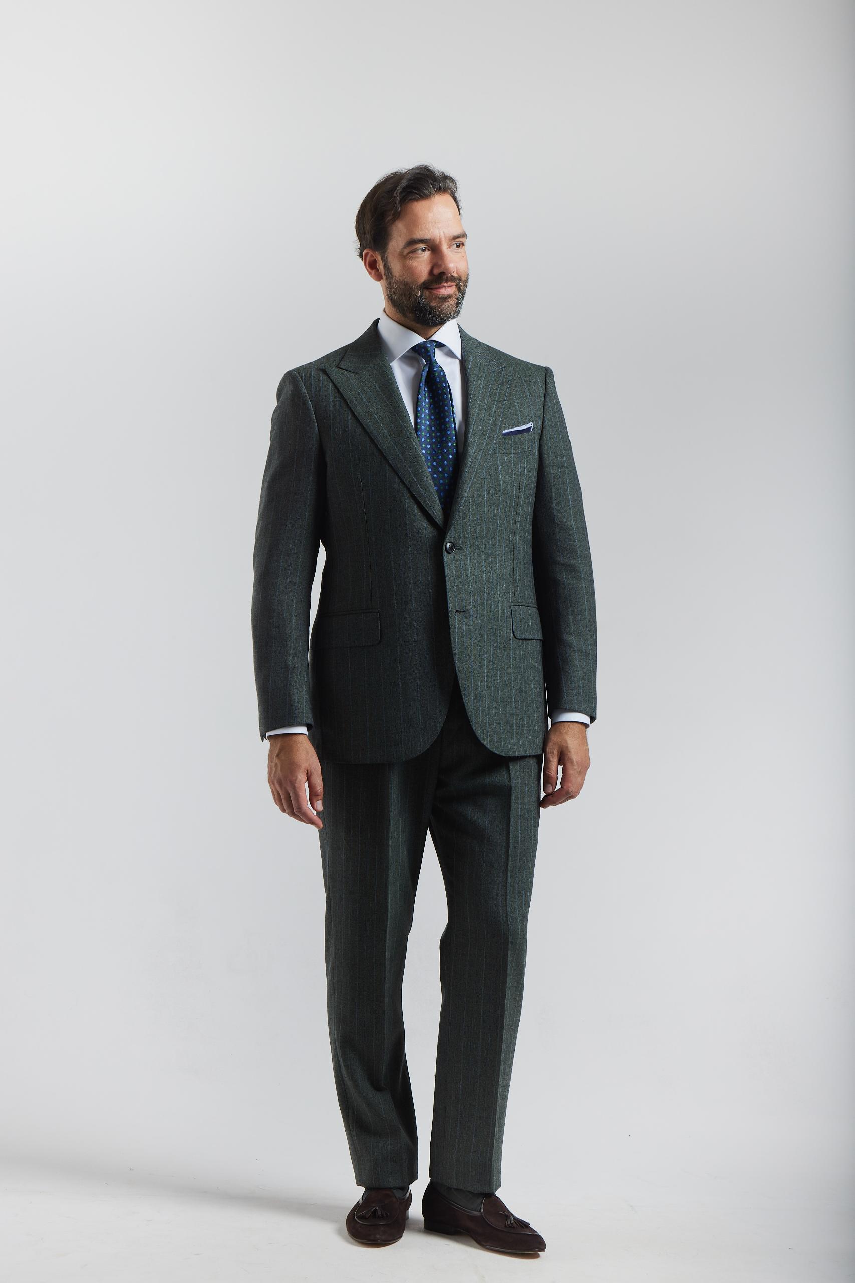 Homepage Man Men's suits Men's suits from the Evergreen line Gray and green London Shrunk wool striped suit