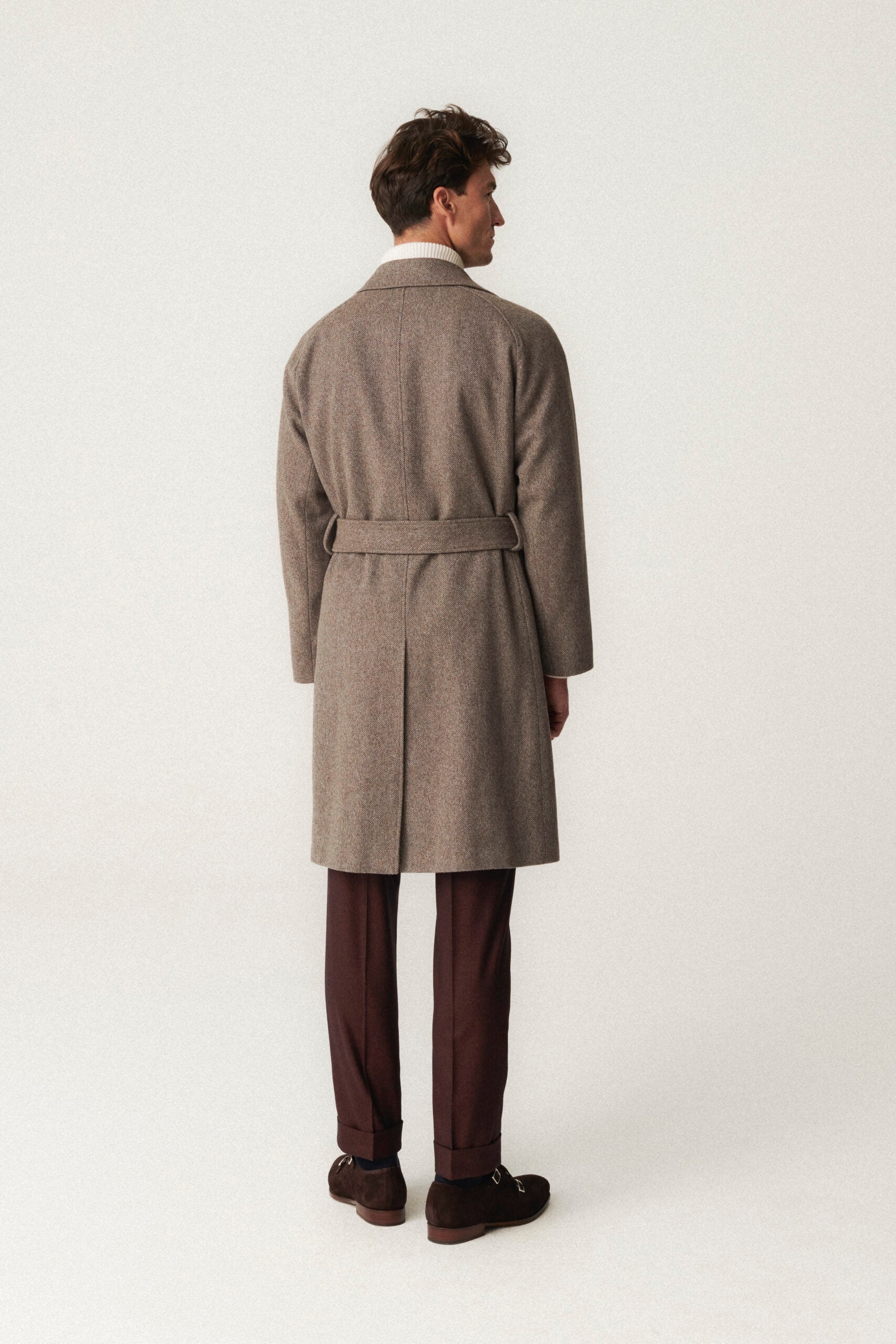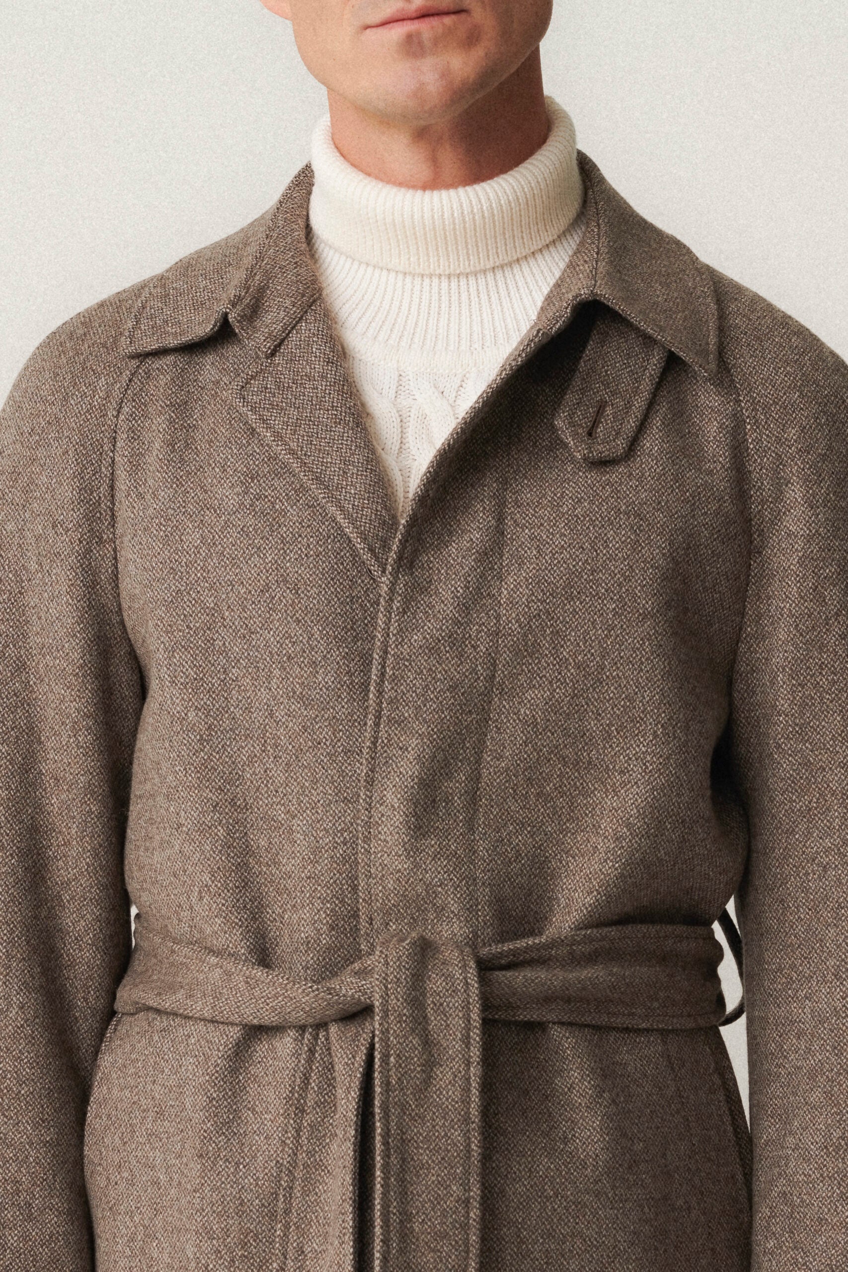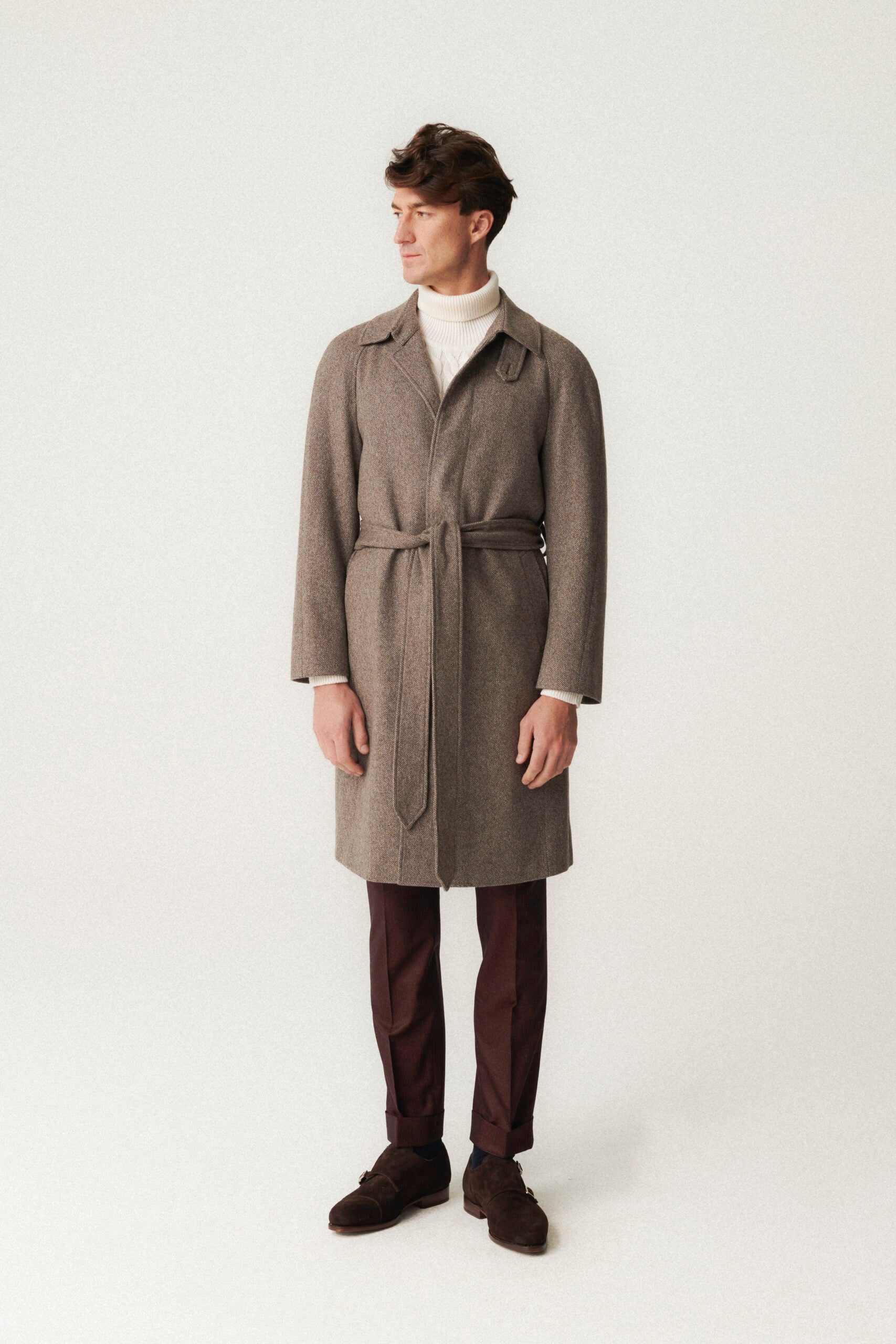 Szaro-brązowy wełniany płaszcz raglanowy to elegancki i klasyczny element garderoby, idealny na chłodniejsze dni. Zapewni Ci nie tylko ciepło i wygodę, ale i również niepowtarzalny styl! Zapięcie pod samą szyję i pas w talii sprawią, że odizolujesz się od zimna, nie tracąc przy tym na elegancji.