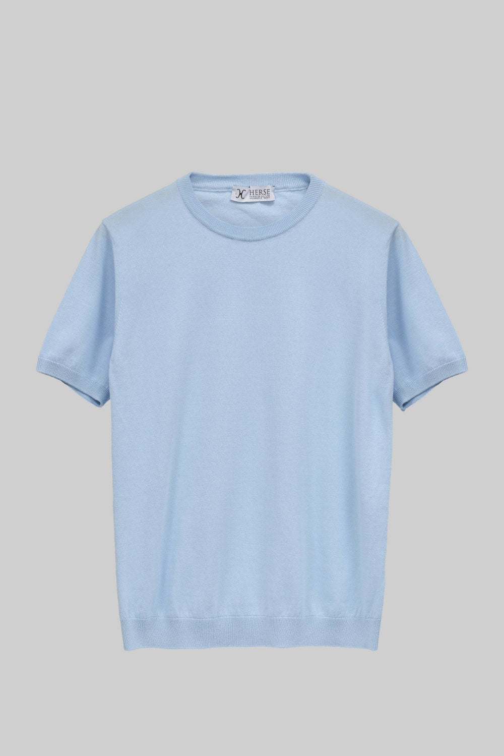 T-shirt en tricot bleu clair à col rond