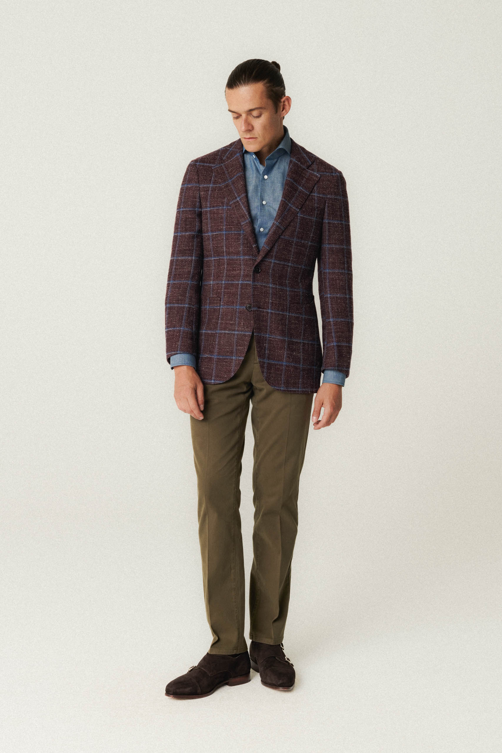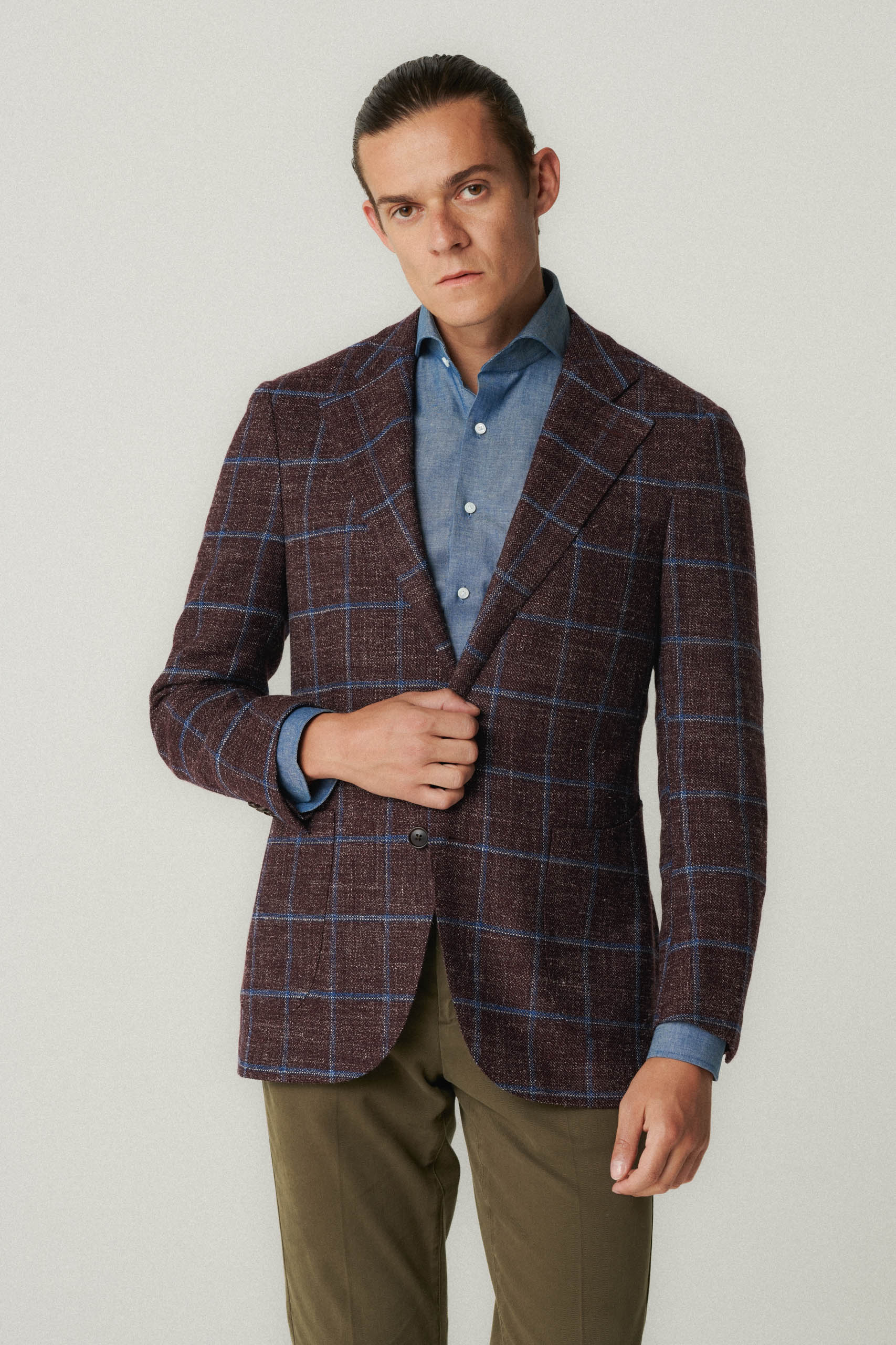 DÉTAILS : poches plaquées en forme de gobelet, rembourrage minimal aux épaules, revers crantés de 10 cm, entièrement doublé