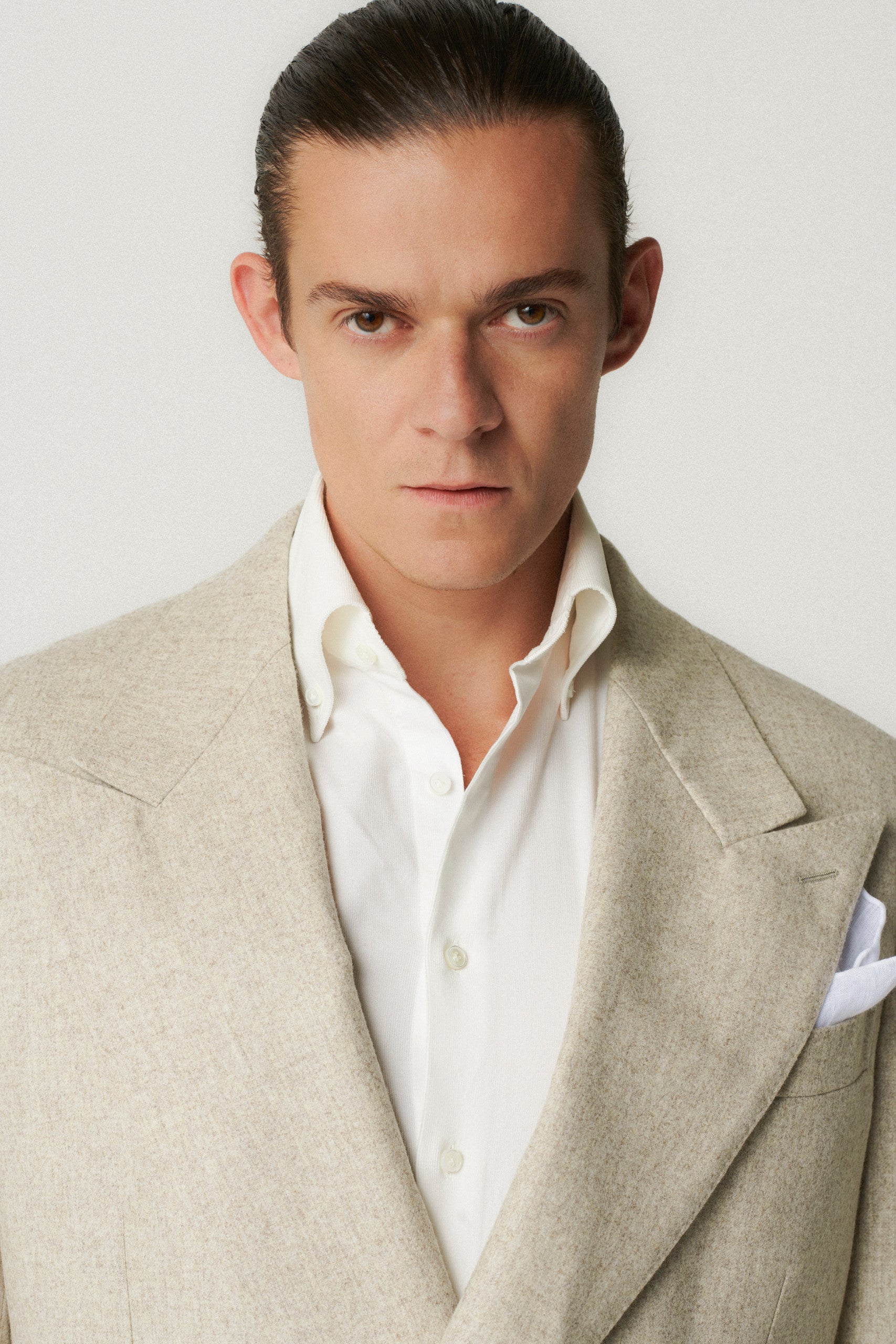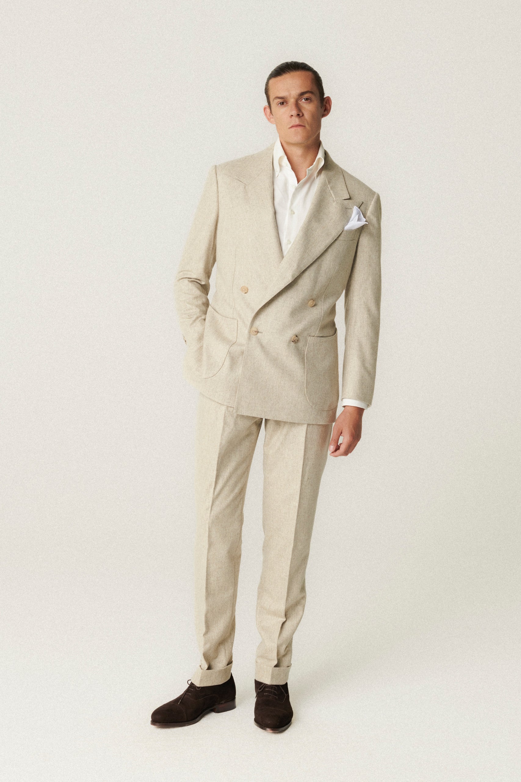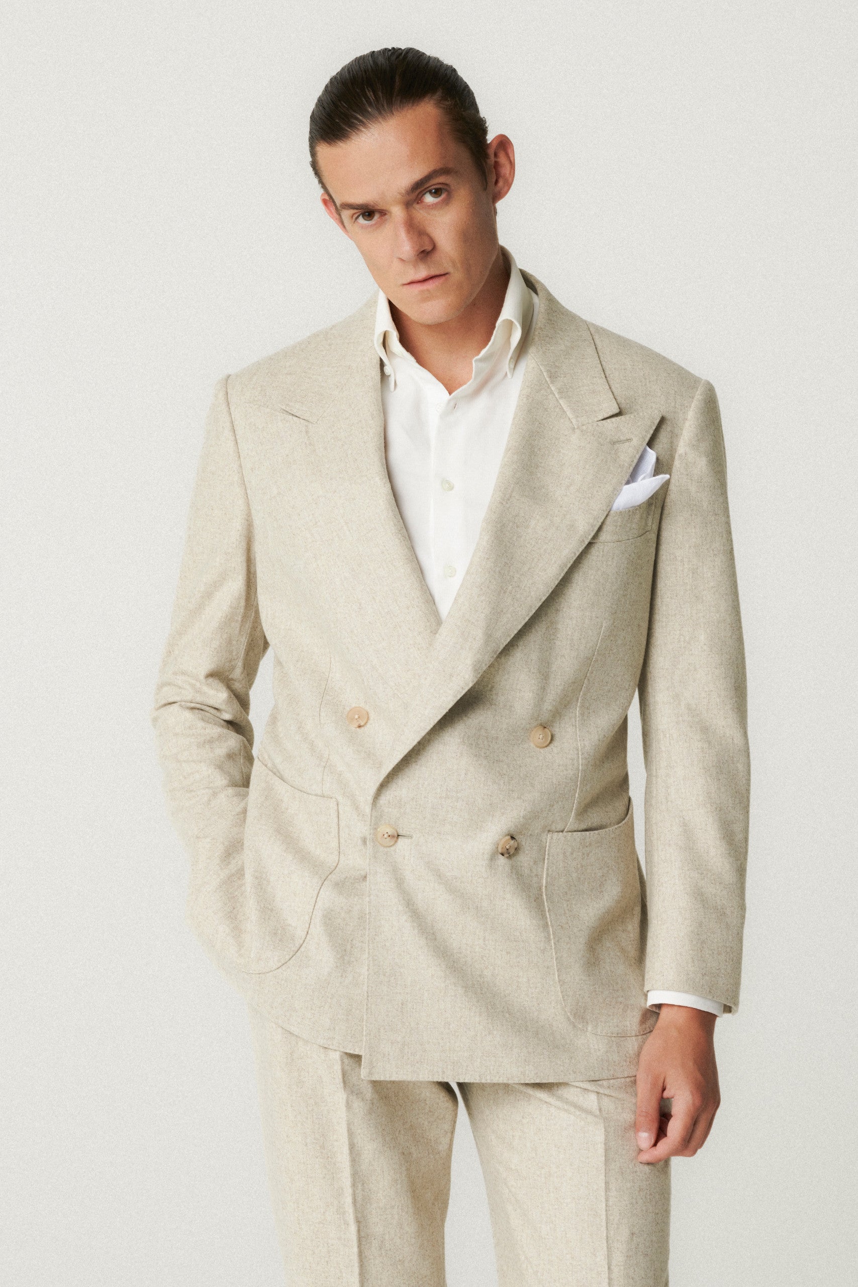 Costume croisé en flanelle beige clair