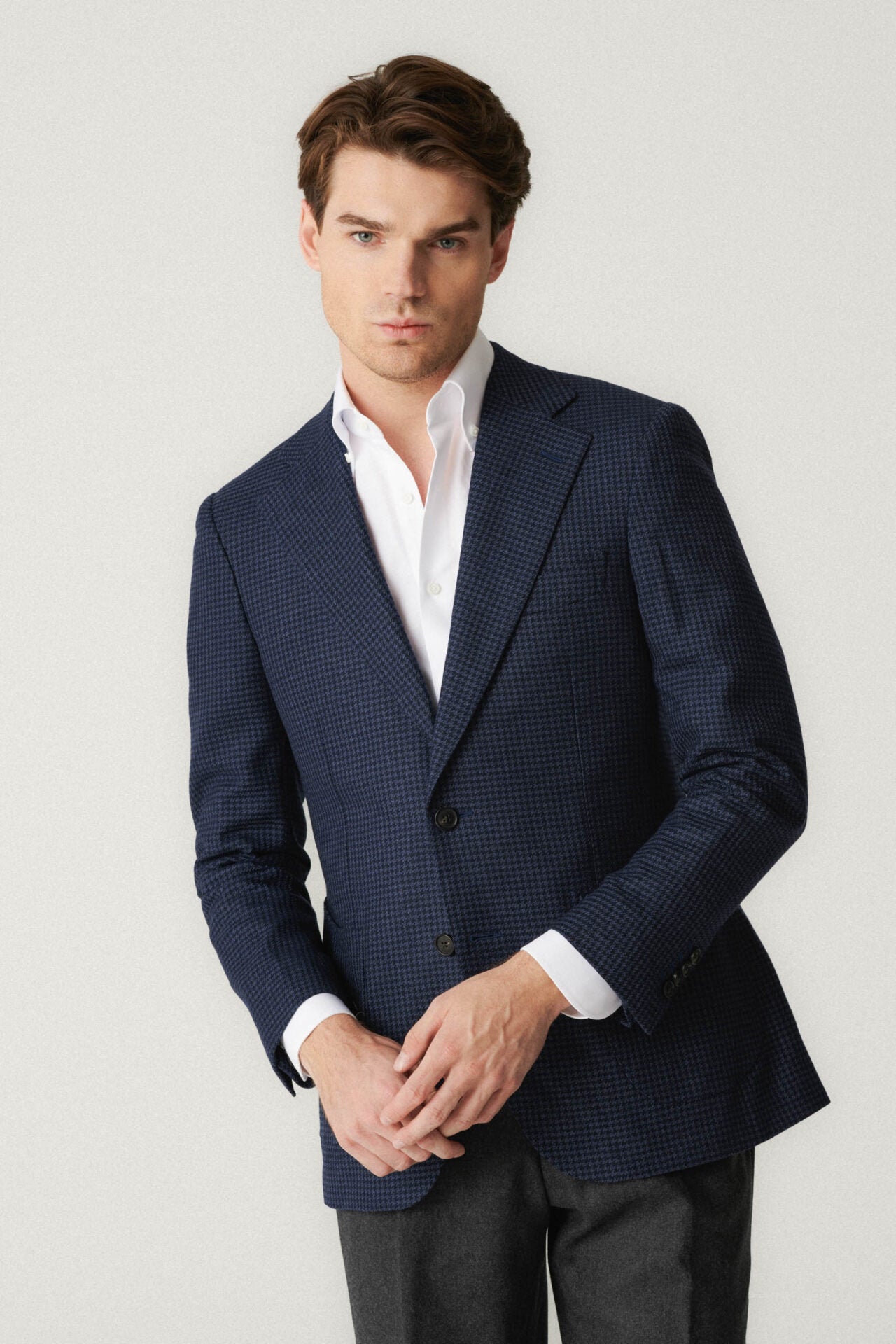 Ce blazer pied-de-poule, d'un bleu marine profond et audacieux, est parfait en toute occasion. Une réunion d'affaires ? Un dîner entre amis ? Quelle que soit l'occasion, vous pouvez le porter !