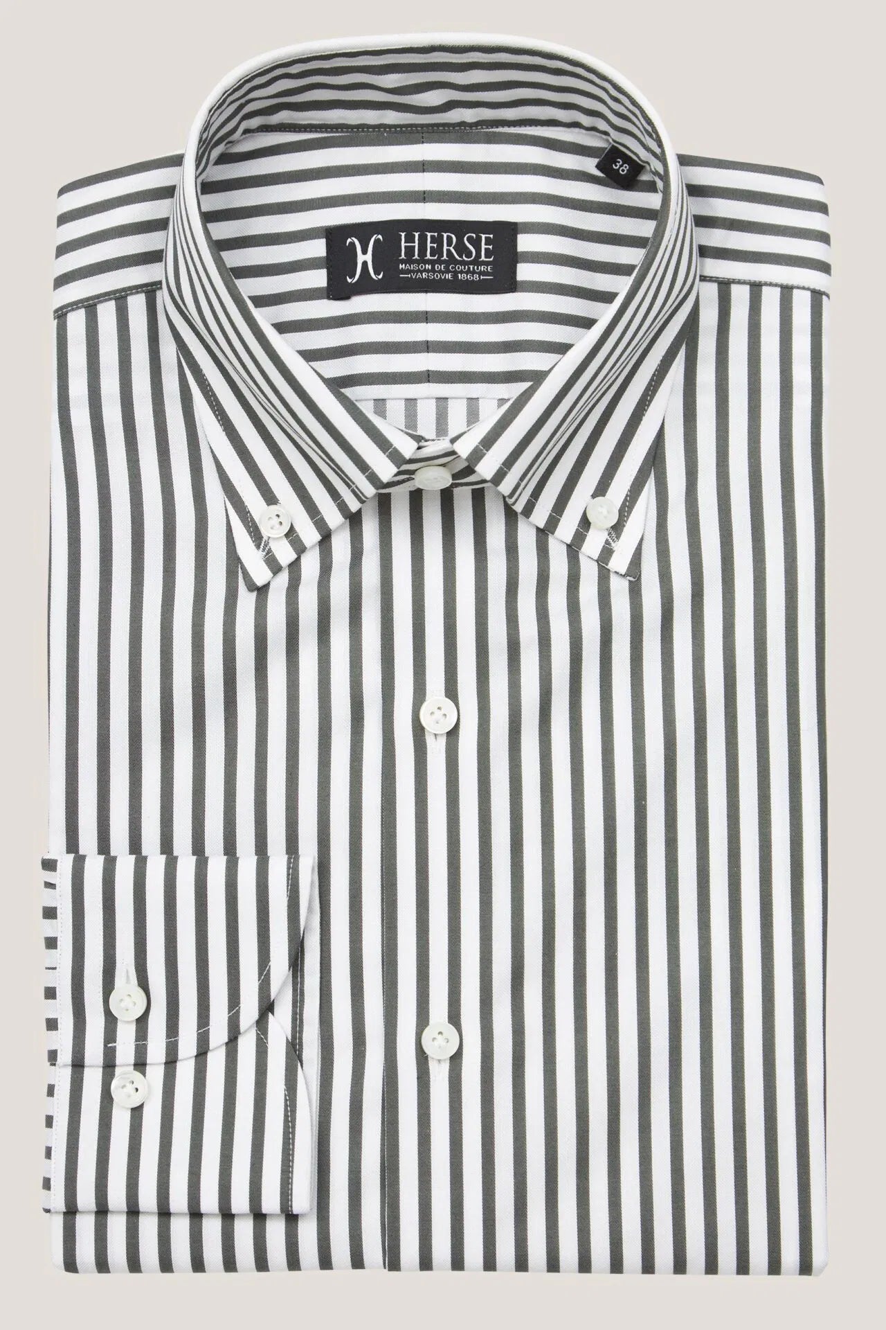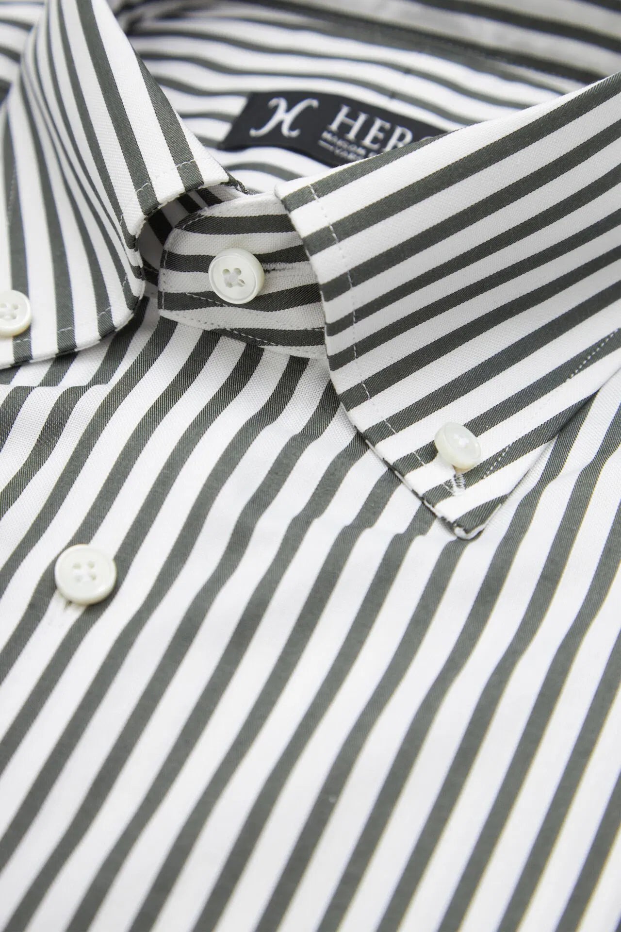 Cette chemise classique « OCBD » blanc et vert présente des poignets arrondis, une patte de boutonnage plate et un col boutonné. Confectionnée en 100 % coton Albini (120/135 g/m²) avec une construction en sergé Oxford, elle a été soigneusement confectionnée à la main en Pologne, gage d'un savoir-faire de haute qualité.