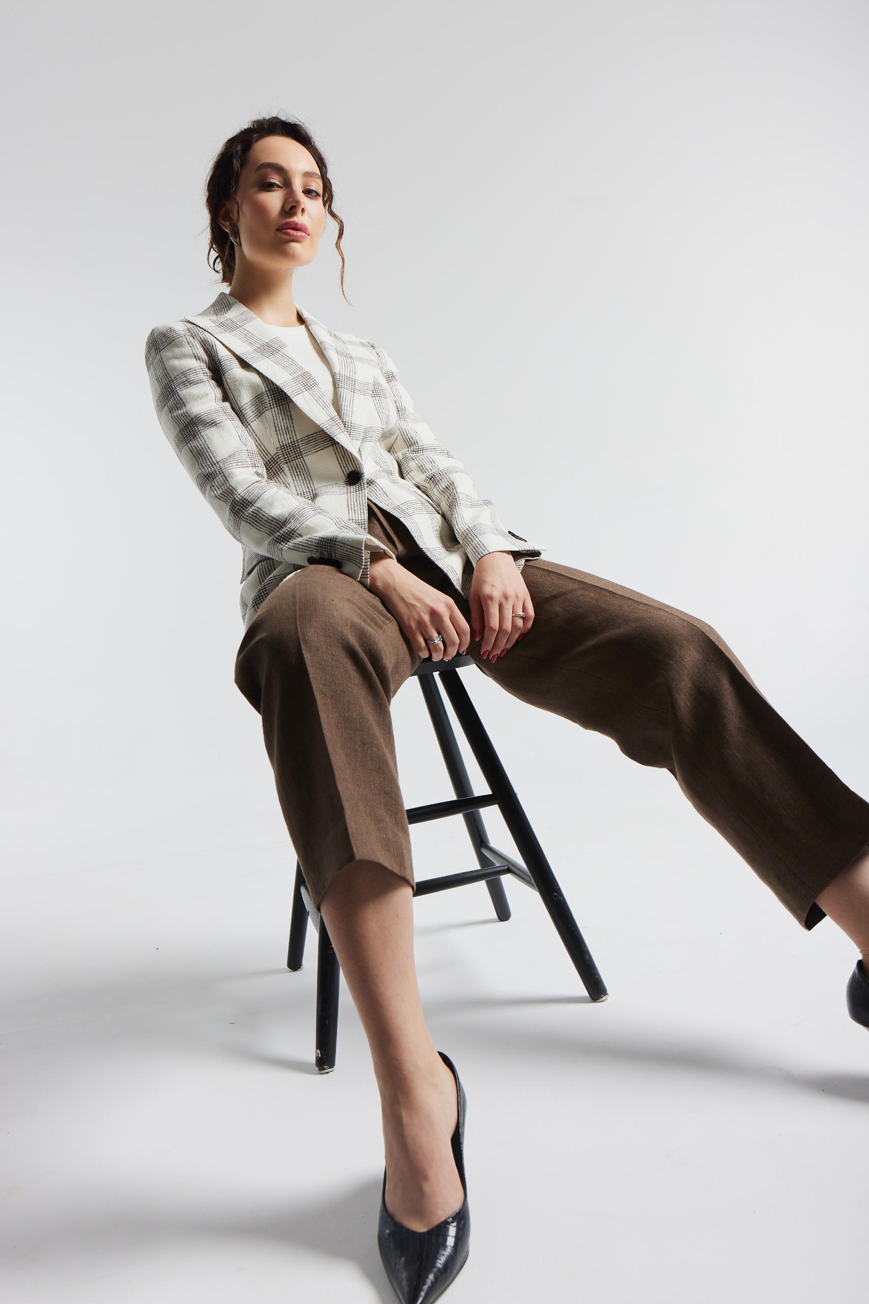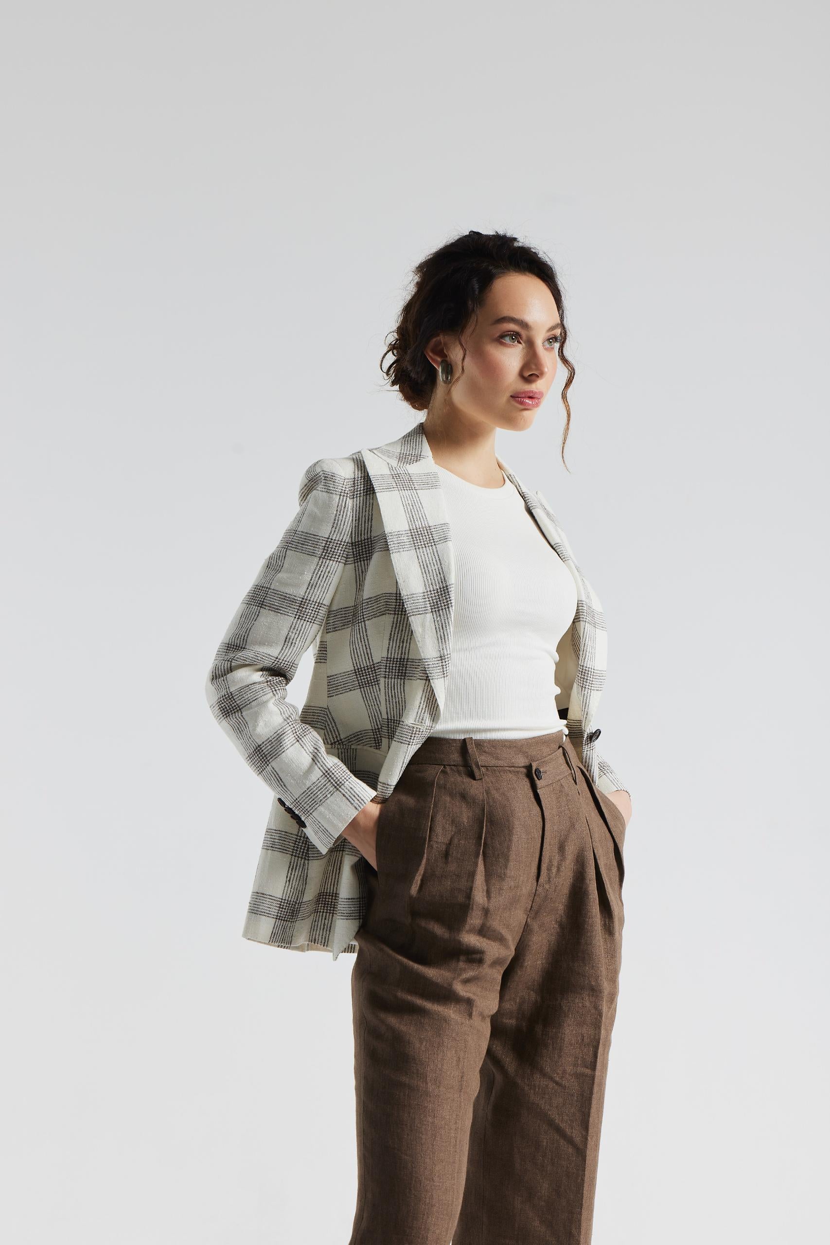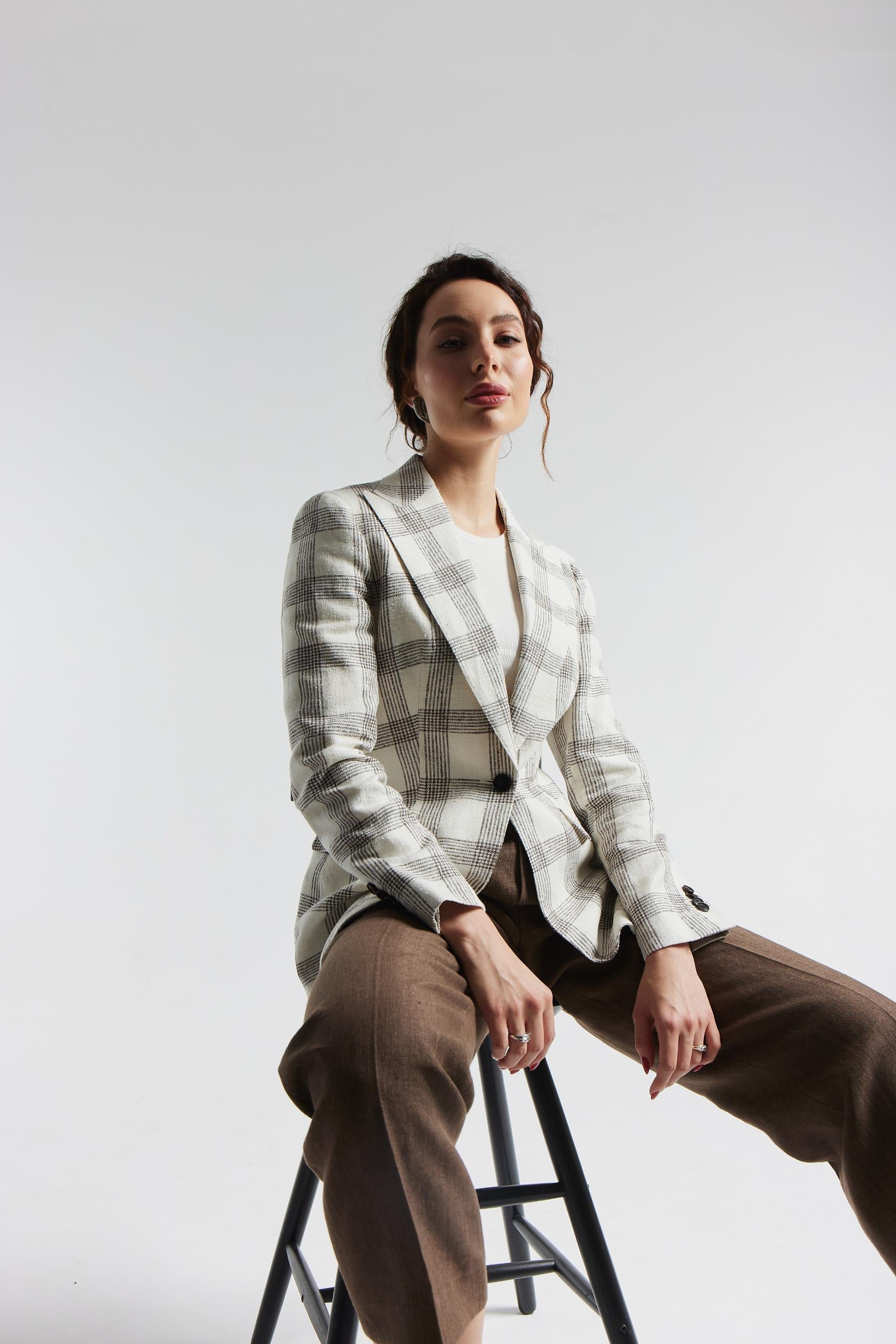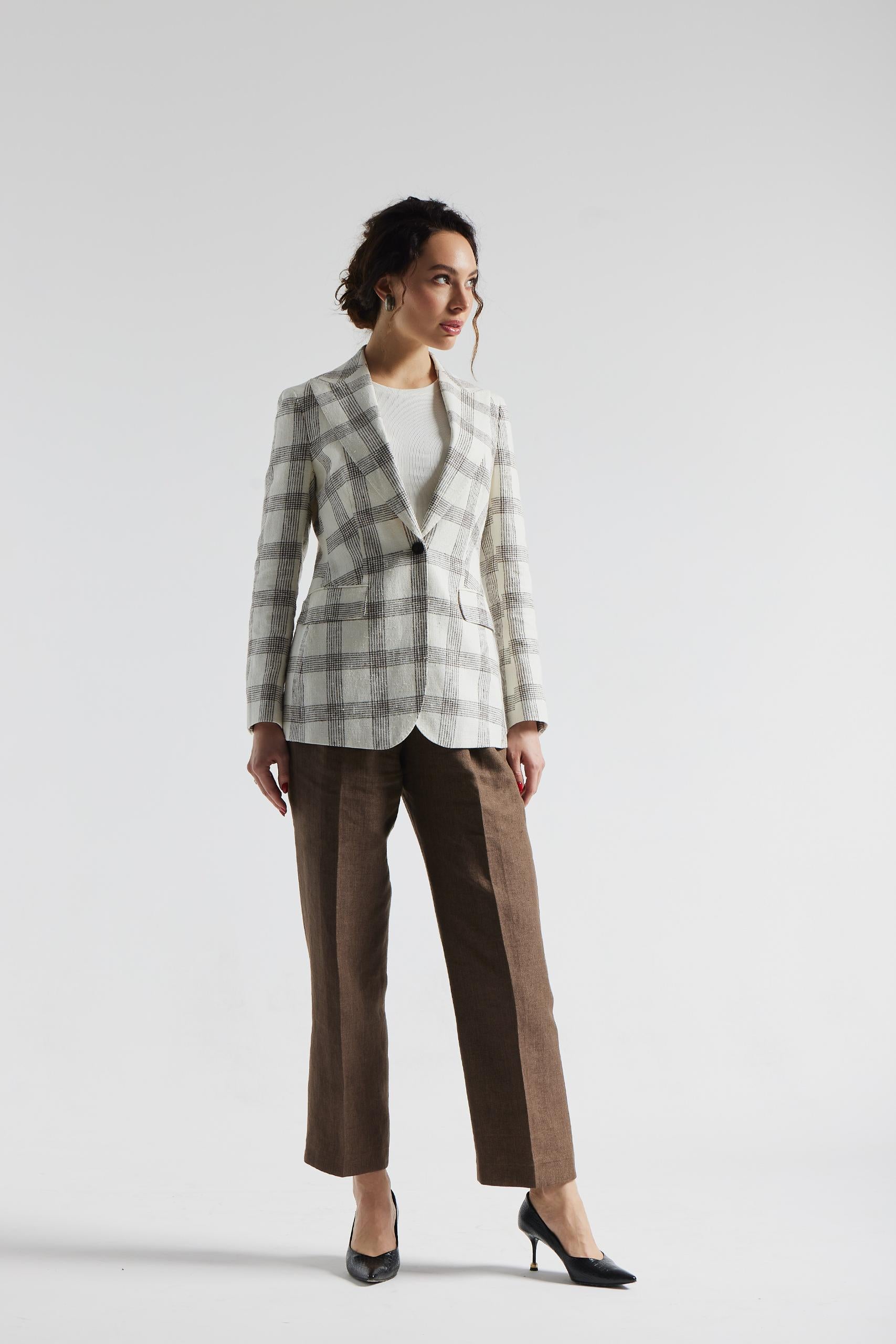 Ce blazer blanc et marron est confectionné dans un tissu unique de la marque italienne Ferl. Ce modèle prouve que porter un blazer ne signifie pas sacrifier le confort. Son tissu est incroyablement respirant. Ce blazer exclusif au design unique est la solution idéale pour les amateurs de coupes et de coutures traditionnelles qui souhaitent mettre en valeur leur souci du détail. Il est livré dans un étui pratique et résistant pour un transport et un rangement faciles.