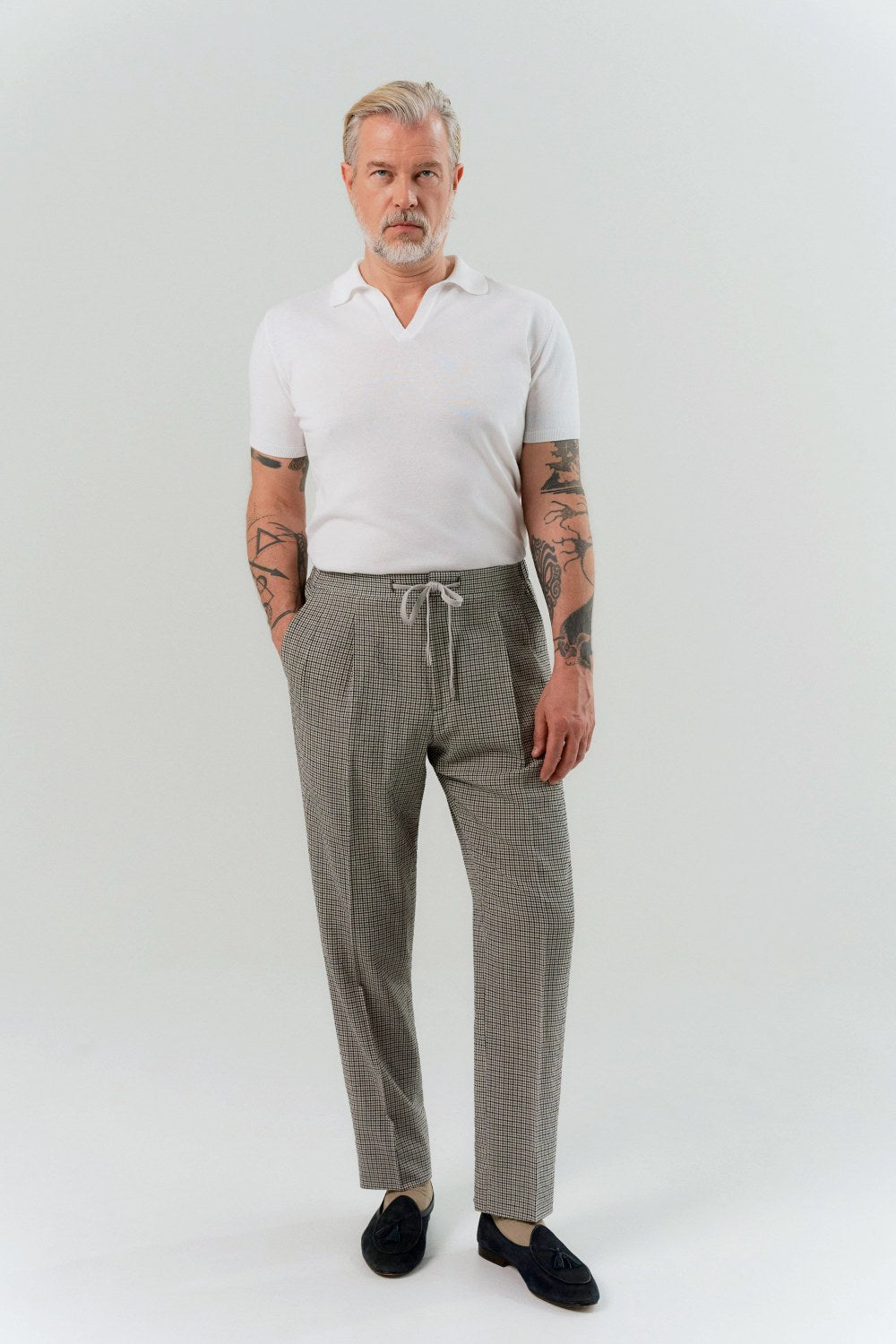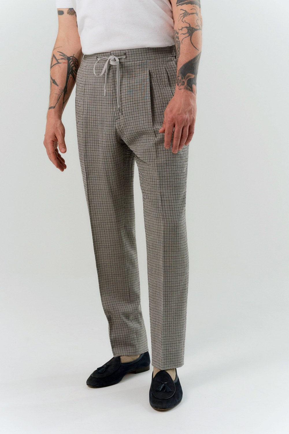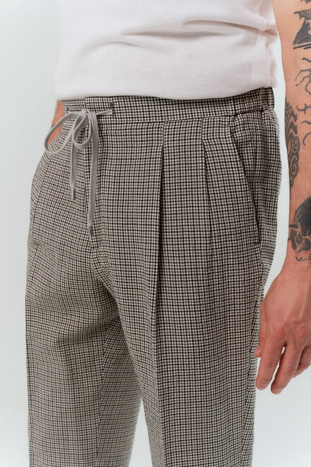 Pantalon de jogging en seersucker de laine à carreaux gris