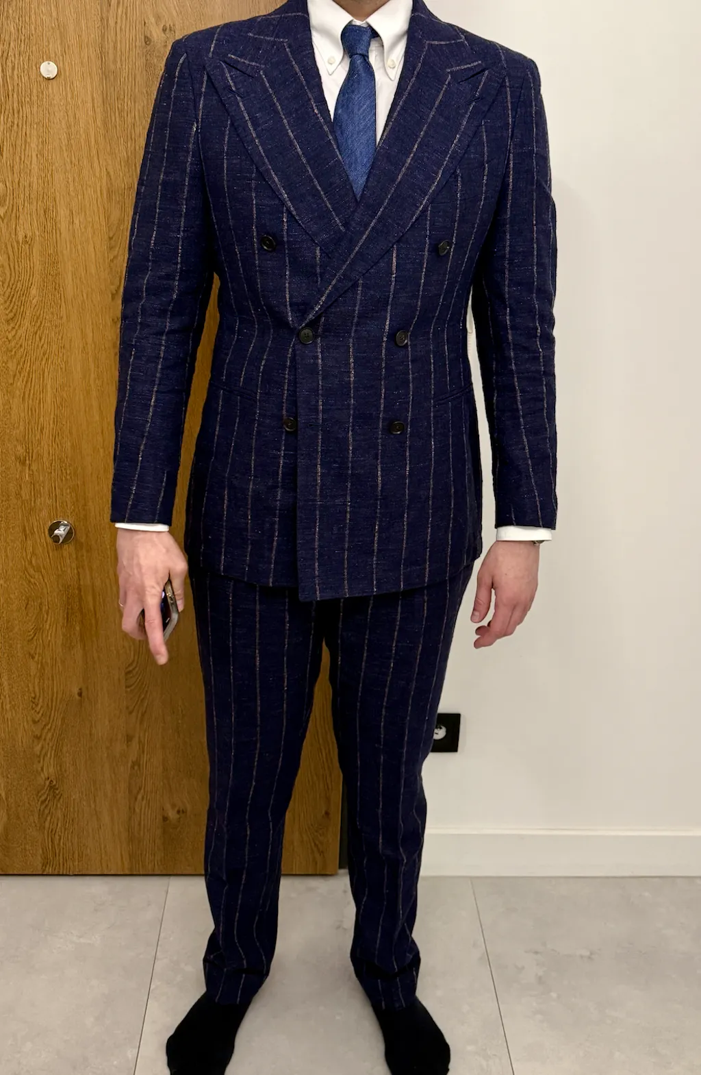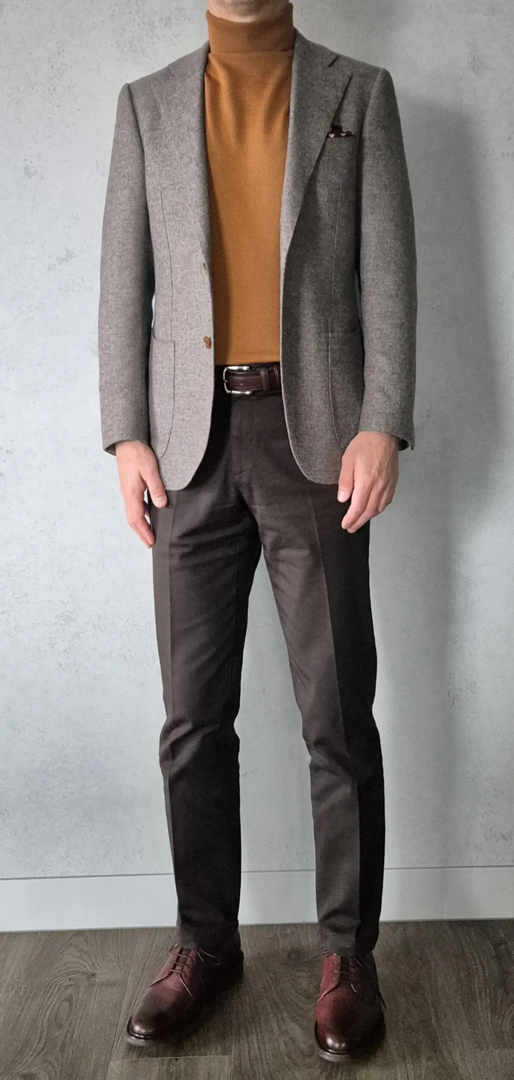 Fit is spot on (size 48) — comfortable and well-shaped. Easy to dress up or down, which I like the most.