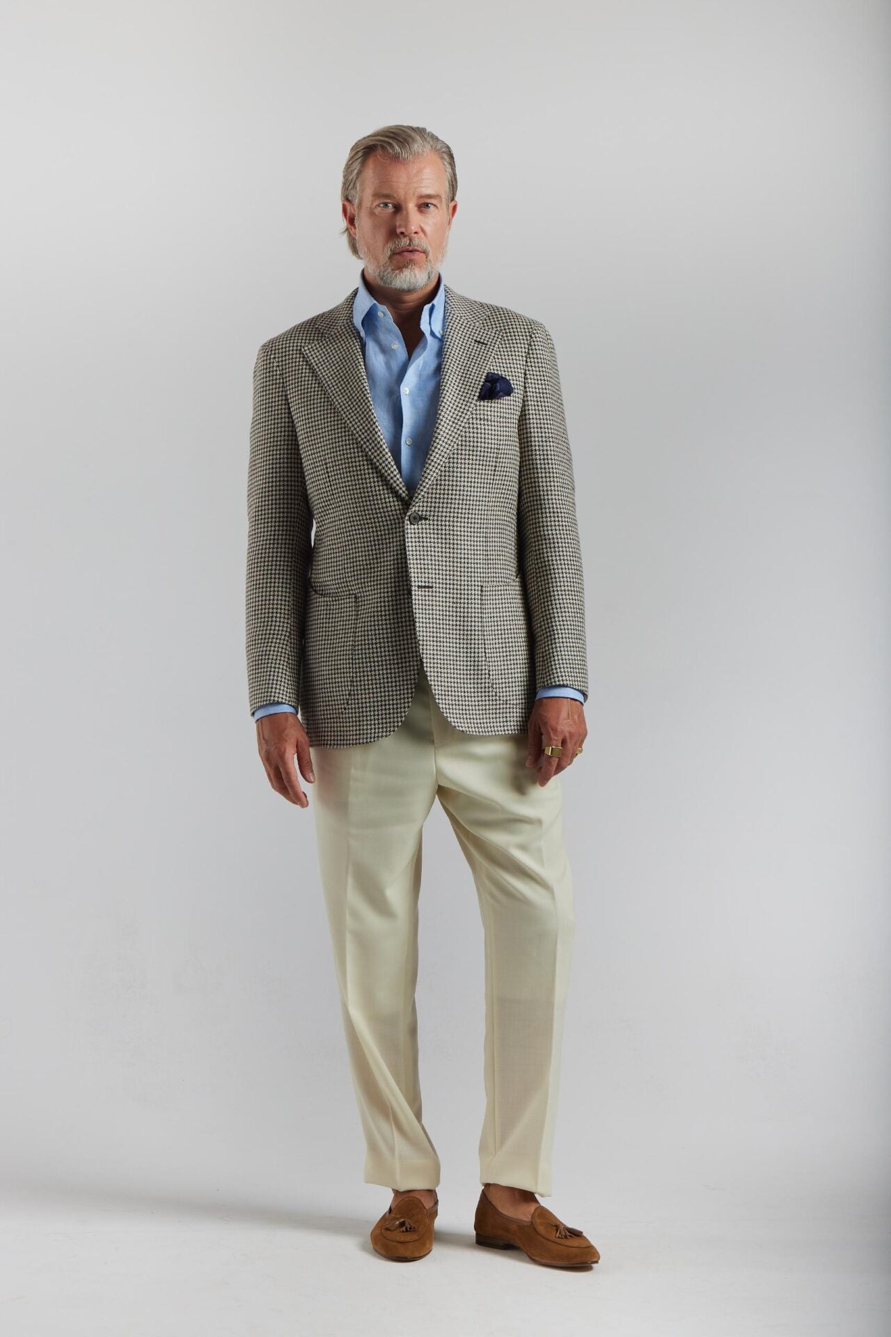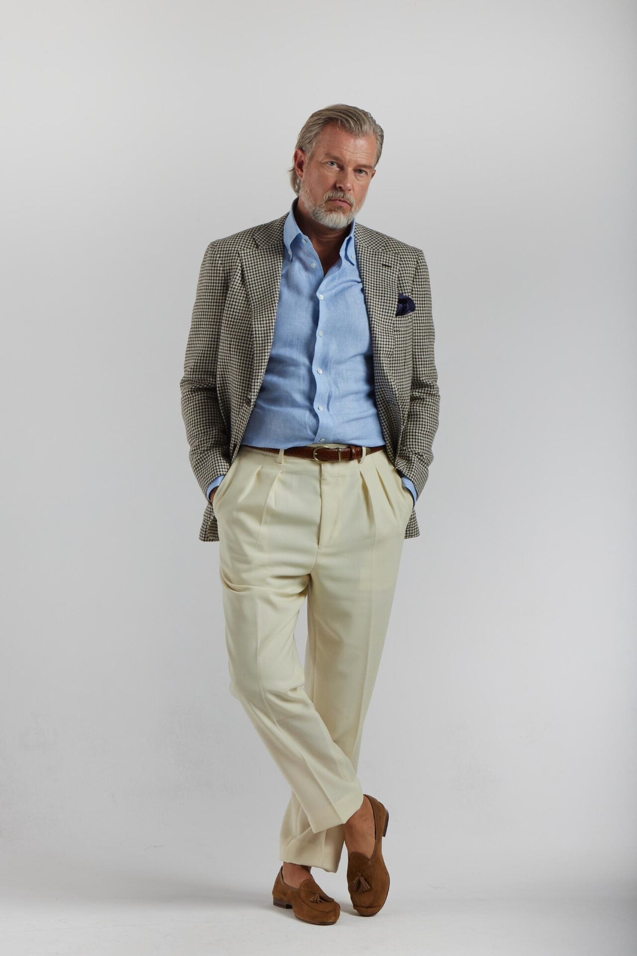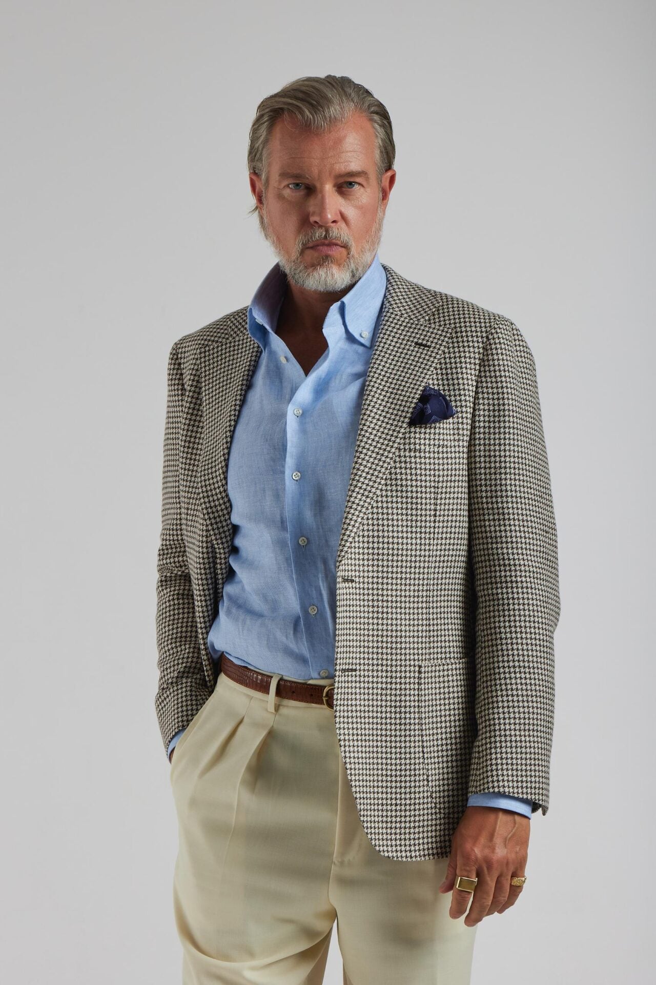 Nasza beżowa marynarka w pepitę sprawi, że zawsze będziesz ubrany modnie, niezależnie od okazji, na którą ją ubierzesz. Jej unikatowy design pozwoli Ci wyróżnić się z tłumu!