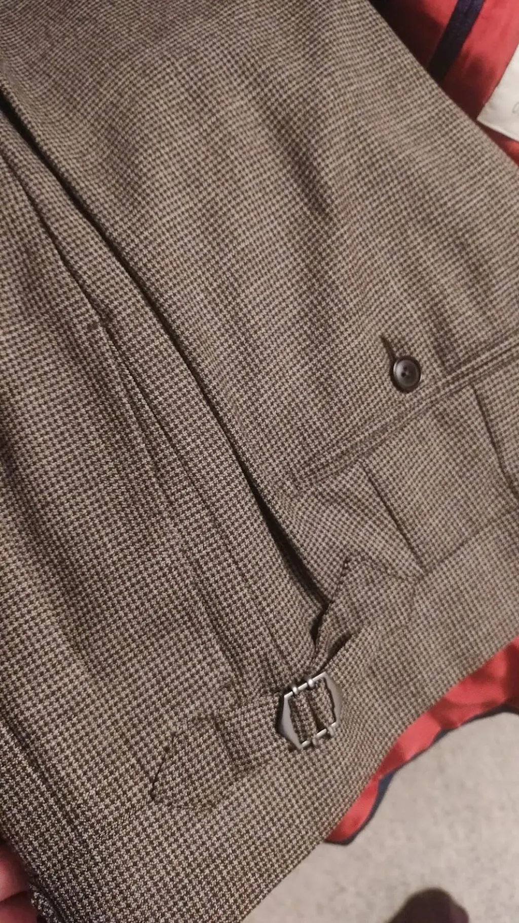 Strona główna Mężczyzna Męska odzież z linii Evergreen Męskie spodnie z linii Evergreen Beżowo-brązowe spodnie wełniane 4-ply w pepitę