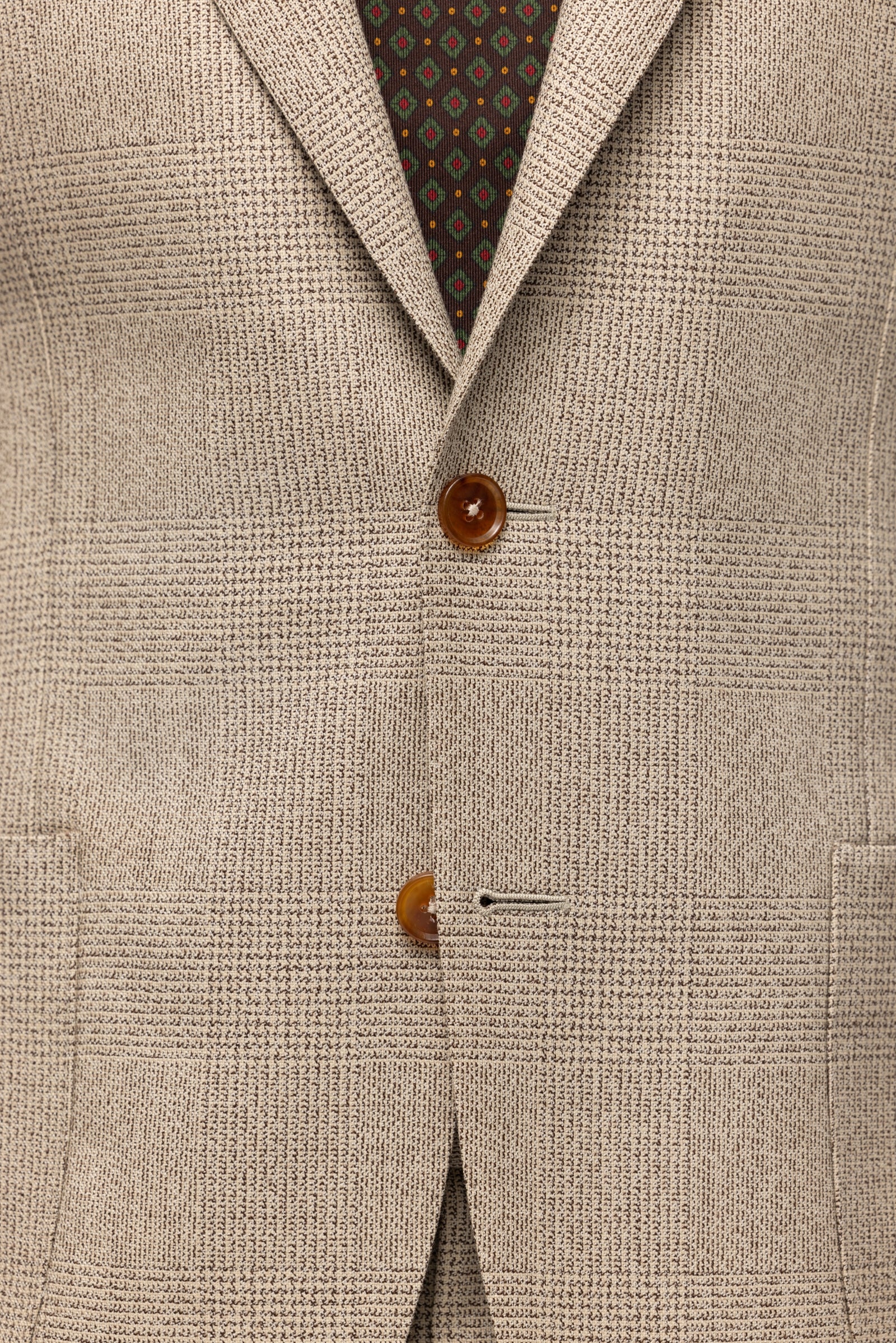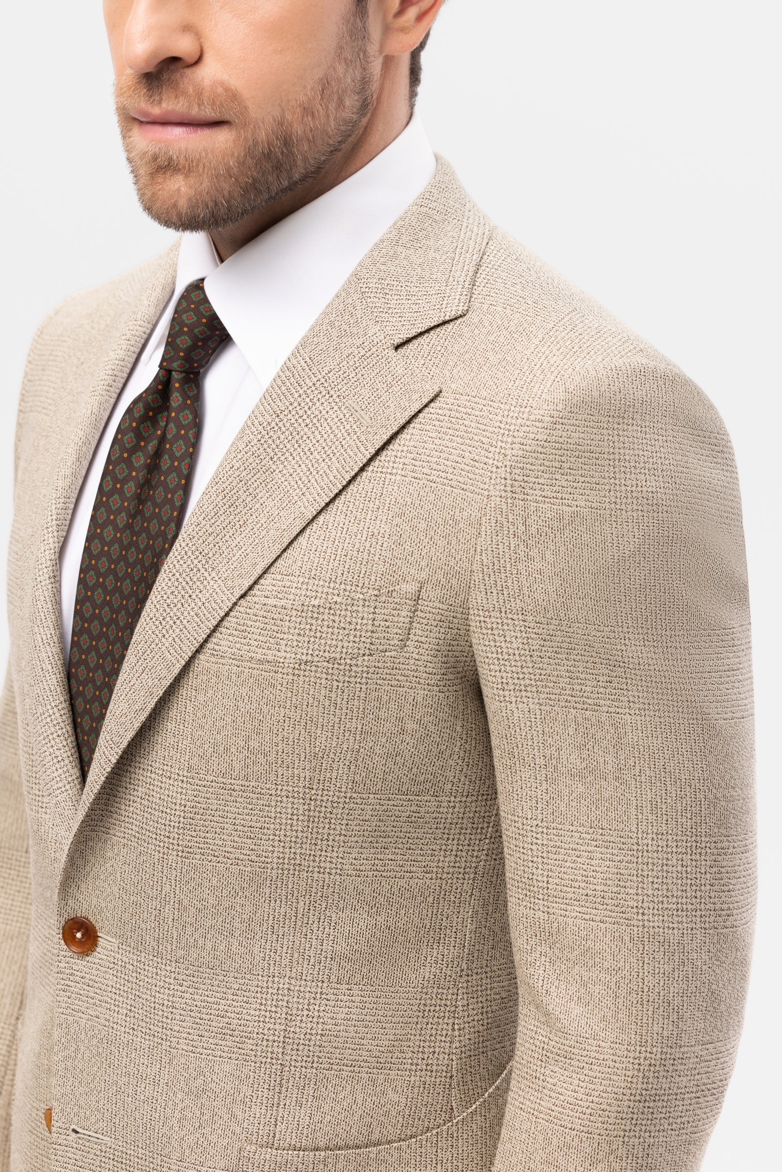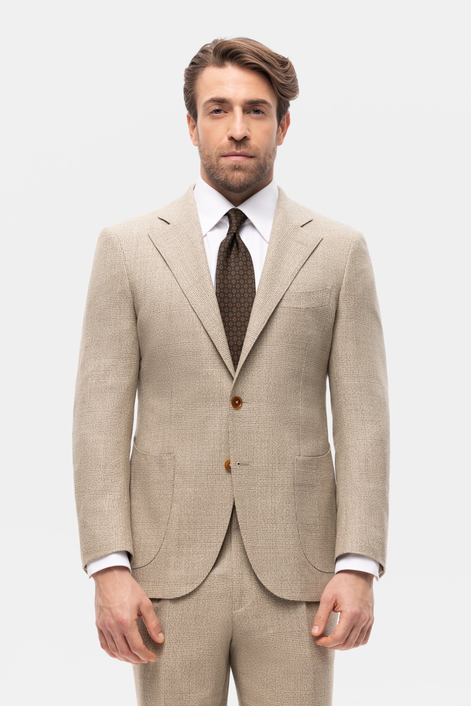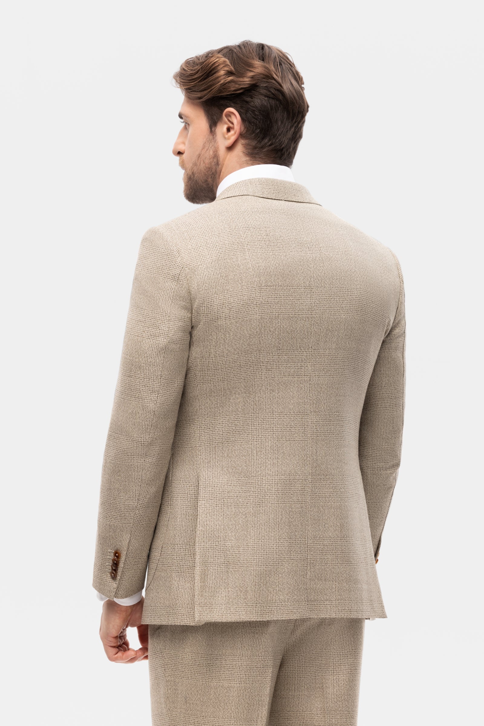 Strona główna Mężczyzna Męskie garnitury Męskie garnitury z linii Evergreen Beżowy garnitur z wełny w kratę Glencheck