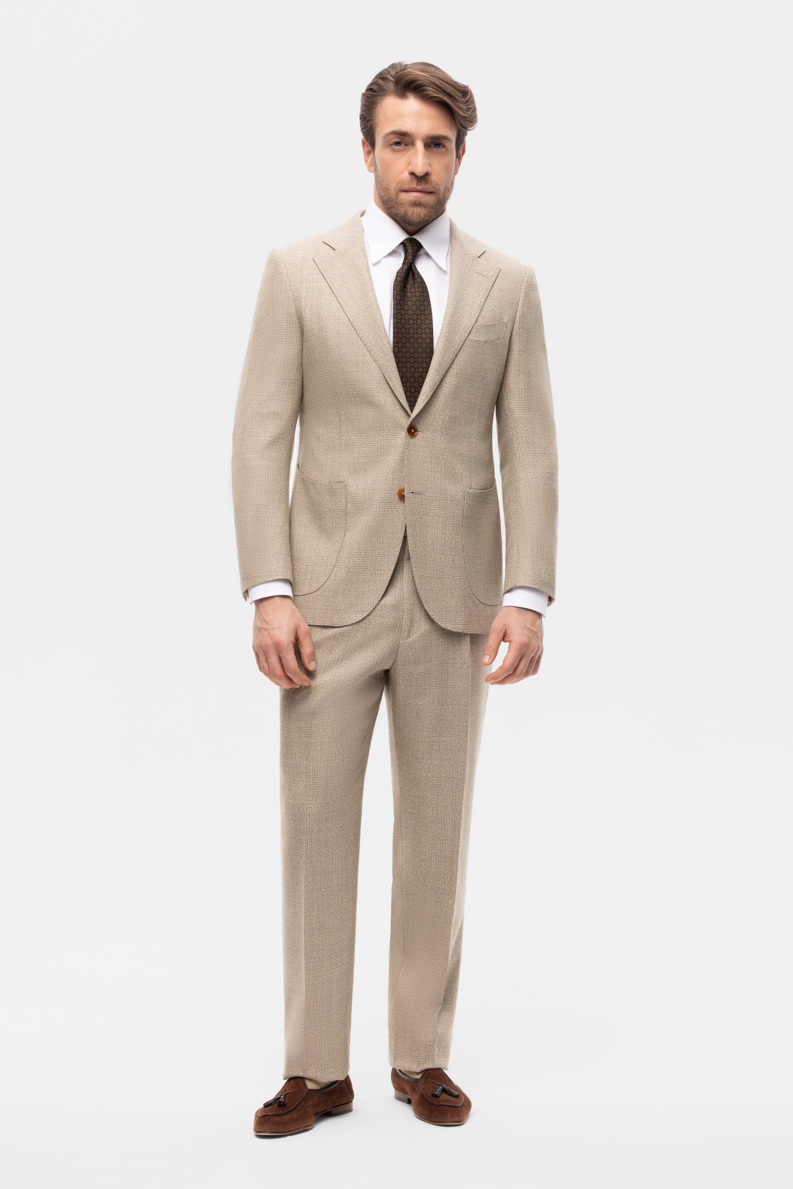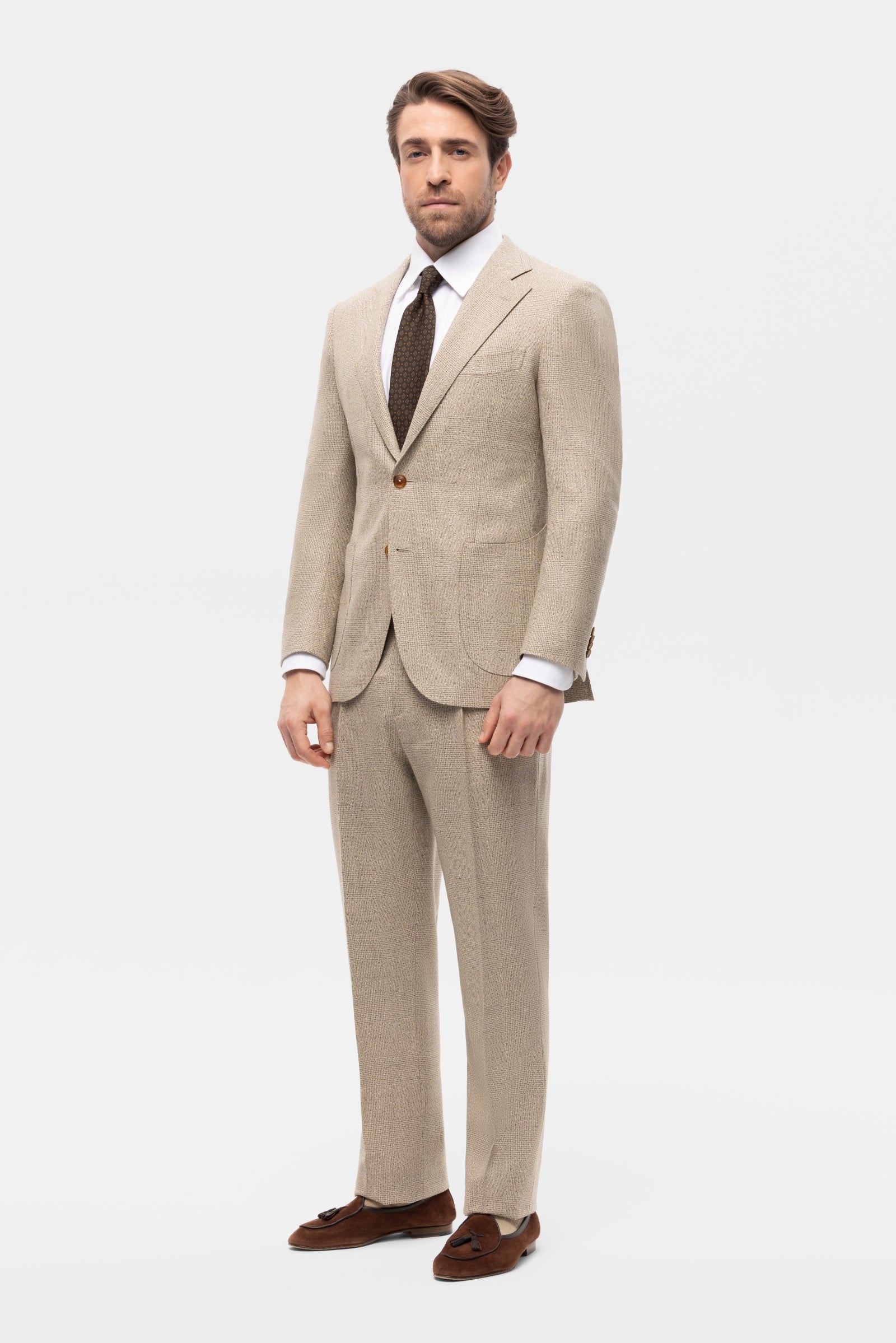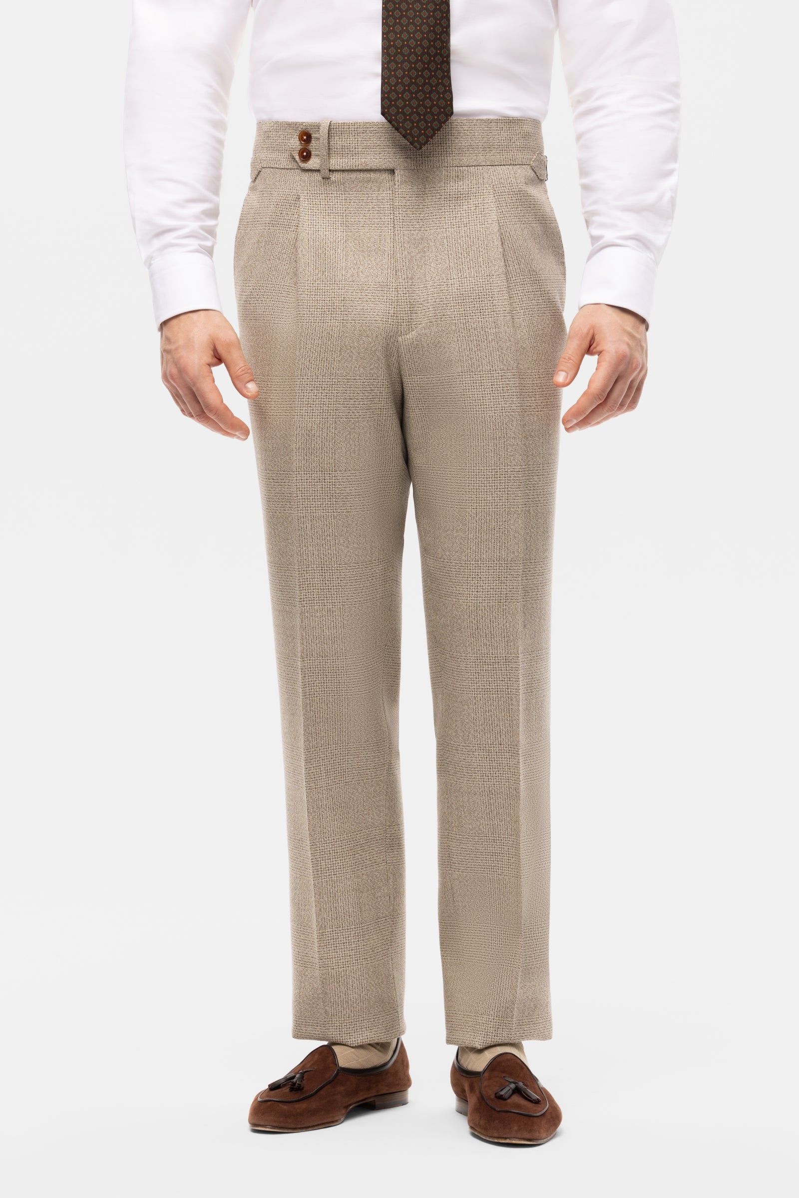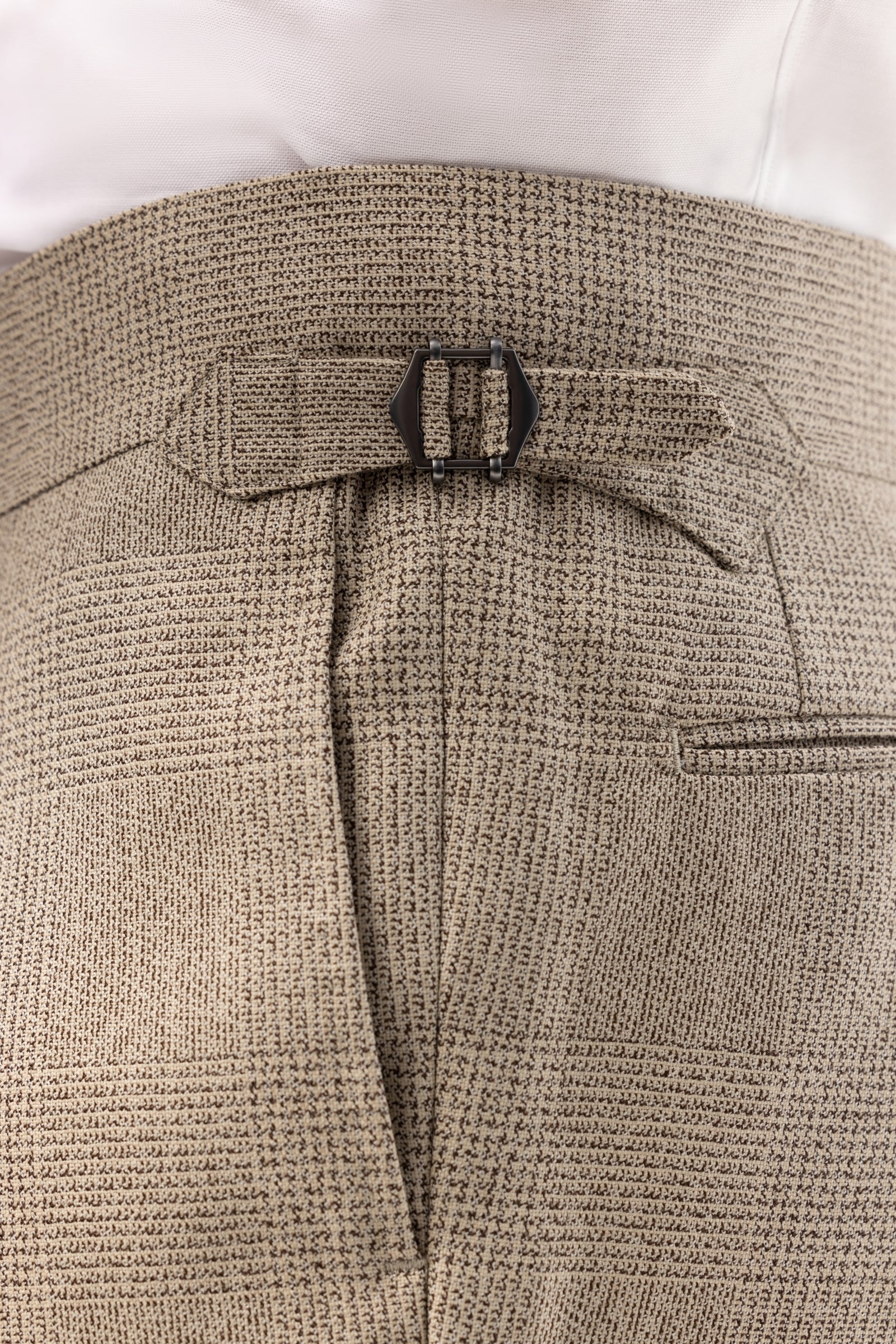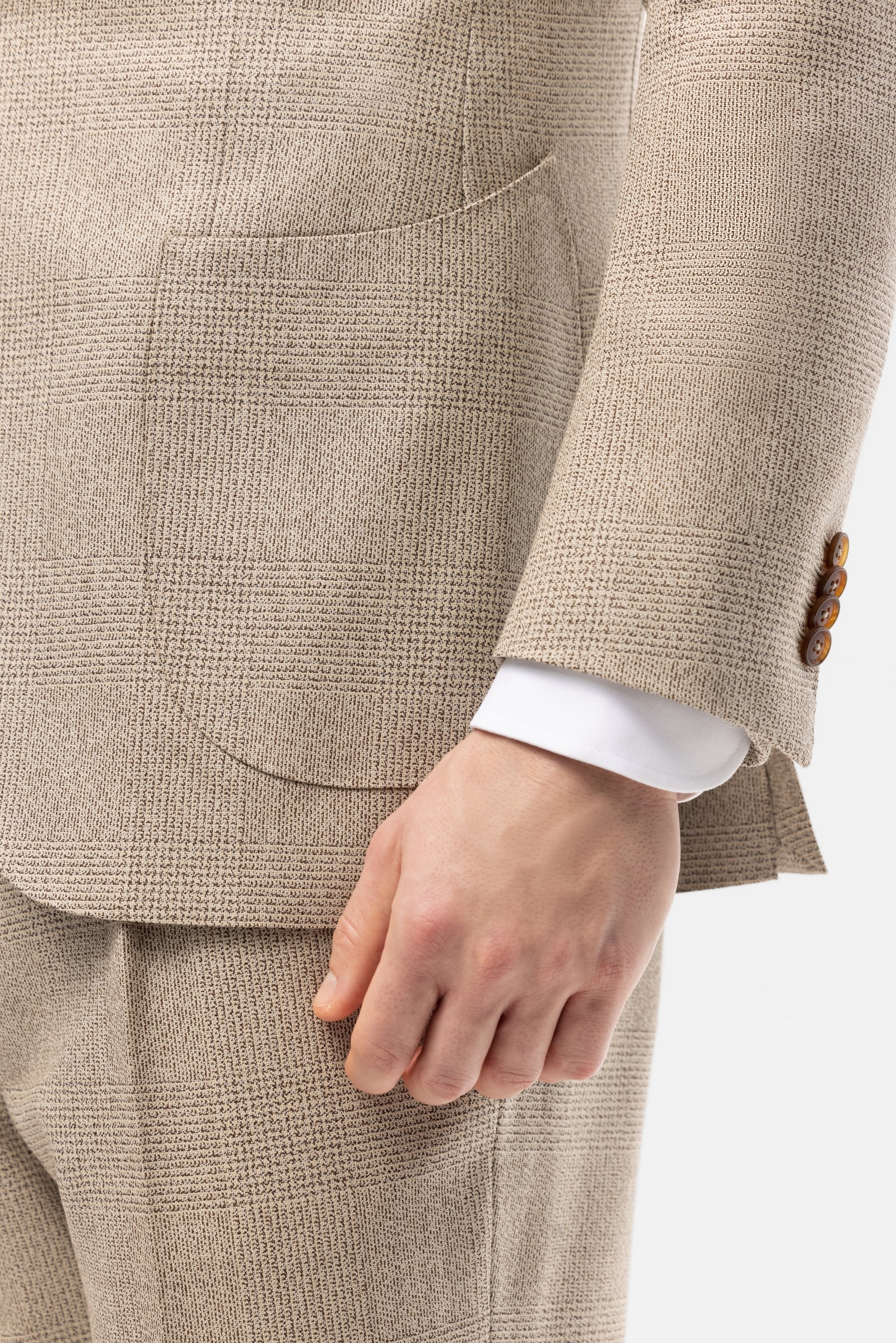 Strona główna Mężczyzna Męskie garnitury Męskie garnitury z linii Evergreen Beżowy garnitur z wełny w kratę Glencheck
