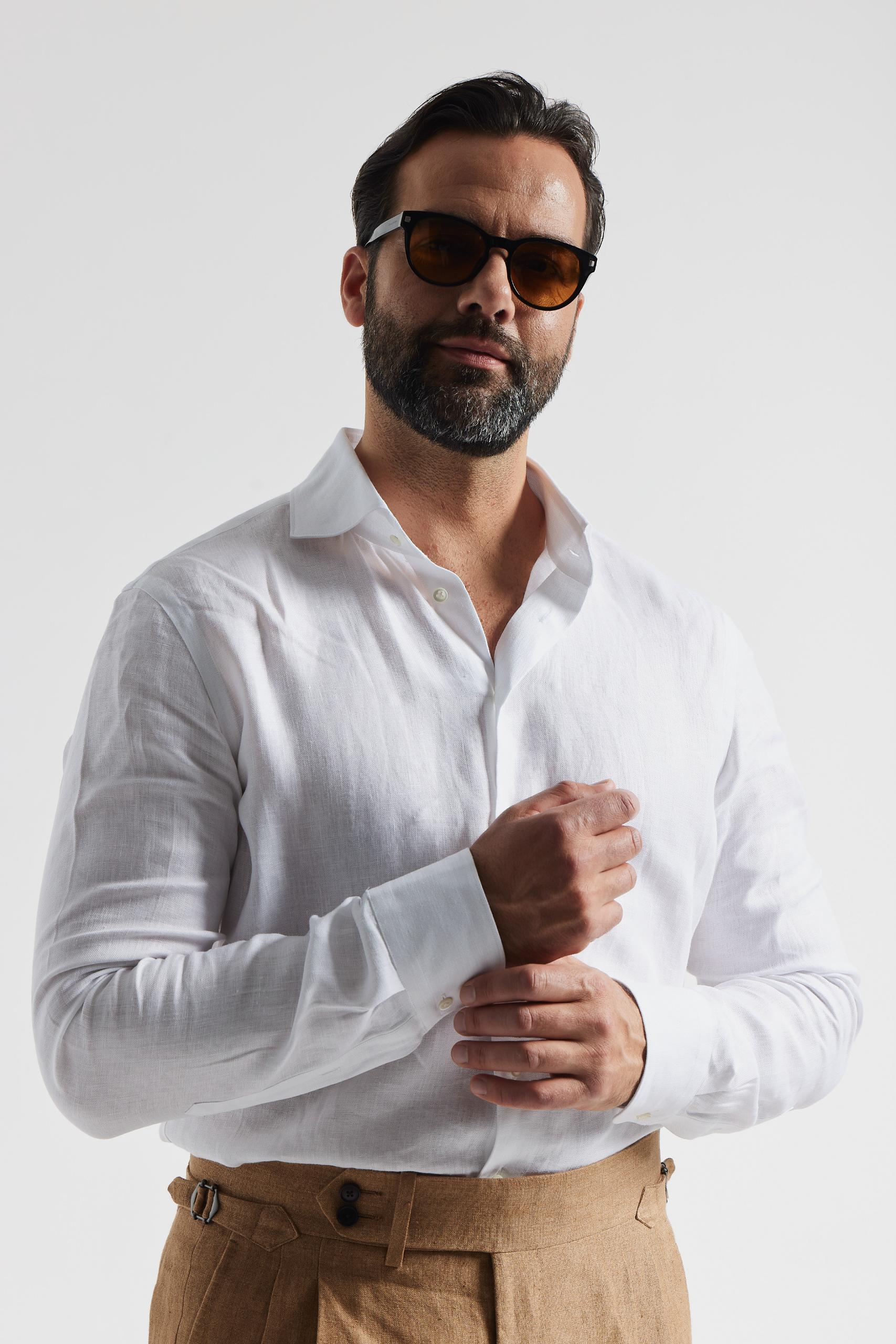 Ta biała, lniana koszula jest klasyczną propozycją idealną na każdą okazję. Jej włoski kołnierz nada Ci szyku i sprawi, że wszystkie stylizacje będą wyglądały szykowanie. Koszulę wykonano z lnianego materiału o delikatnym splocie, pochodzącego od renomowanego producenta Albini. Produkt wyprodukowano w Polsce, co jest gwarancją jego wysokiej jakości!
