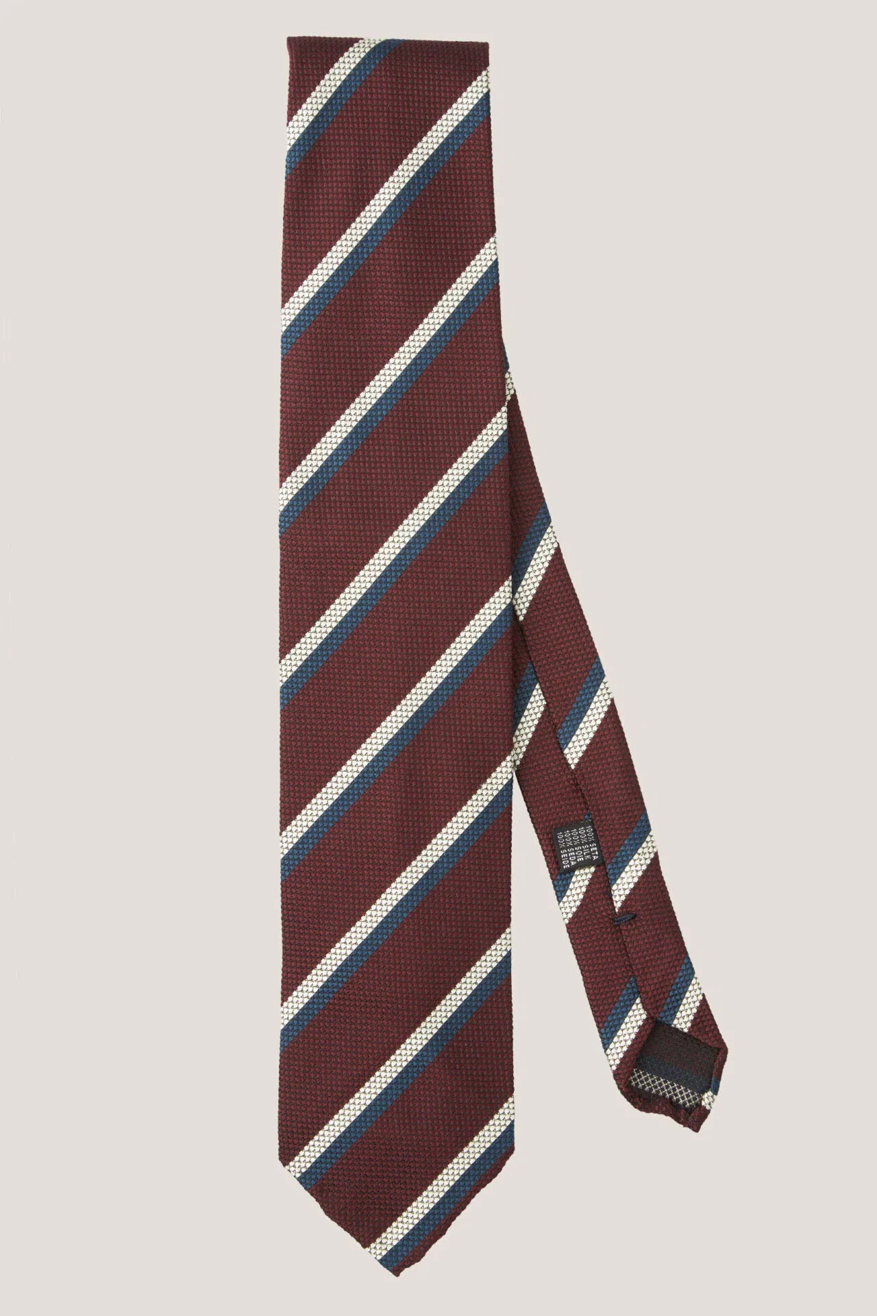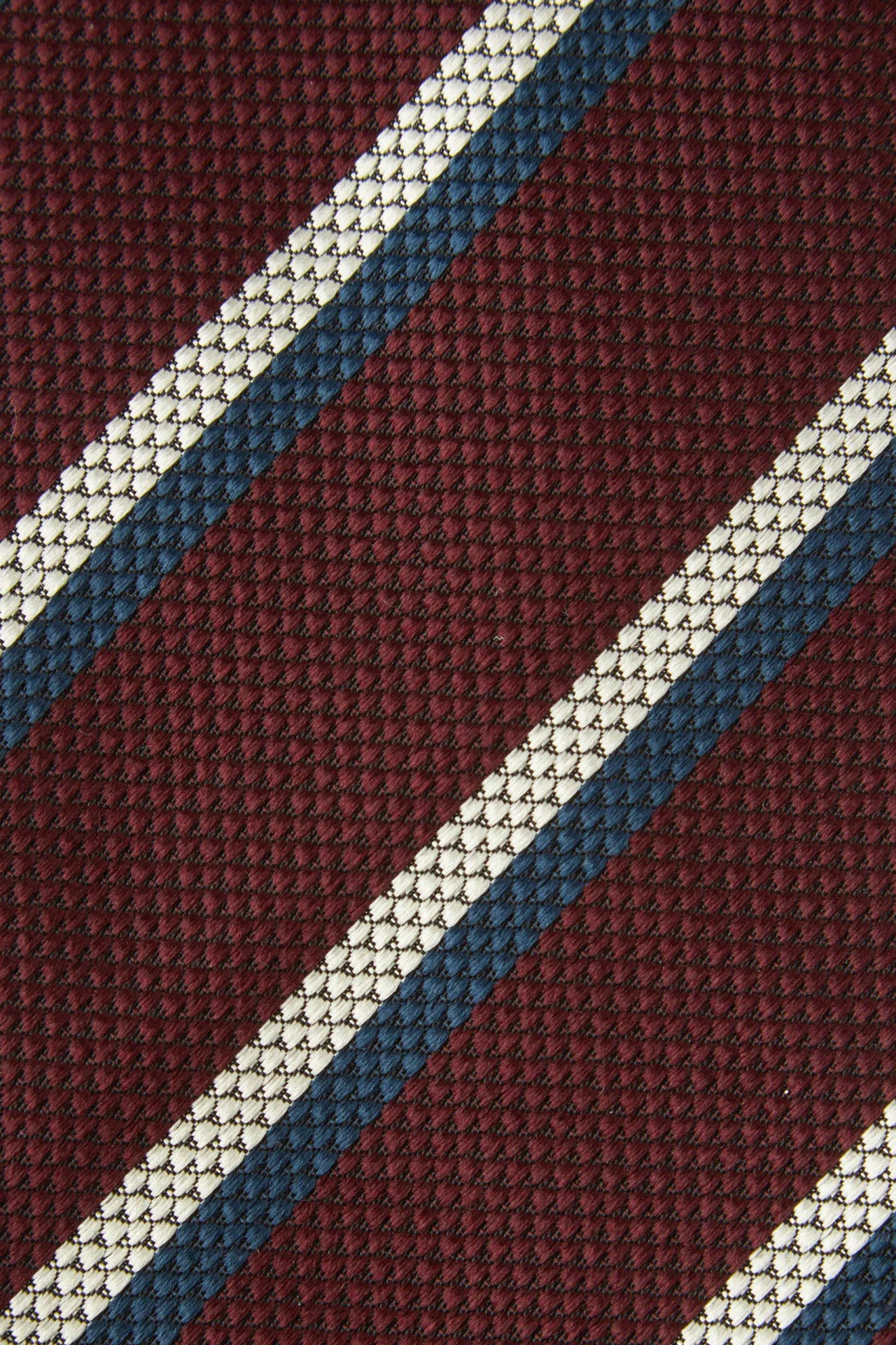 Elegancki krawat regimental, wykonany z 100% jedwabnej strukturalnej tkaniny. Idealnie sprawdzi się jako kropka nad i w naszej stylizacji. Konstrukcja bez podszewki z ręcznie wykańczanym rantem, nadaje rzemieślniczego sznytu. Zapakowany w eleganckie pudełko do przechowywania, które zapewni krawatowi długowieczność. Klasyka stylu preppy.