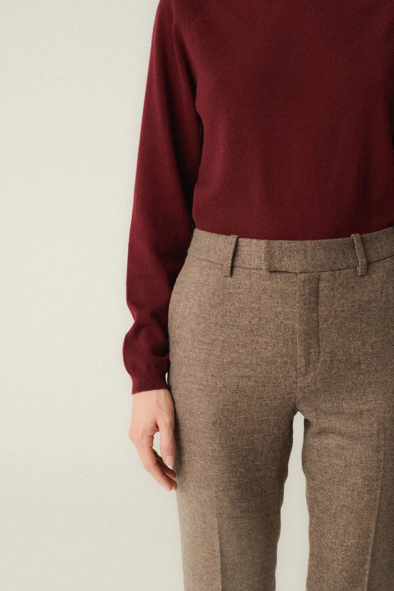 Sweter damski wykonany z mieszanki 90% wełny merino i 10% kaszmiru, nie tylko zachwyca elegancją, ale także zapewnia miękkość i przyjemność noszenia. To doskonały wybór na chłodniejsze dni. Dostępny w kilku wersjach kolorystycznych.