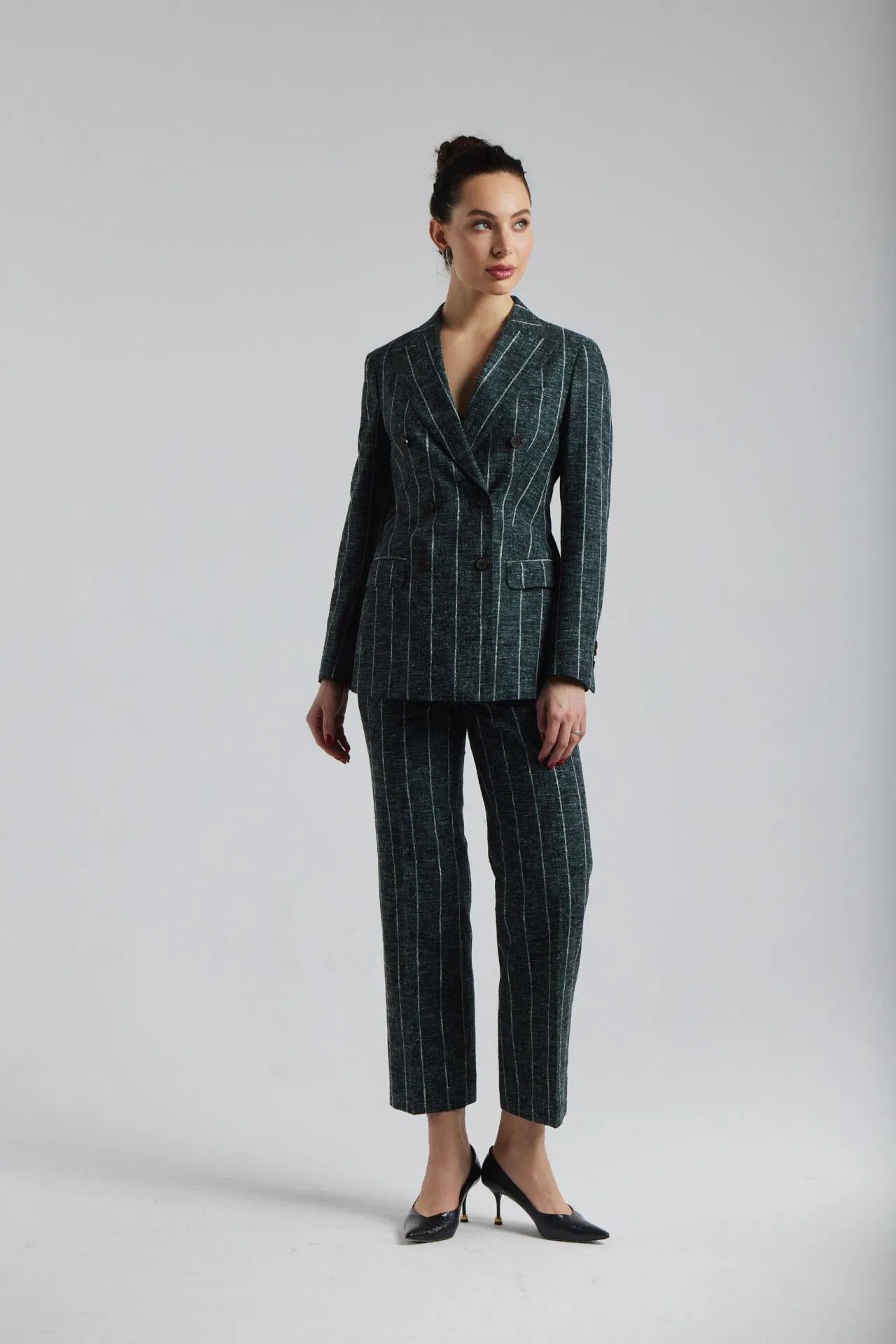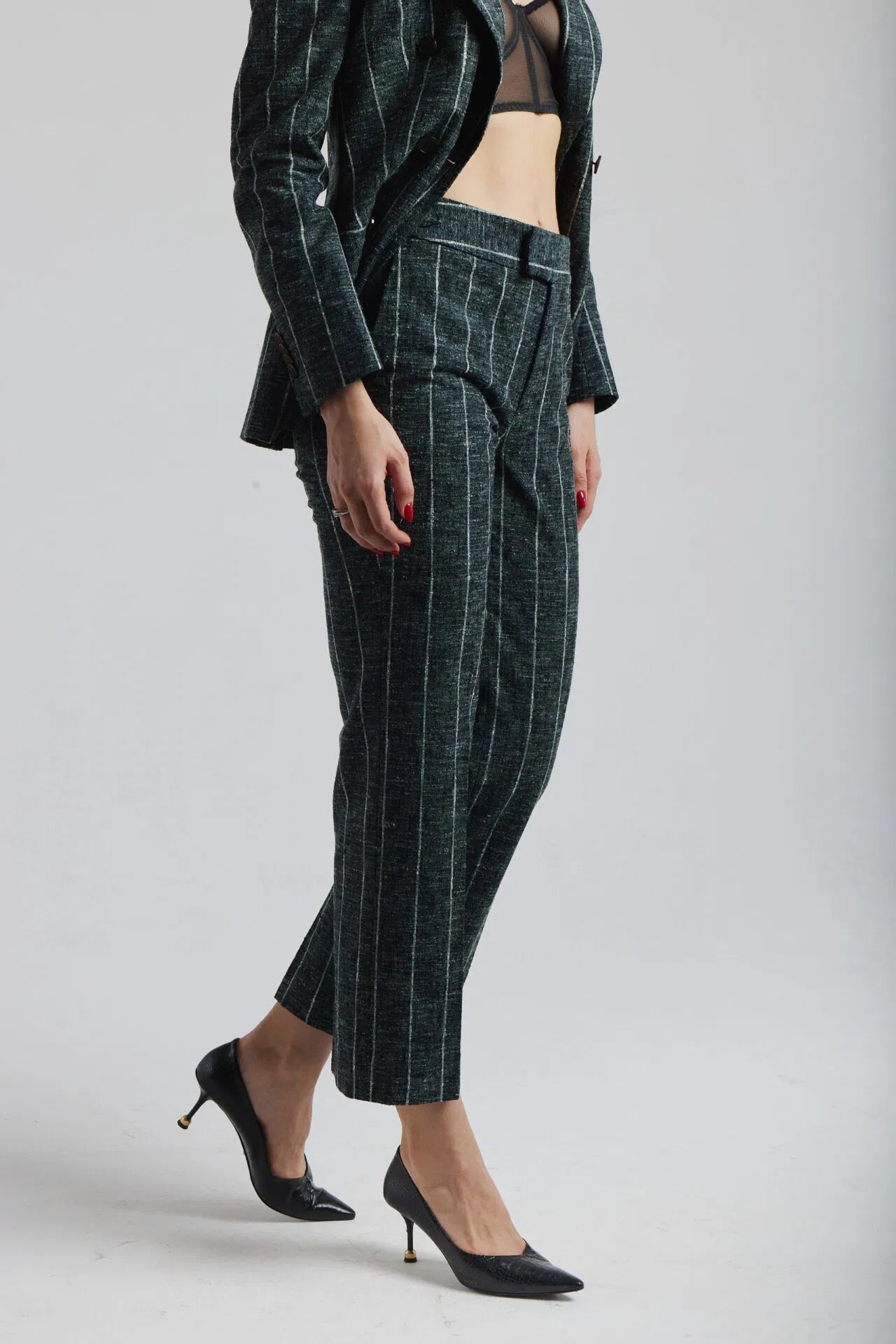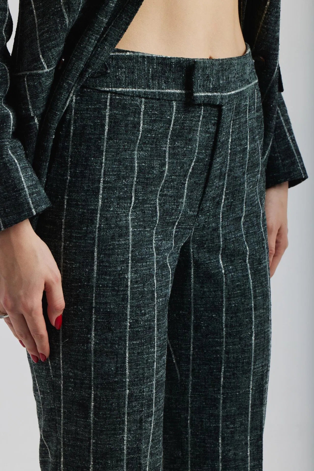 Ciemnozielony garnitur Chiara w biały prążek