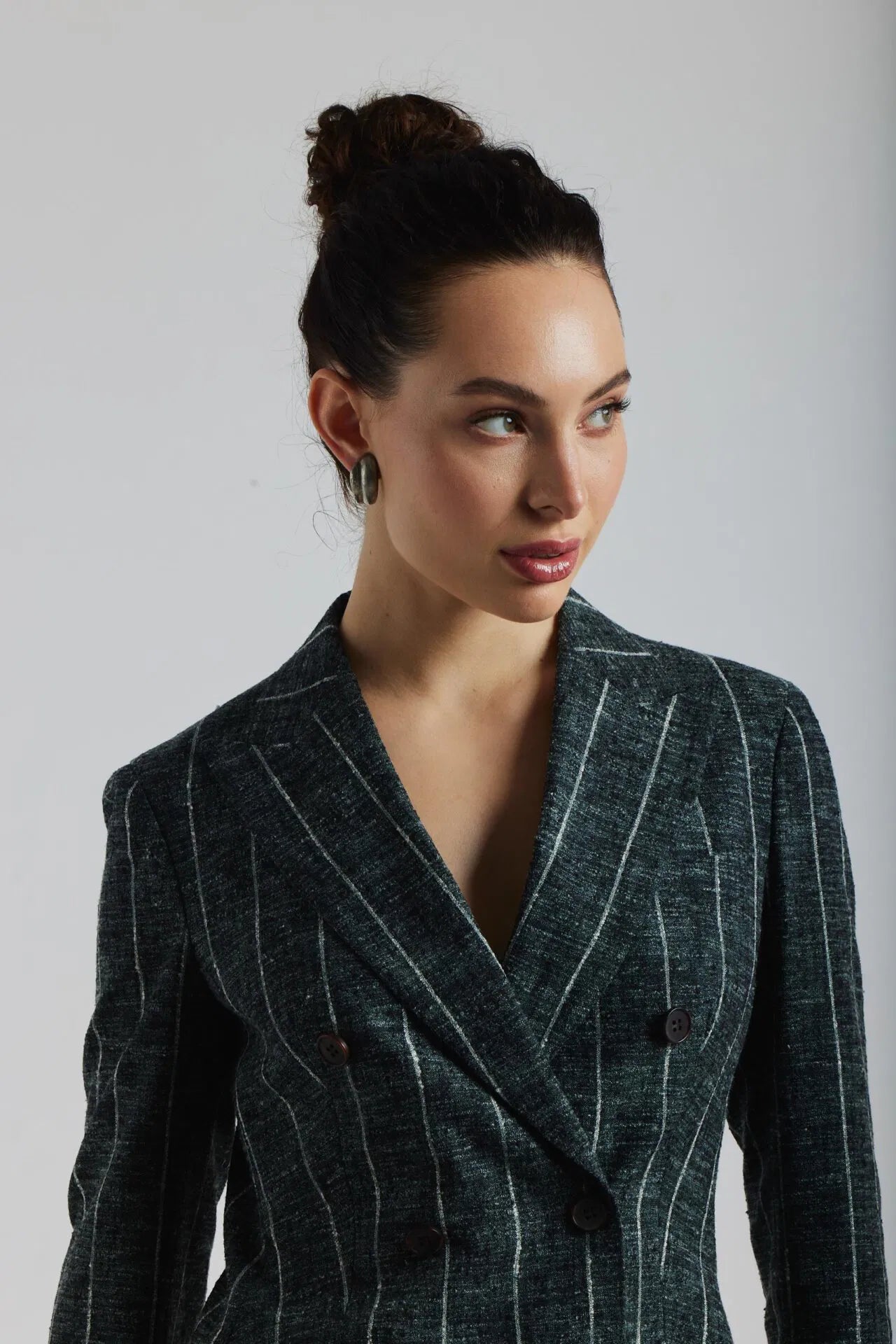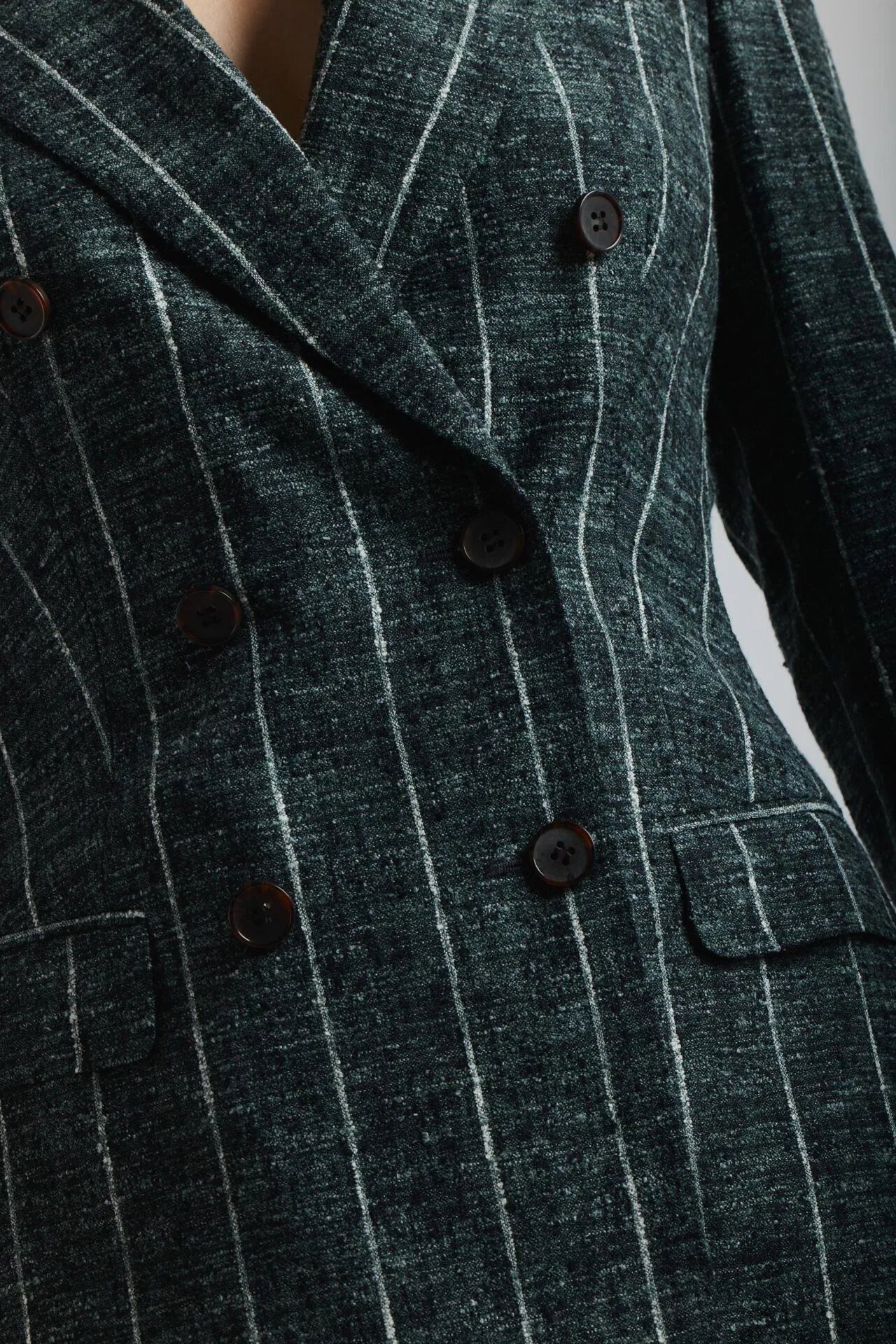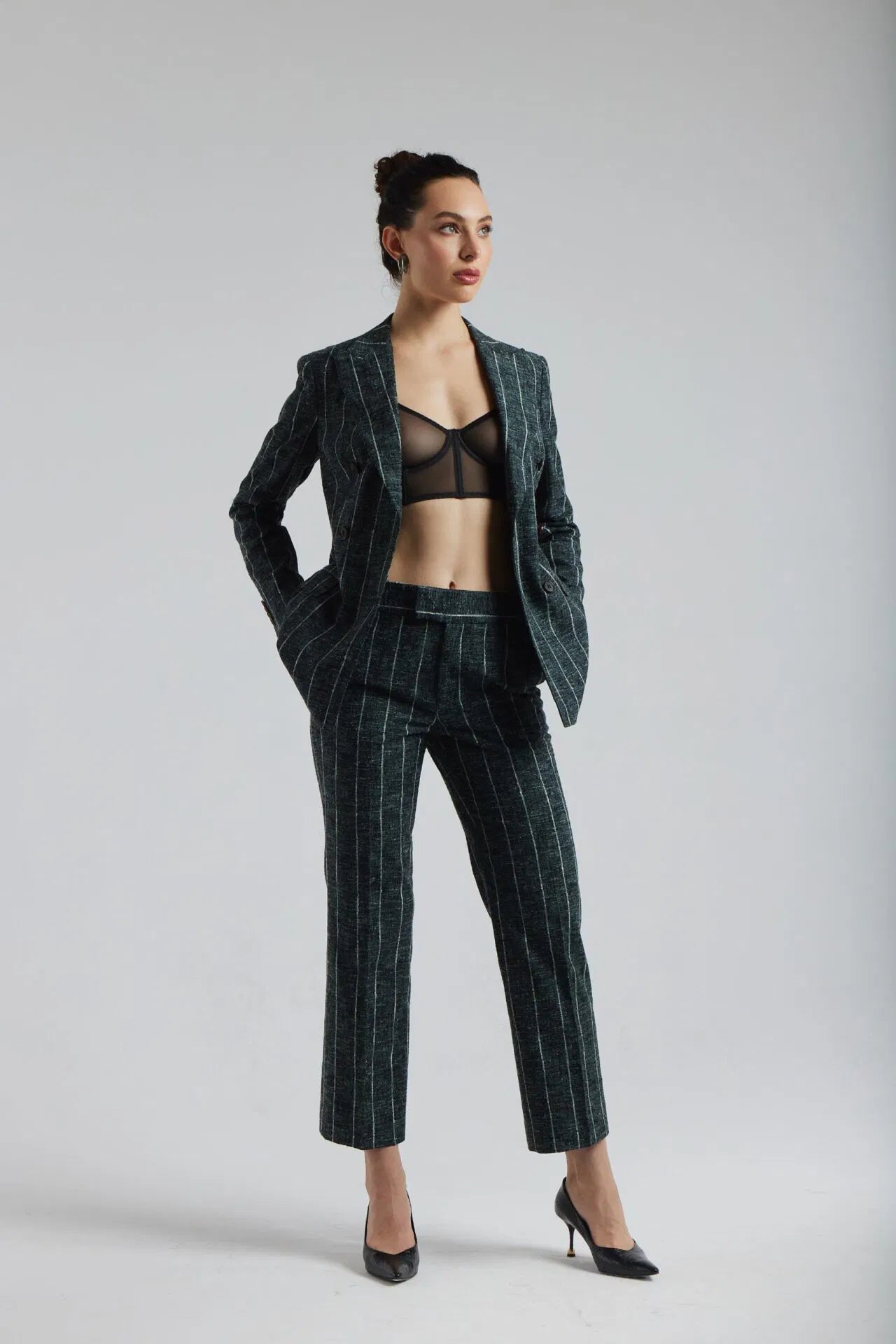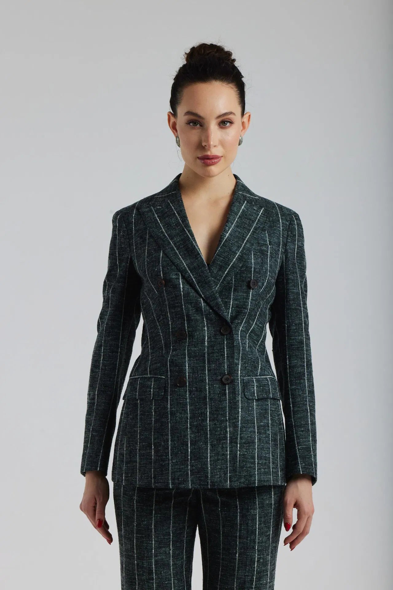 Ciemnozielony garnitur Chiara w biały prążek