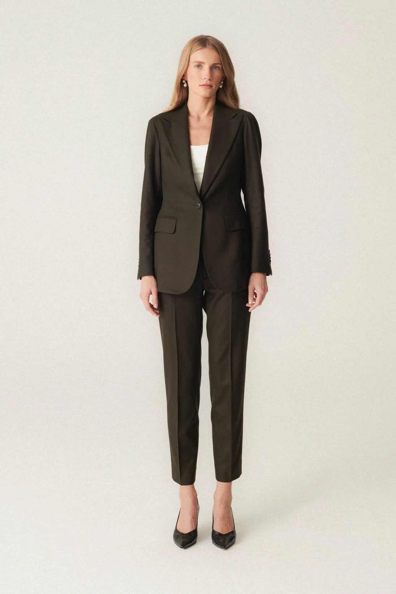 Nasz damski garnitur wełniany, wykonany z lekkiej wełny VBC o masie 340 gramów, wyróżnia się eleganckim wyglądem i komfortem noszenia. To jedna z najbardziej uniwersalnych propozycji na codzień. Dostępny w kilku wersjach kolorystycznych.