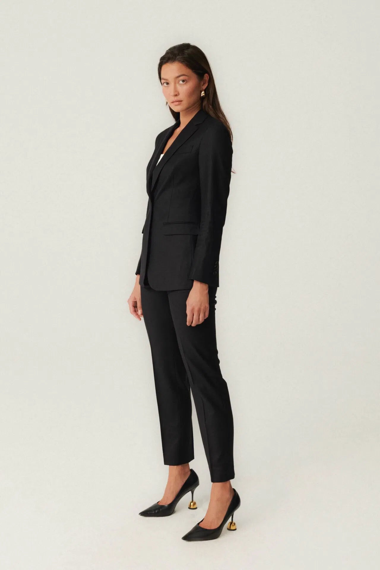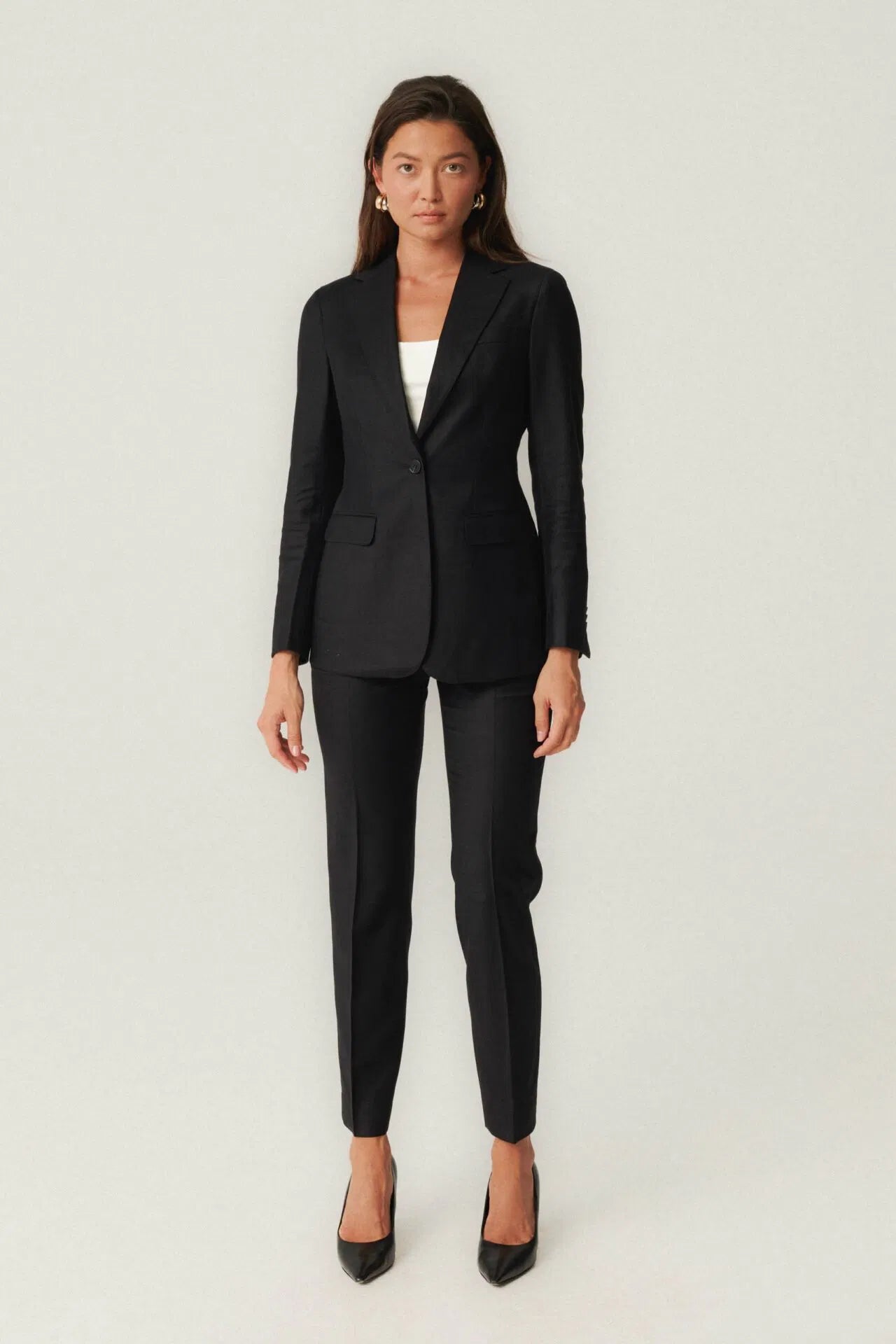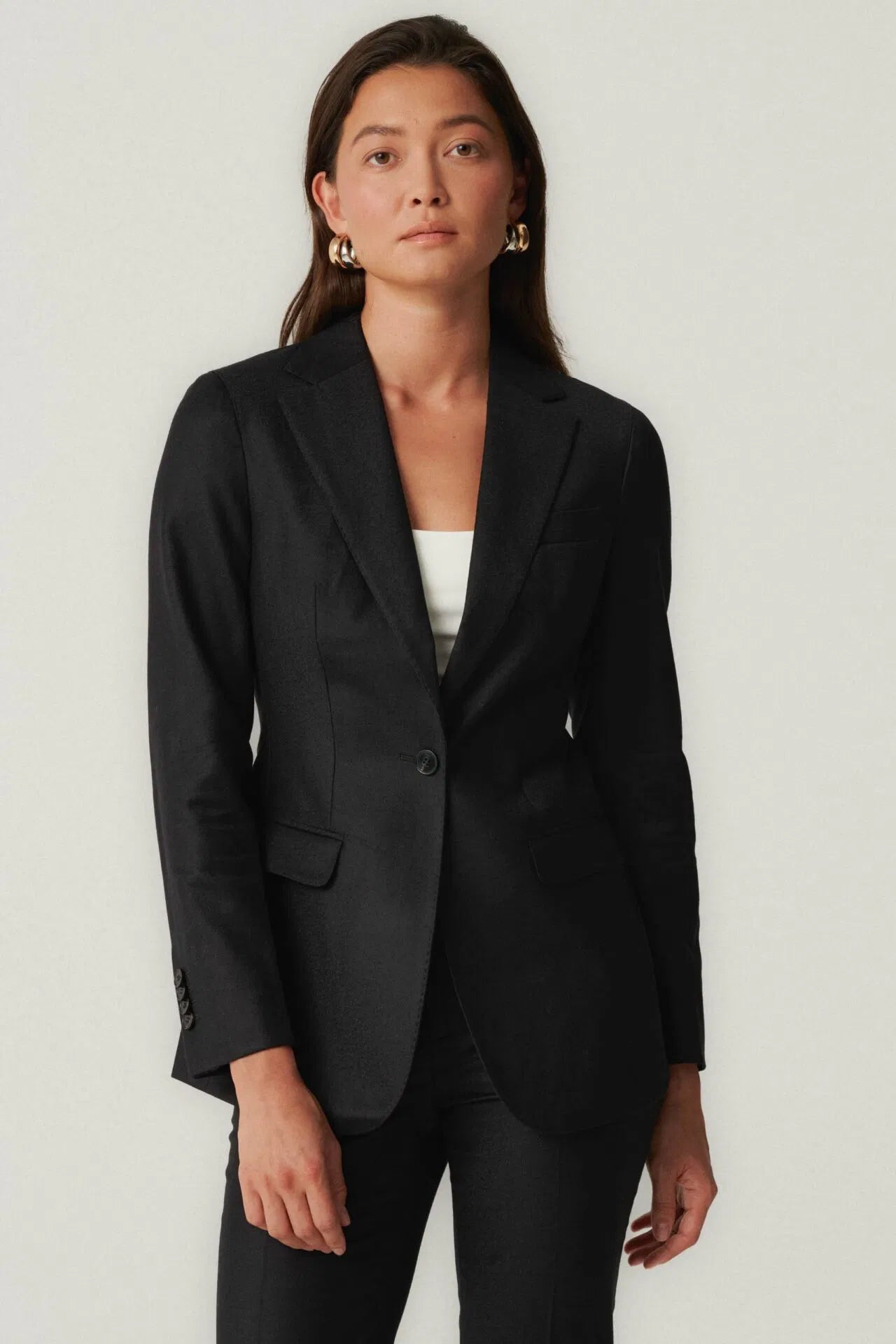Czarny garnitur z tkaniny Loro Piana z kaszmirem
