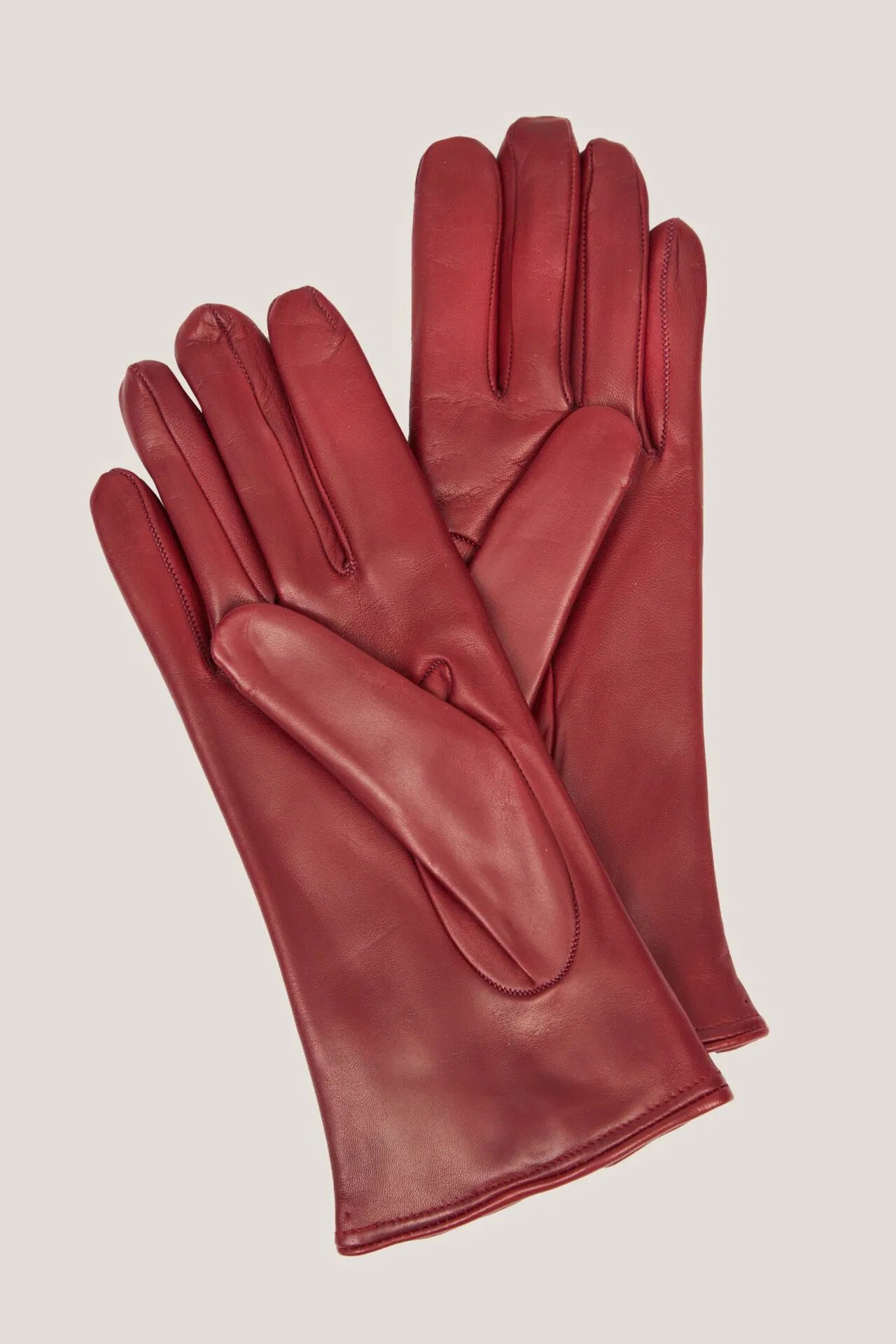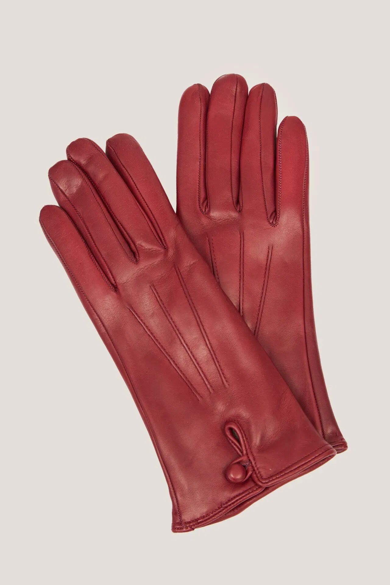 Czerwone rękawiczki ze skóry zapinane na guzik