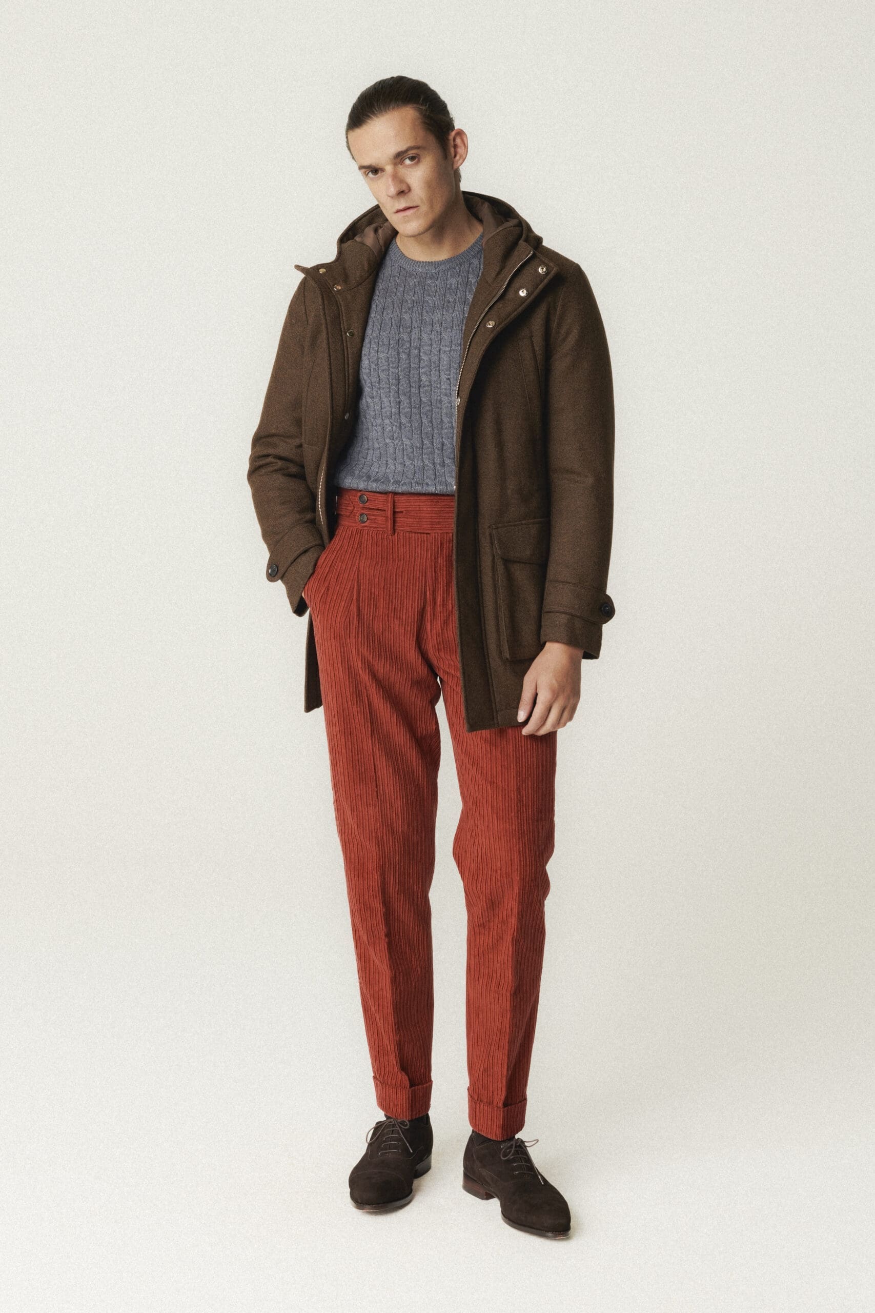 Spodnie sztruksowe nadają się idealnie na sezon przejściowy oraz zimowe warunki. Ich materiał pochodzi od renomowanego, włoskiego producenta Albini. Dostępne w kilku wersjach kolorystycznych.