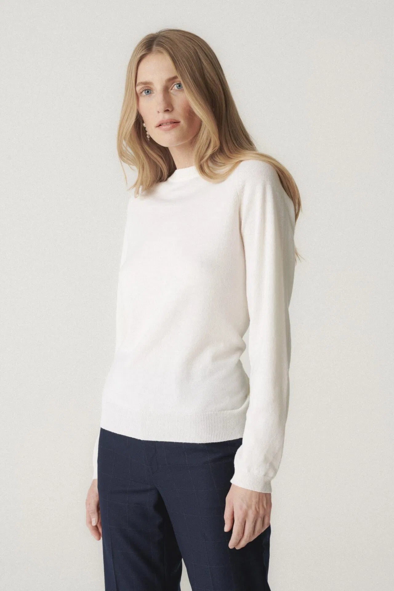 Sweter damski wykonany z mieszanki 90% wełny merino i 10% kaszmiru, nie tylko zachwyca elegancją, ale także zapewnia miękkość i przyjemność noszenia. To doskonały wybór na chłodniejsze dni. Dostępny w kilku wersjach kolorystycznych.