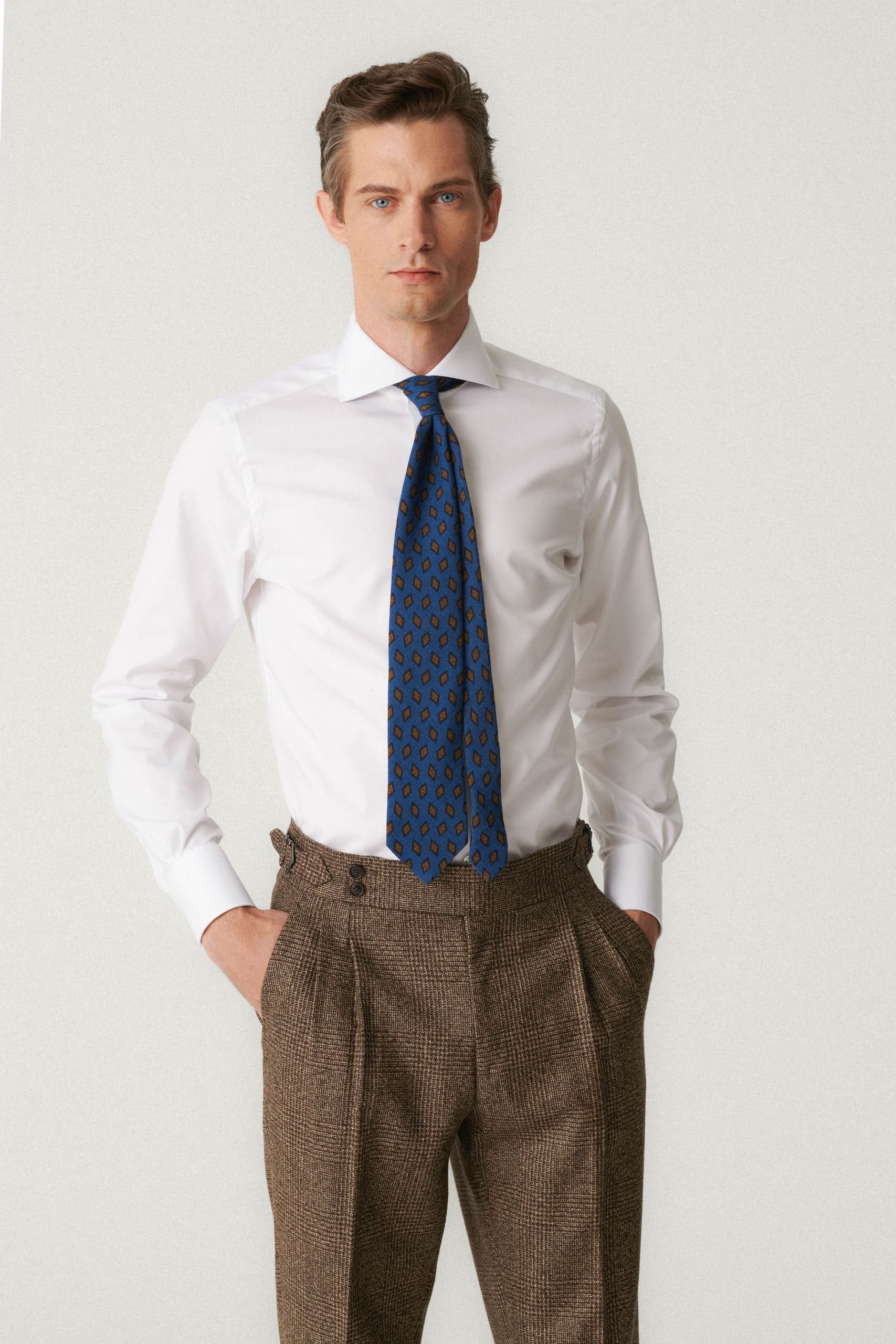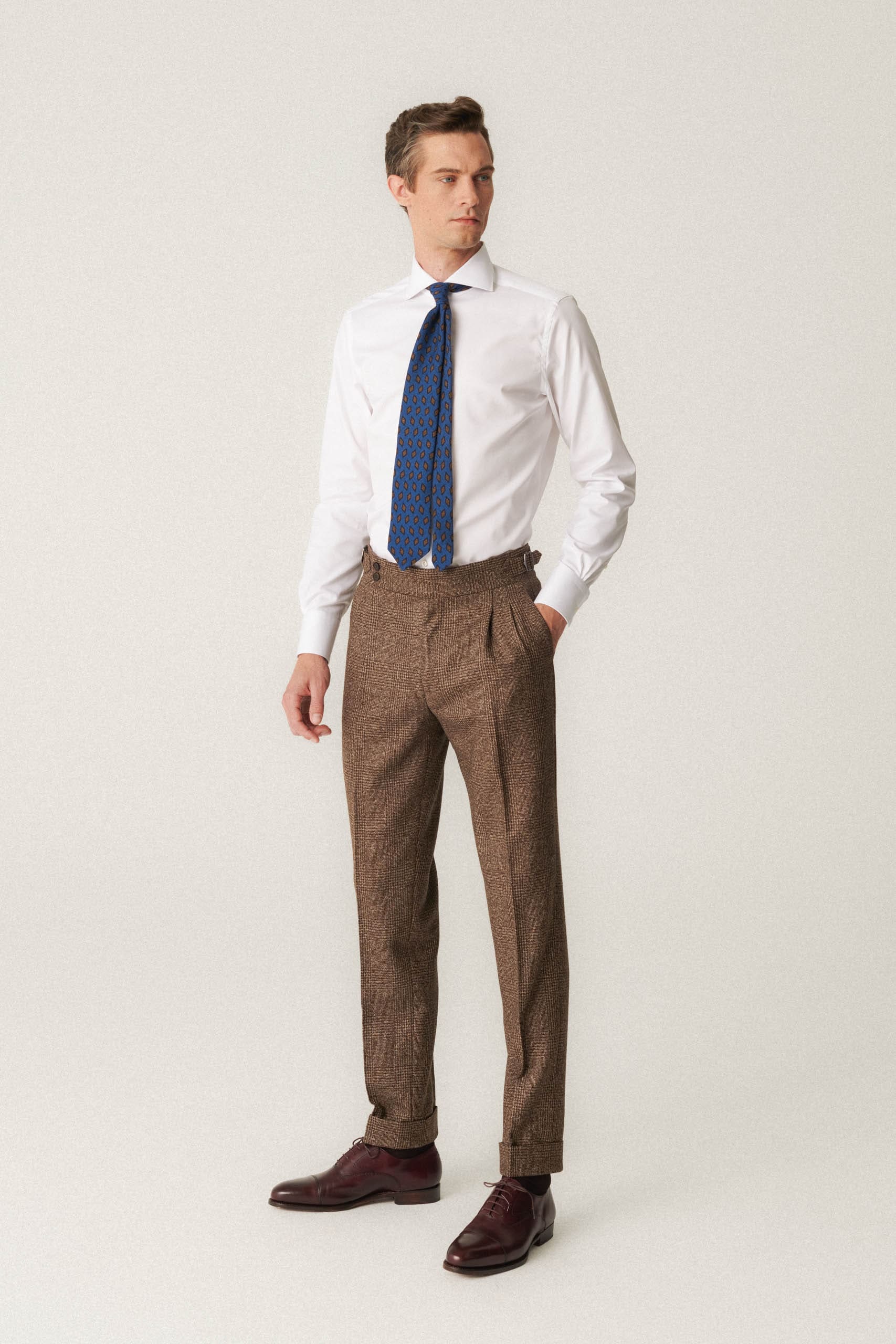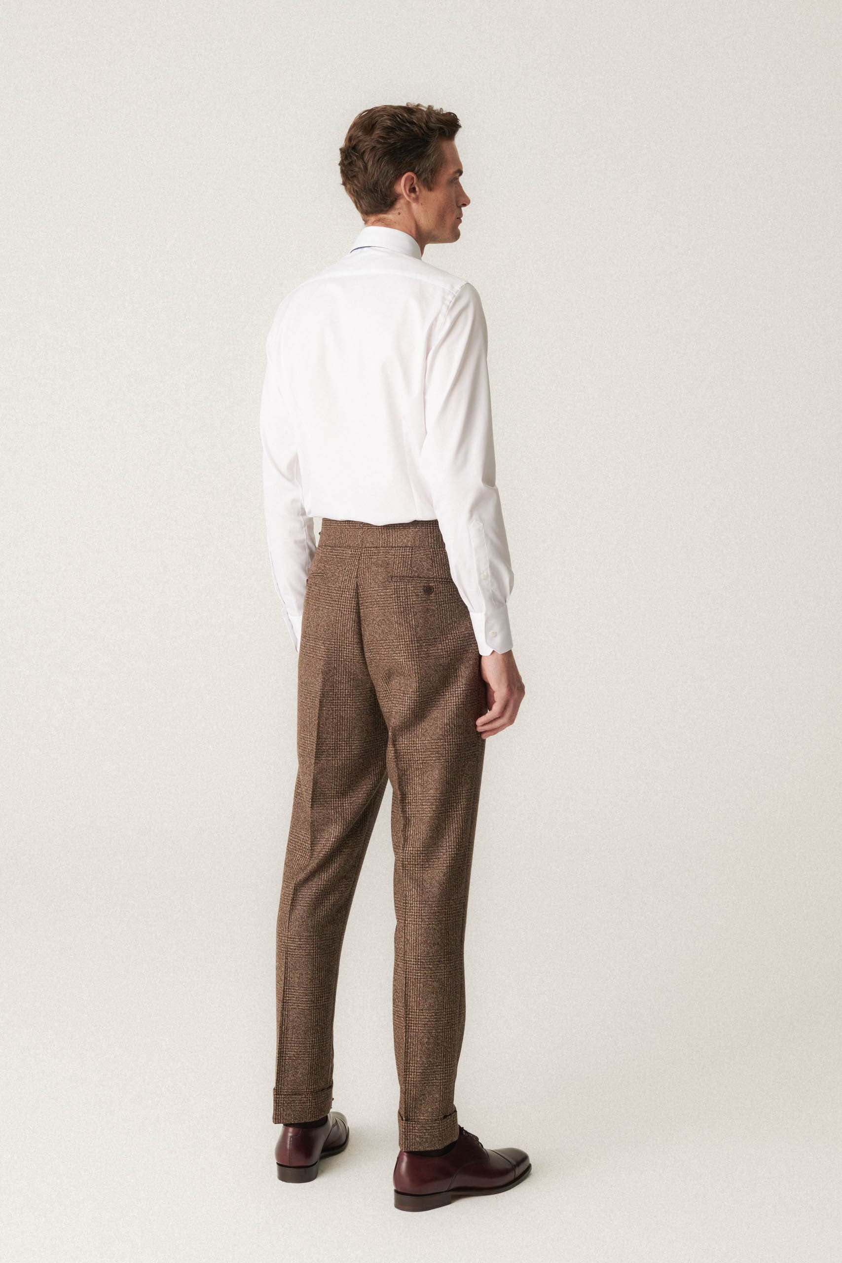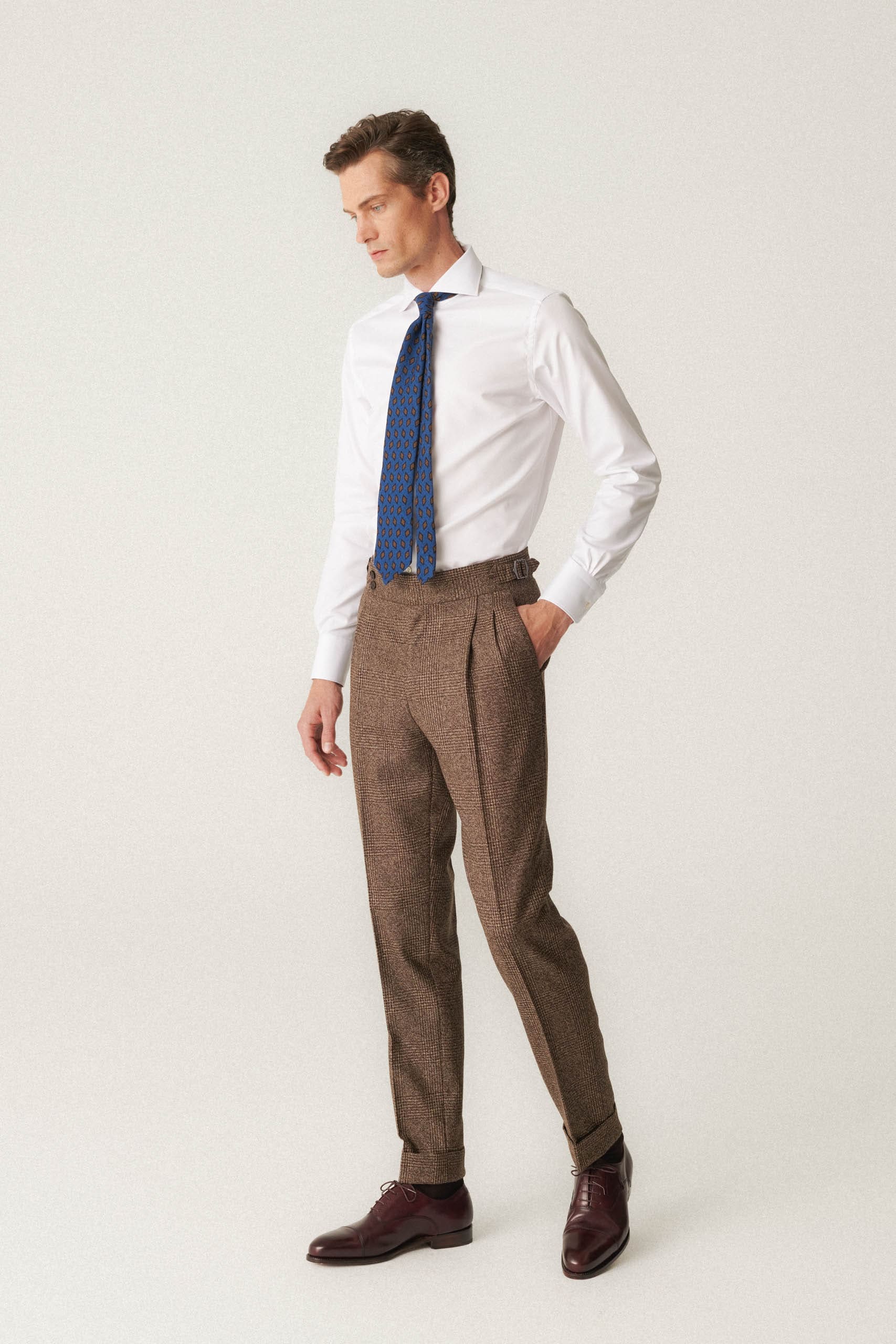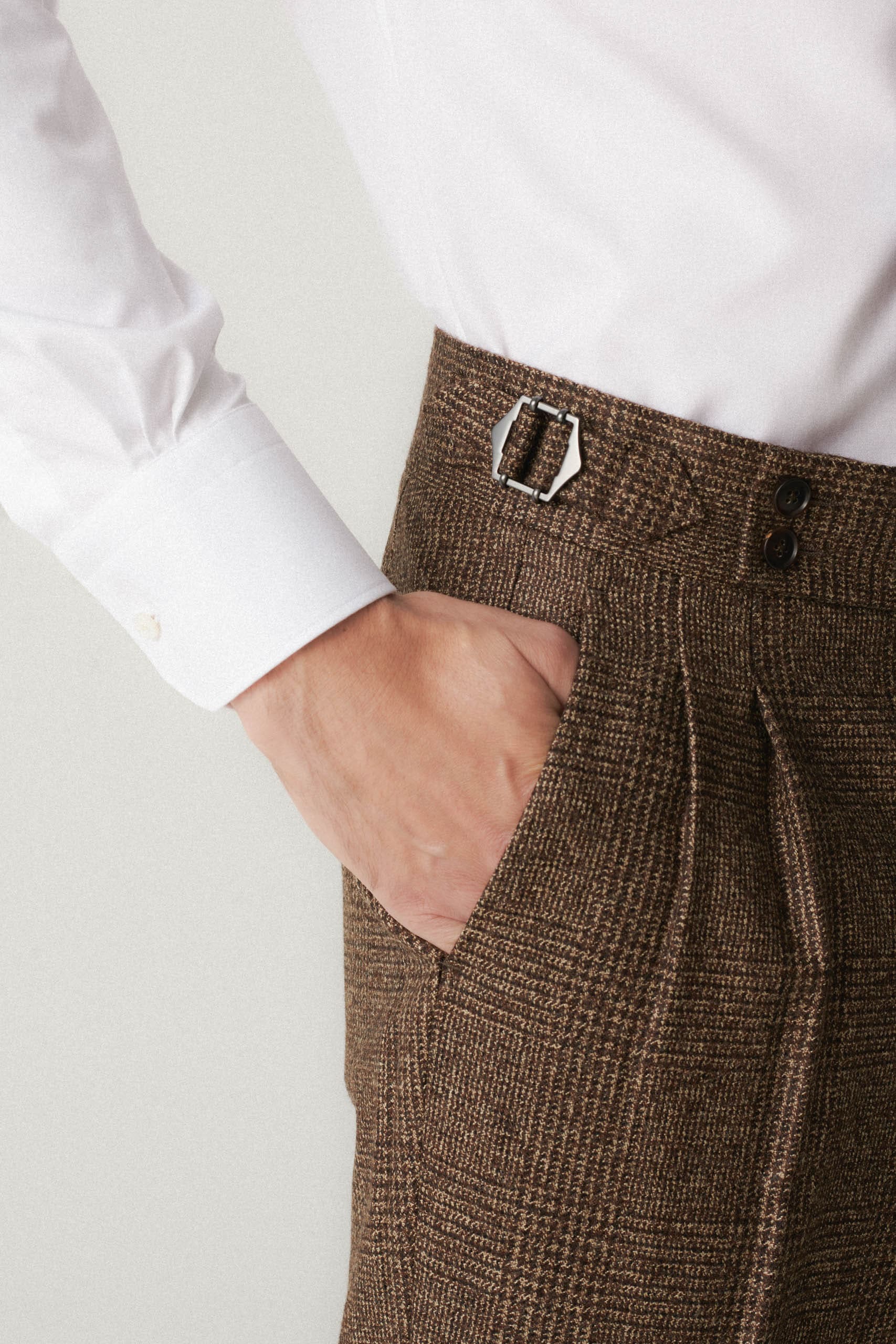 Garnitur trzyczęściowy Marling brązowy Prince of Wales to doskonały wybór dla mężczyzn, którzy cenią sobie elegancję, komfort oraz wysoką jakość wykonania.