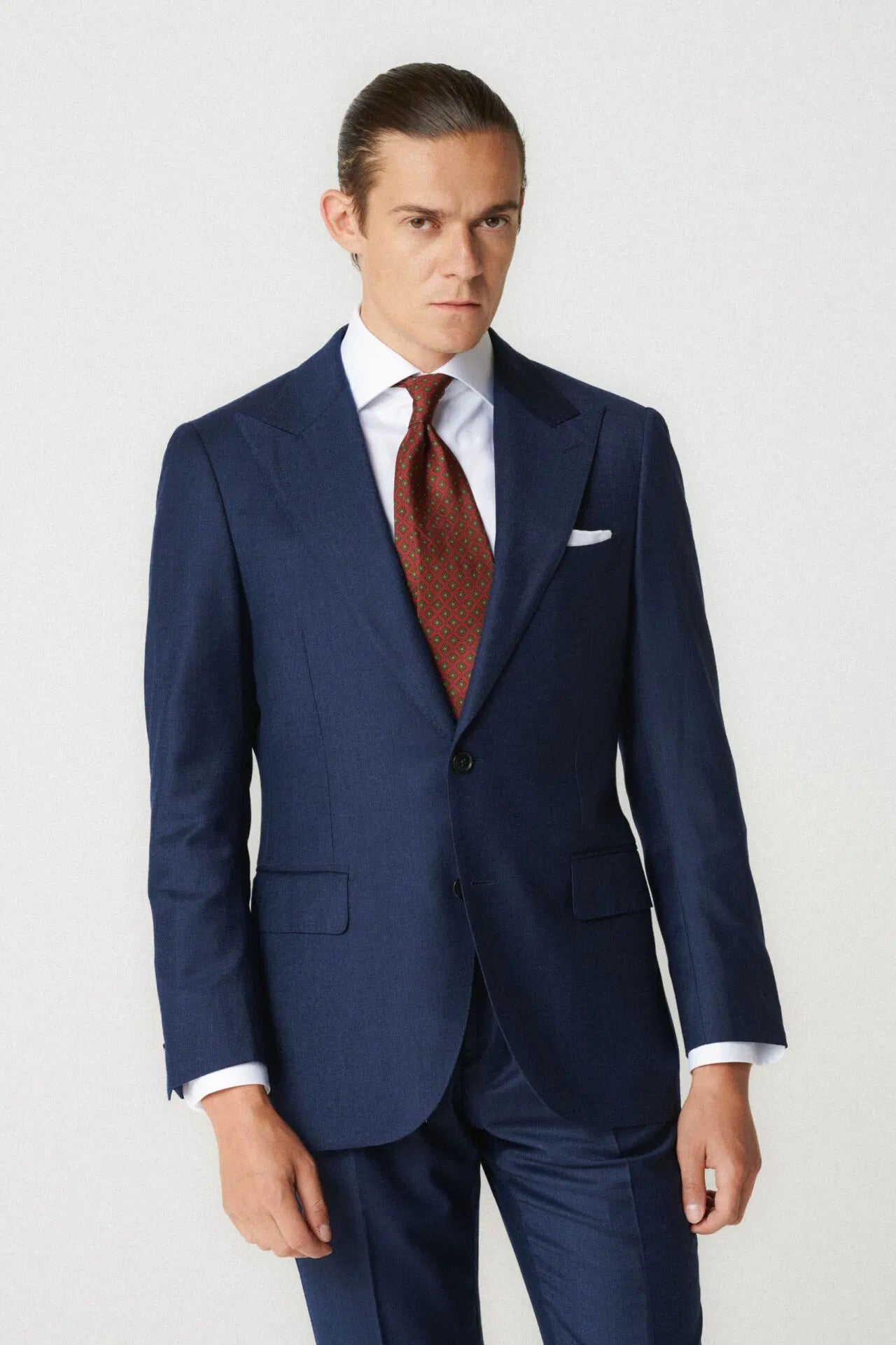 Strona główna Mężczyzna Męskie garnitury Męskie garnitury na sezon jesienno-zimowy Granatowy garnitur wełna/jedwab tkaniny Loro Piana