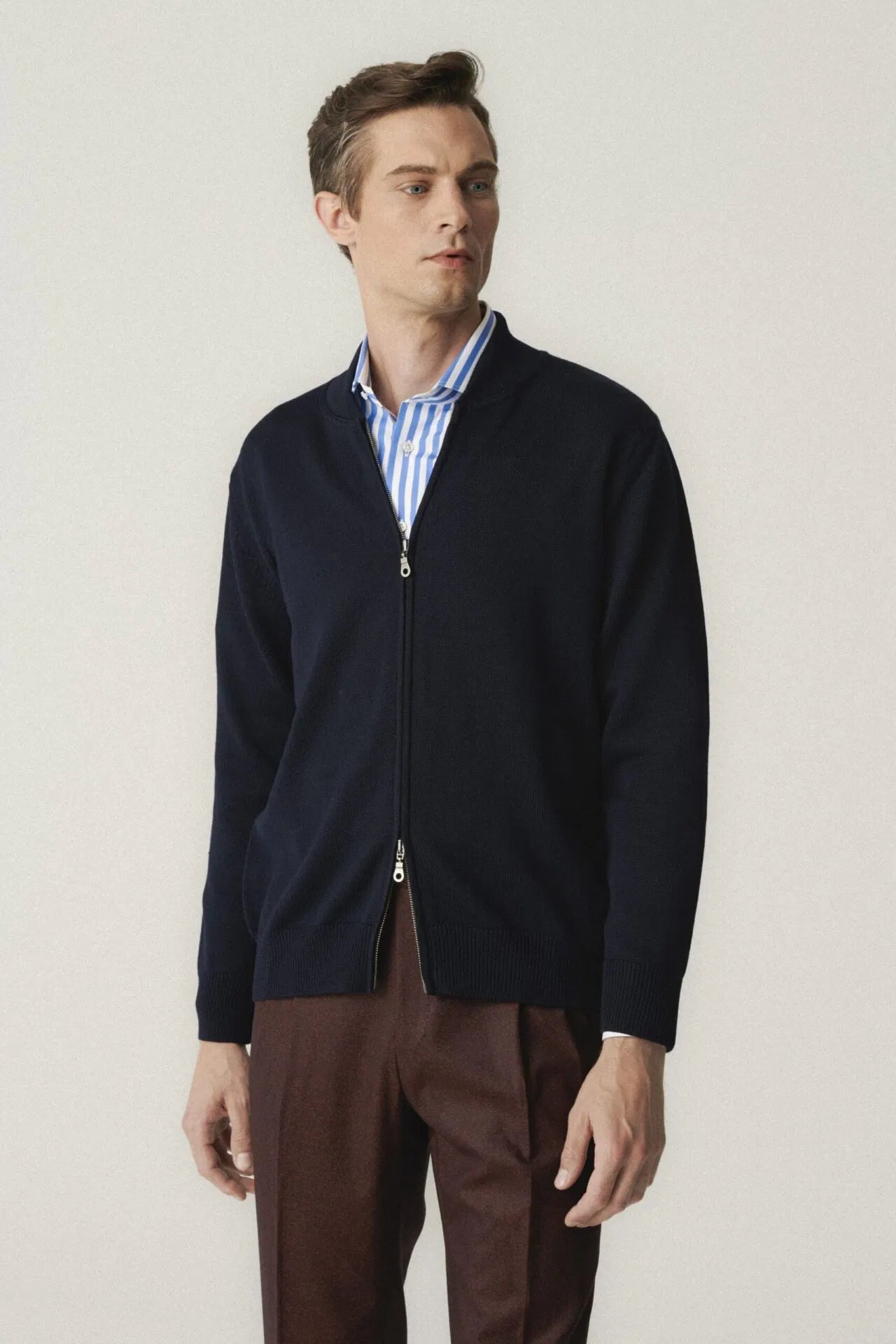 Elegancki kardigan zapinany na zamek został stworzony z myślą o chłodniejszych dniach. Wykonany ze 100% wełny zapewnia komfort i ciepło. Dostępny w kilku wersjach kolorystycznych.