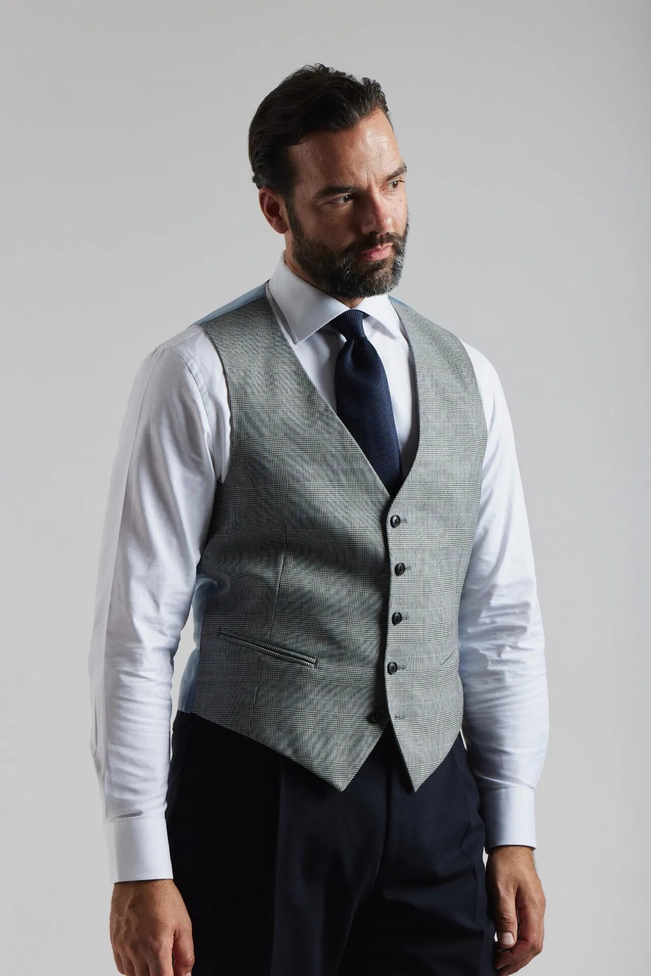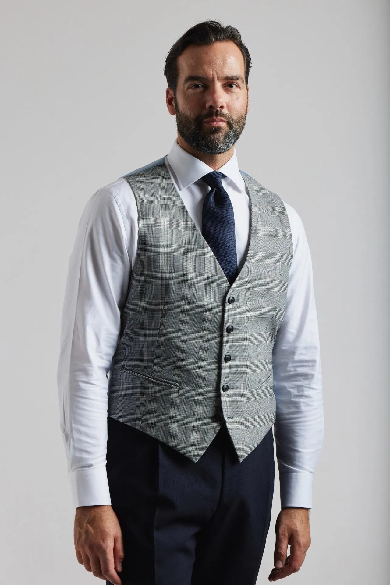 Szara kamizelka jednorzędowa to eleganckie i wyszukane dopełnienie garnituru. Dodaje stylu i klasy do formalnego ubioru.
