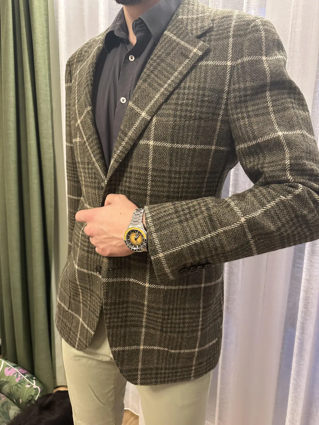 Zielona marynarka wełniana w kratę