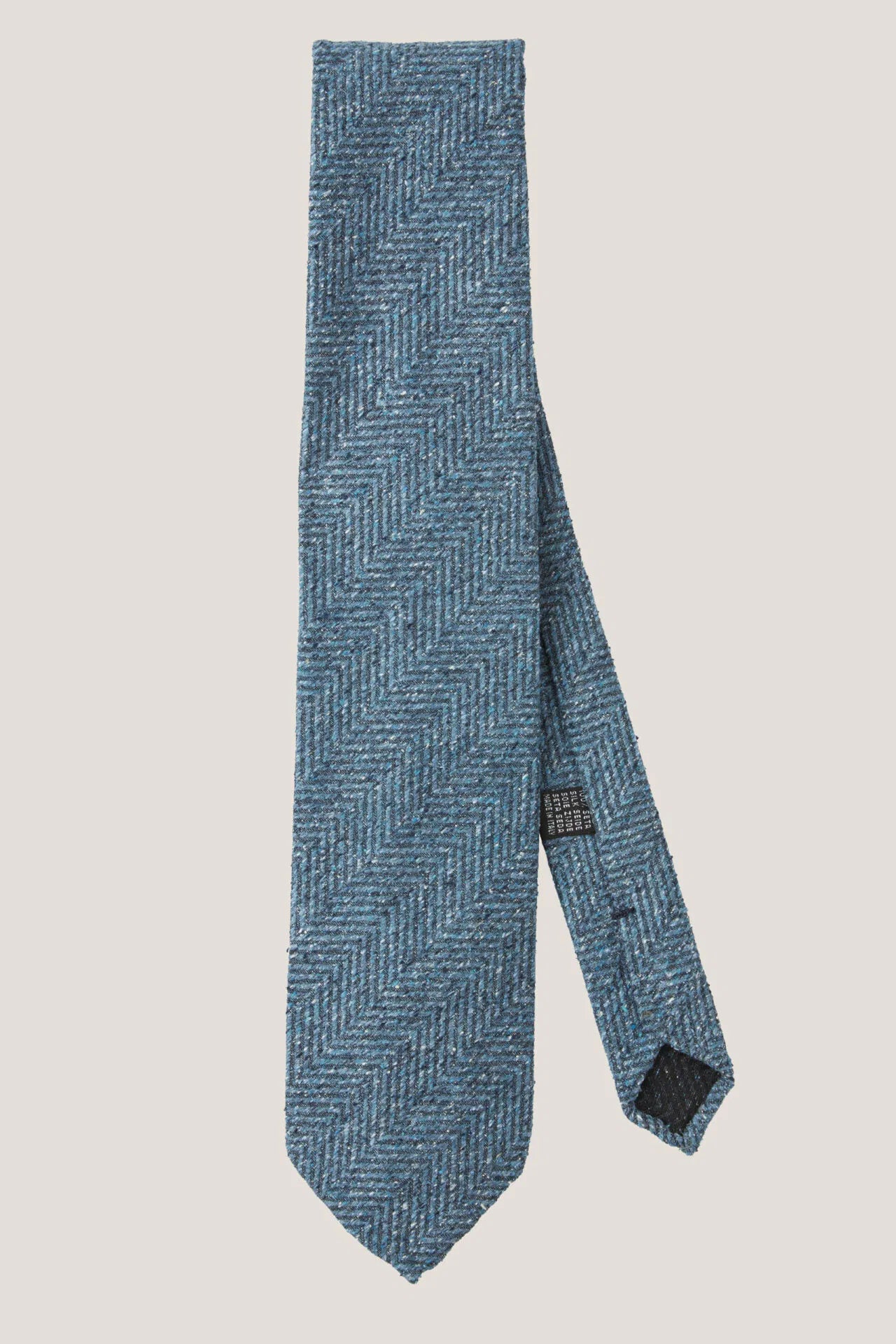 Niebieski krawat w jodełkę z surowego jedwabiu
