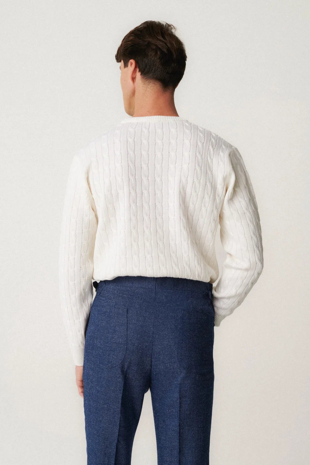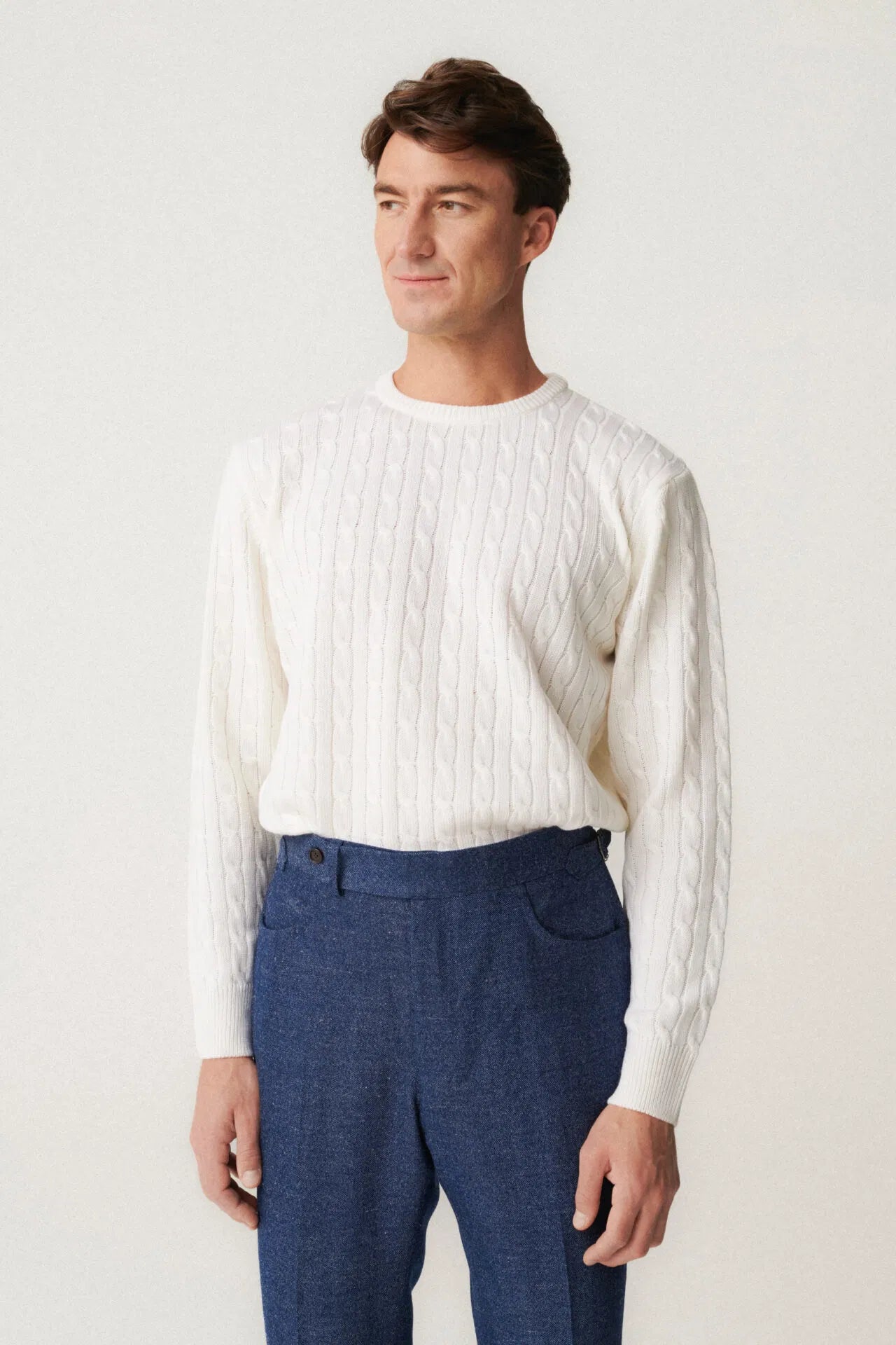 Przeplatany roundneck, wykonany w 100% z wełny, to niezwykle elegancki wybór. Jego subtelny wzór dodaje mu klasy, a naturalny materiał gwarantuje komfort i ciepło, czyniąc go idealnym dodatkiem w garderobie. Dostępny w kilku wersjach kolorystycznych.