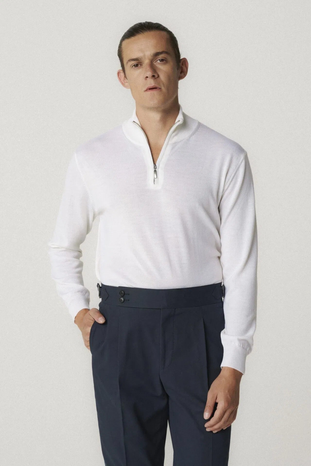 Sweter z zamkiem pod szyję ecru