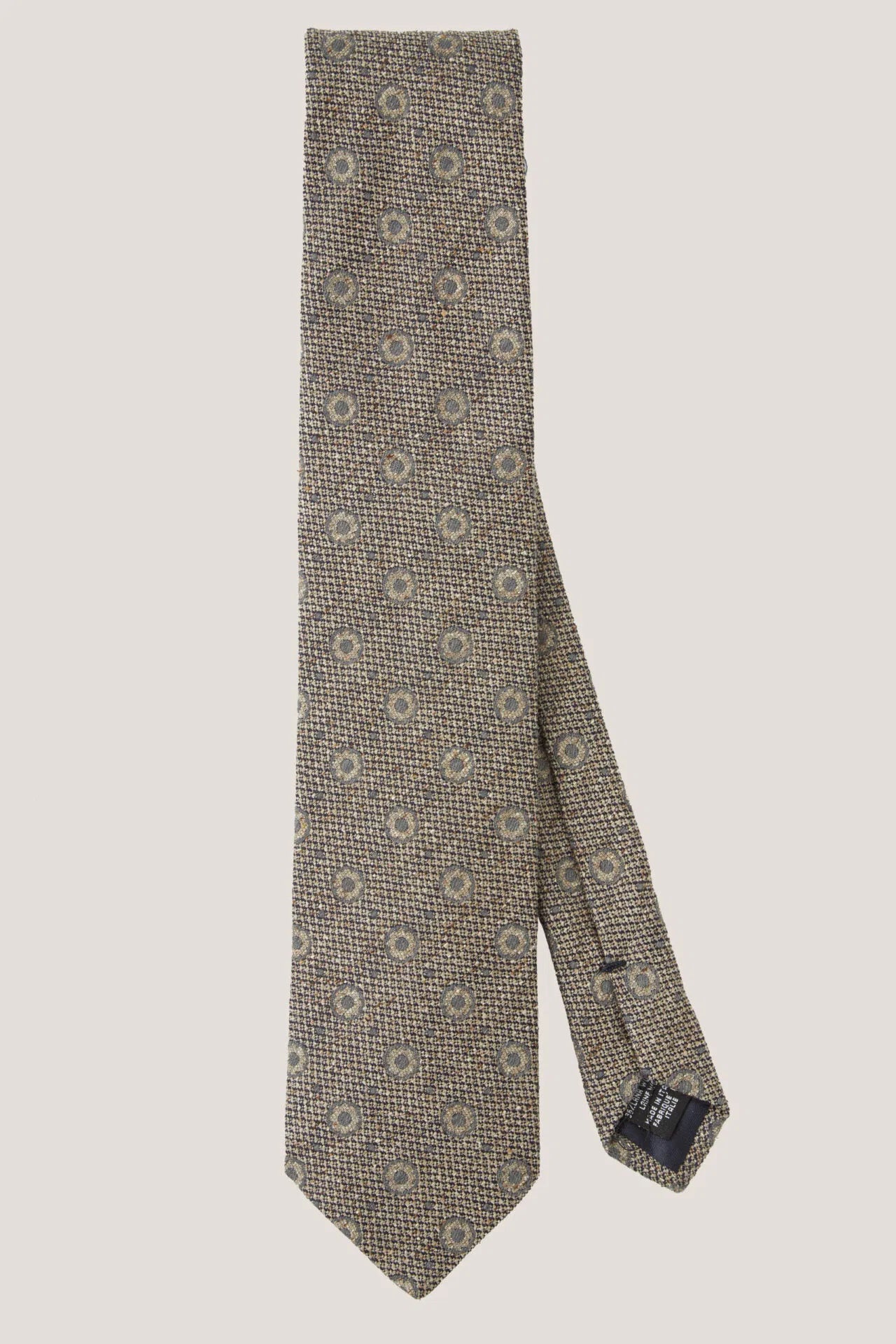Szary krawat we wzór geometryczny z surowego jedwabiu